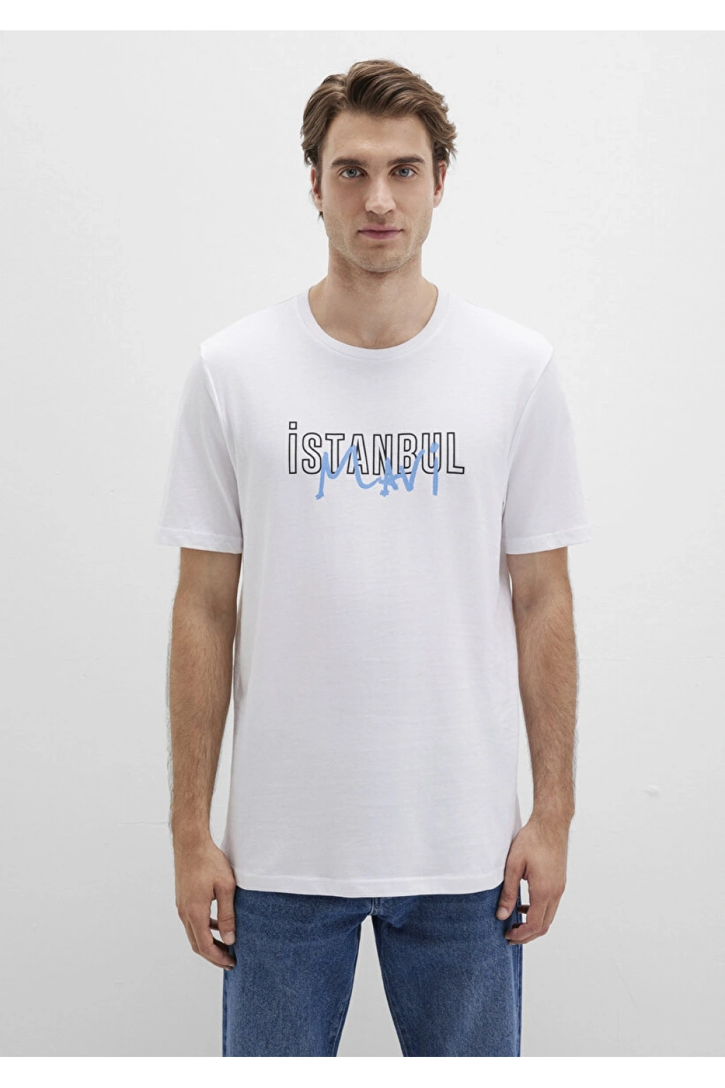 MAVİ BASKILI TİŞÖRT Hindistan Cevizi, L