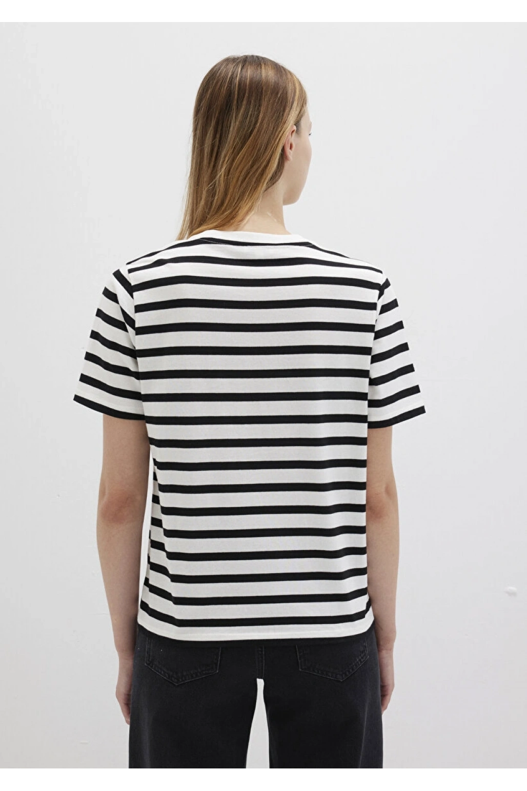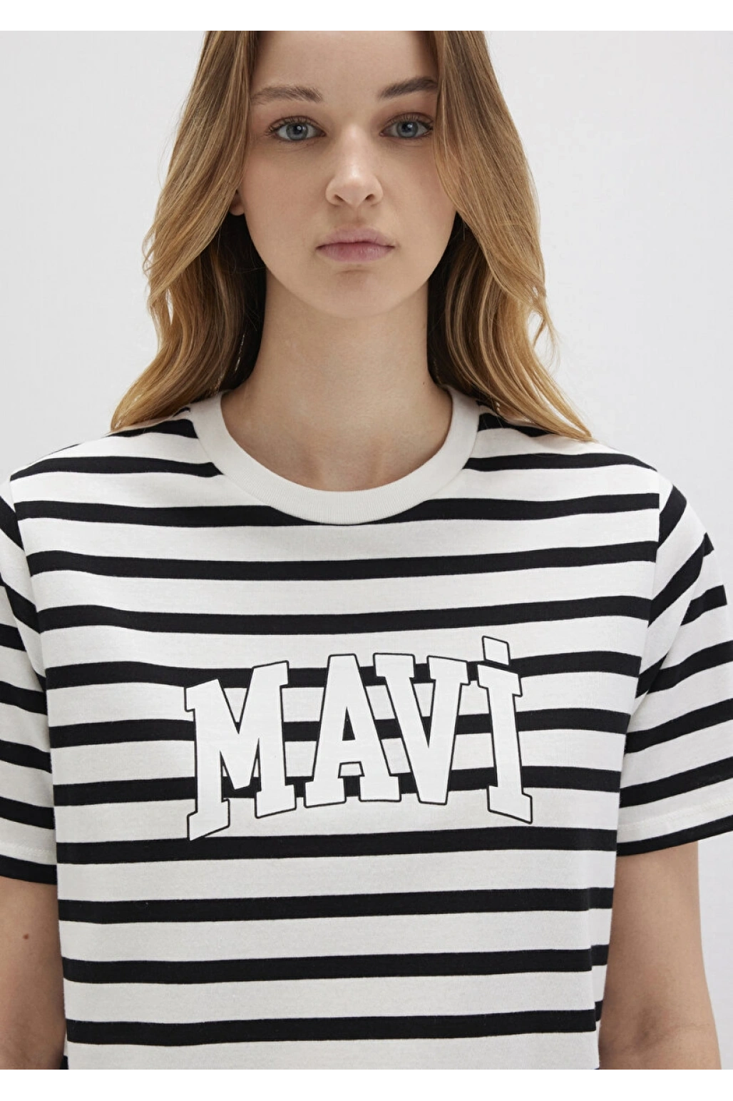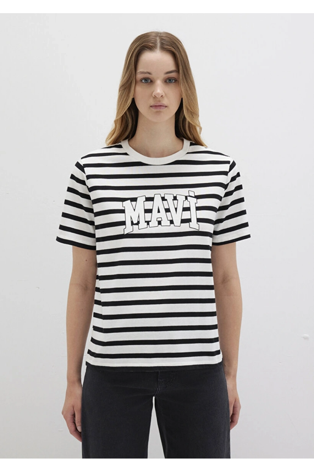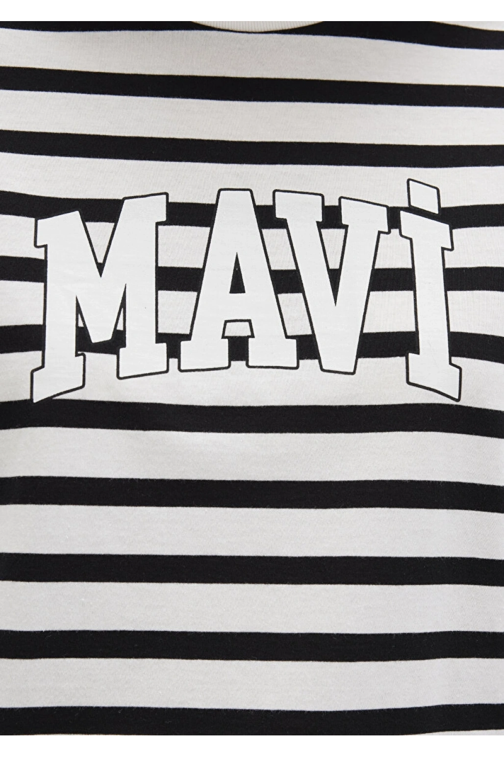Mavi Logo Baskılı Siyah Çizgili Tişört