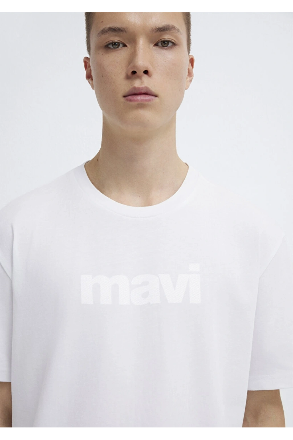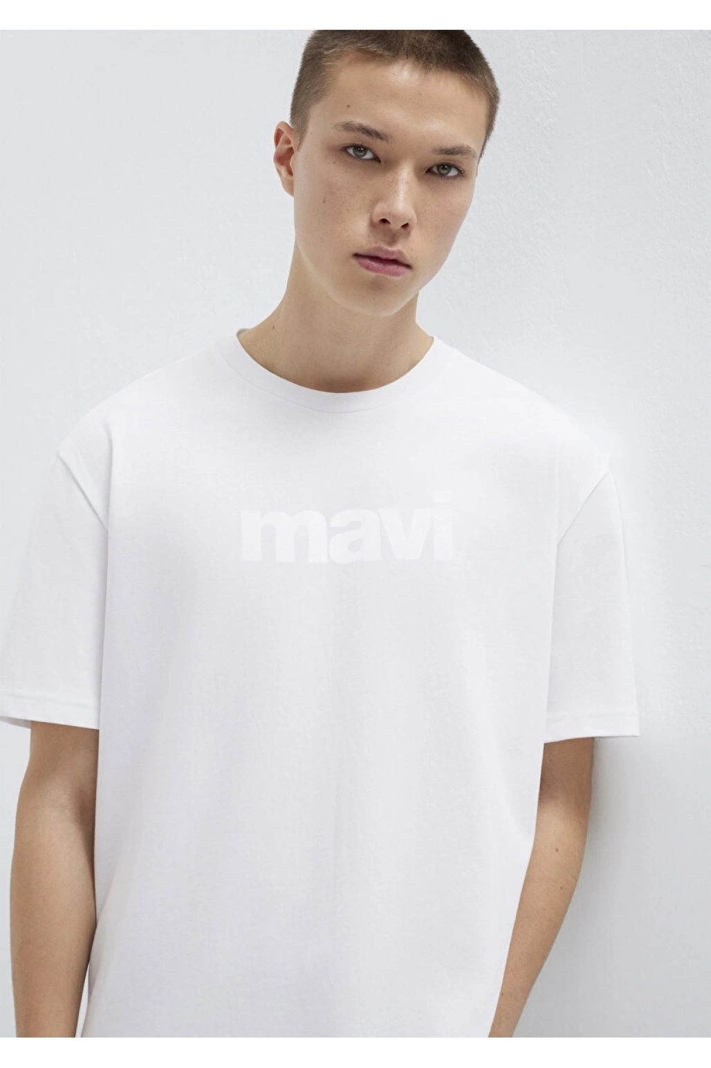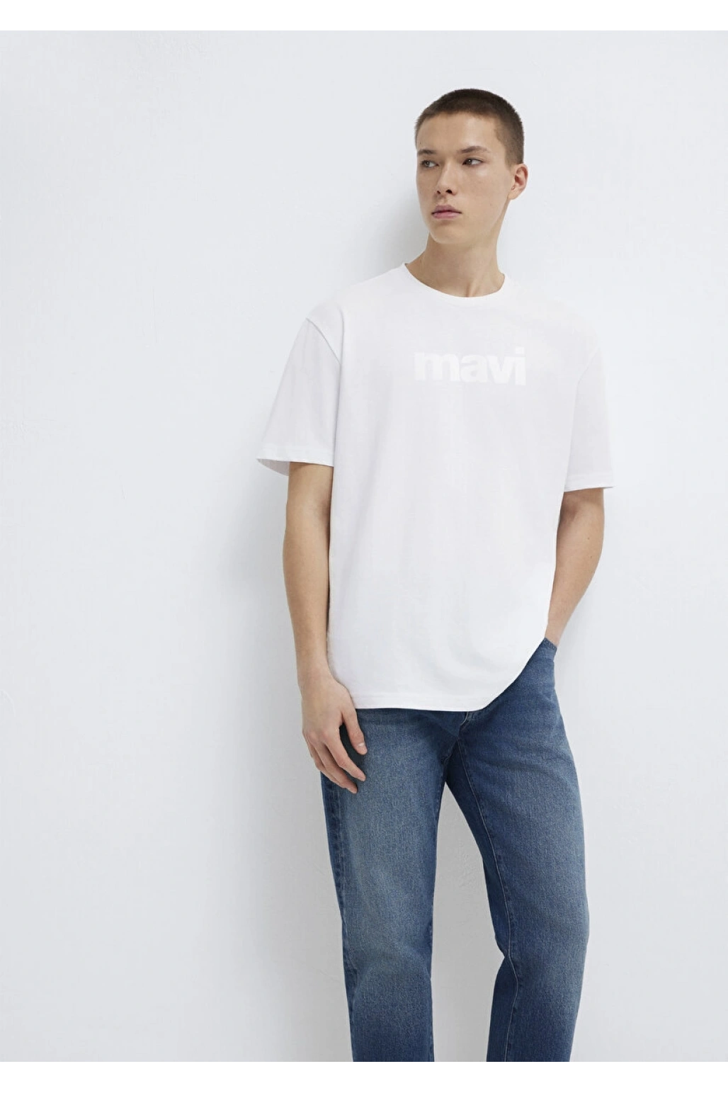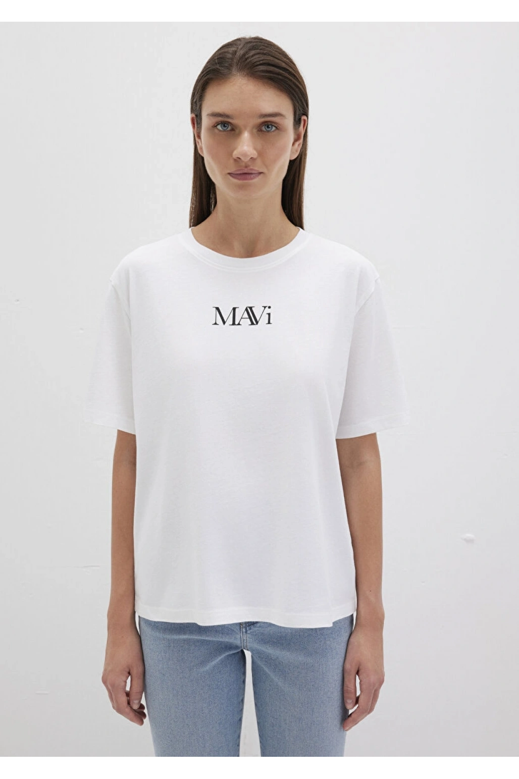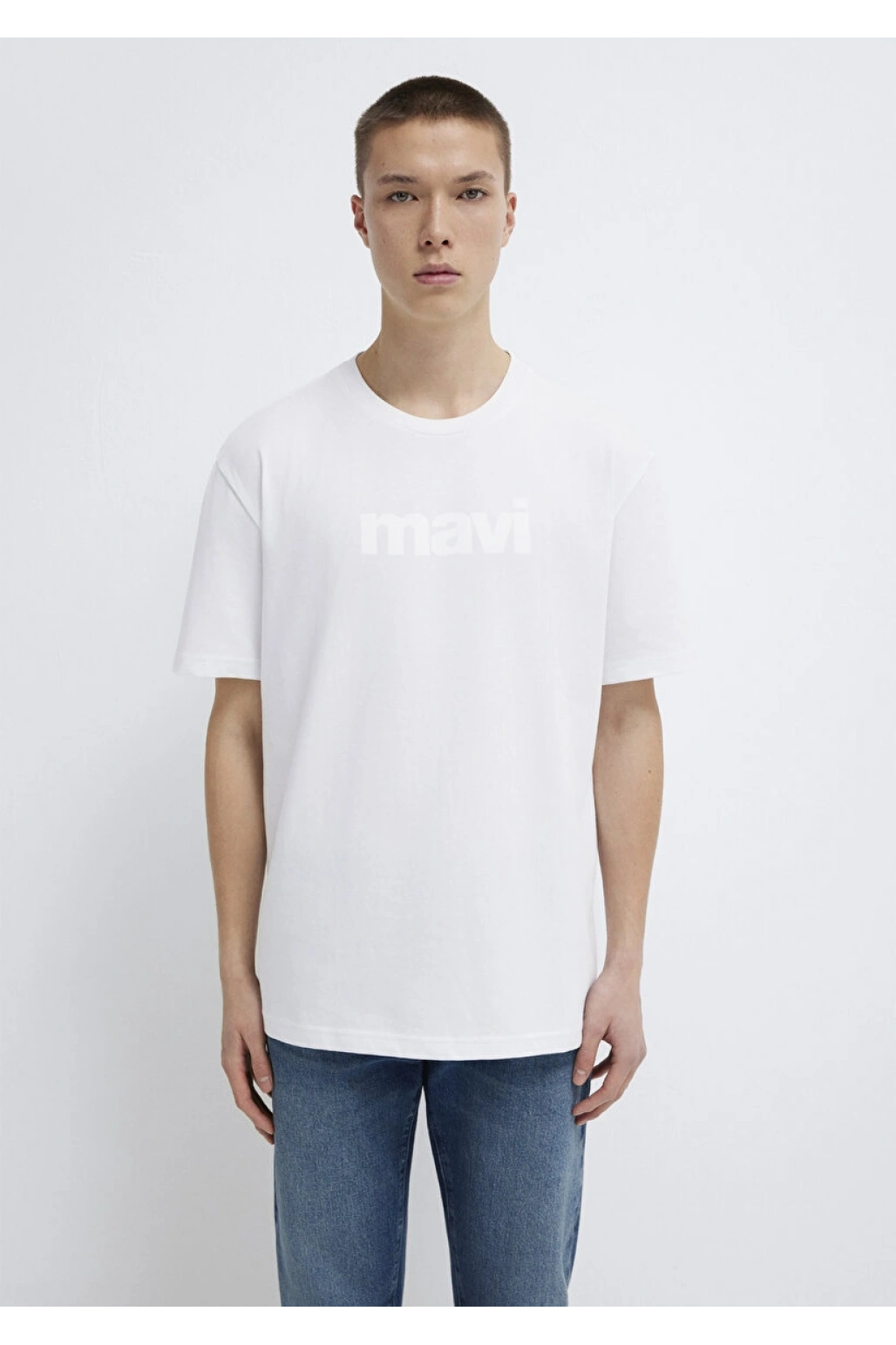 Mavi Logo Baskılı Beyaz Tişört