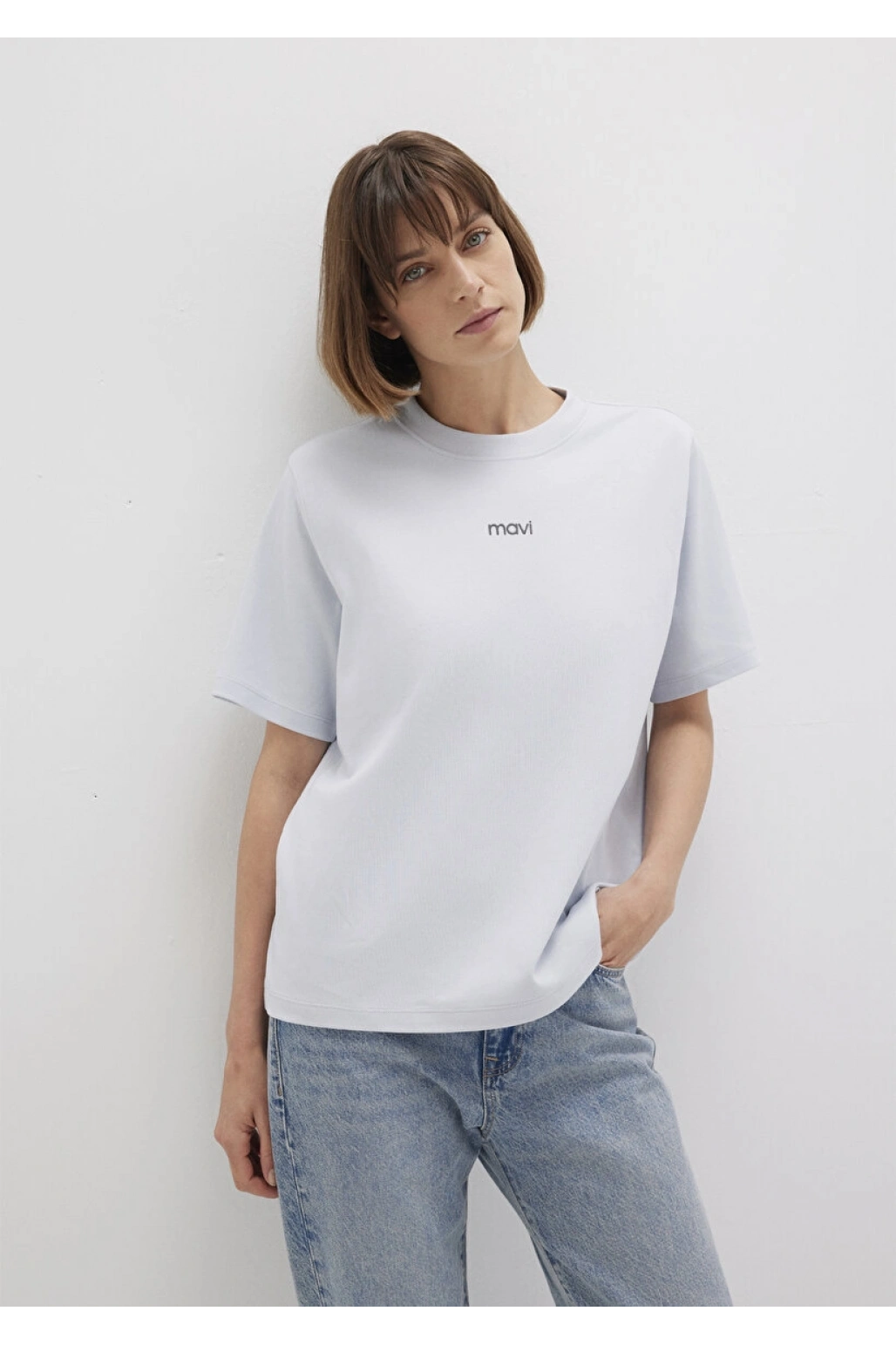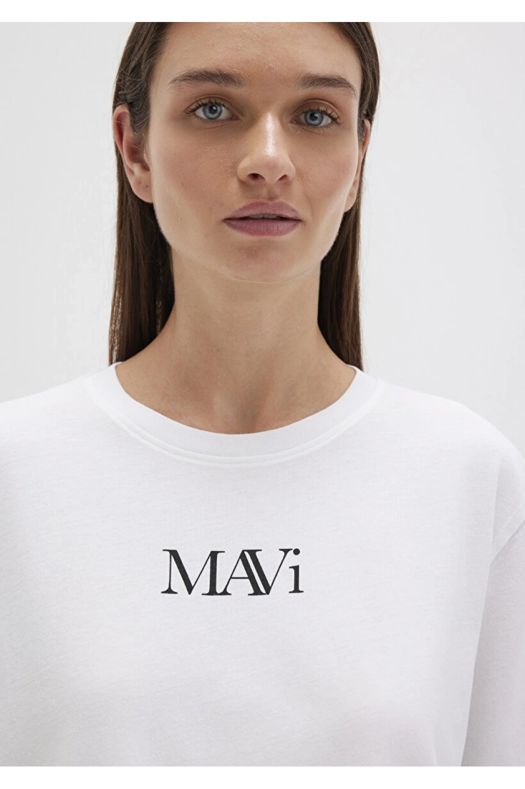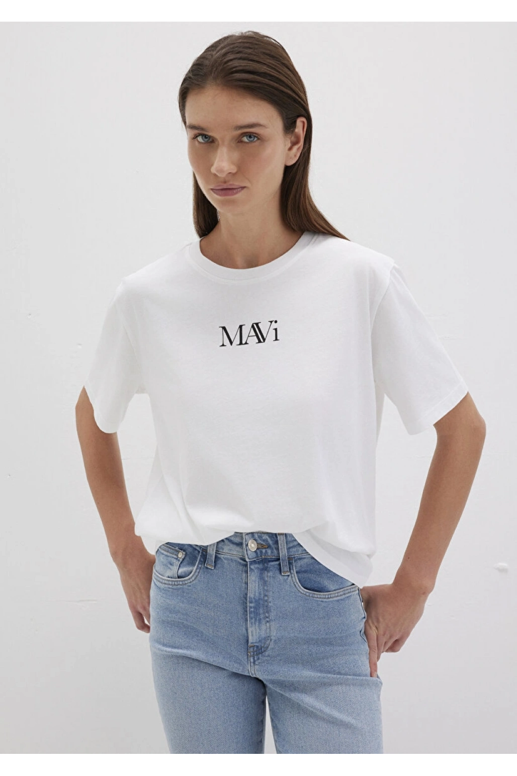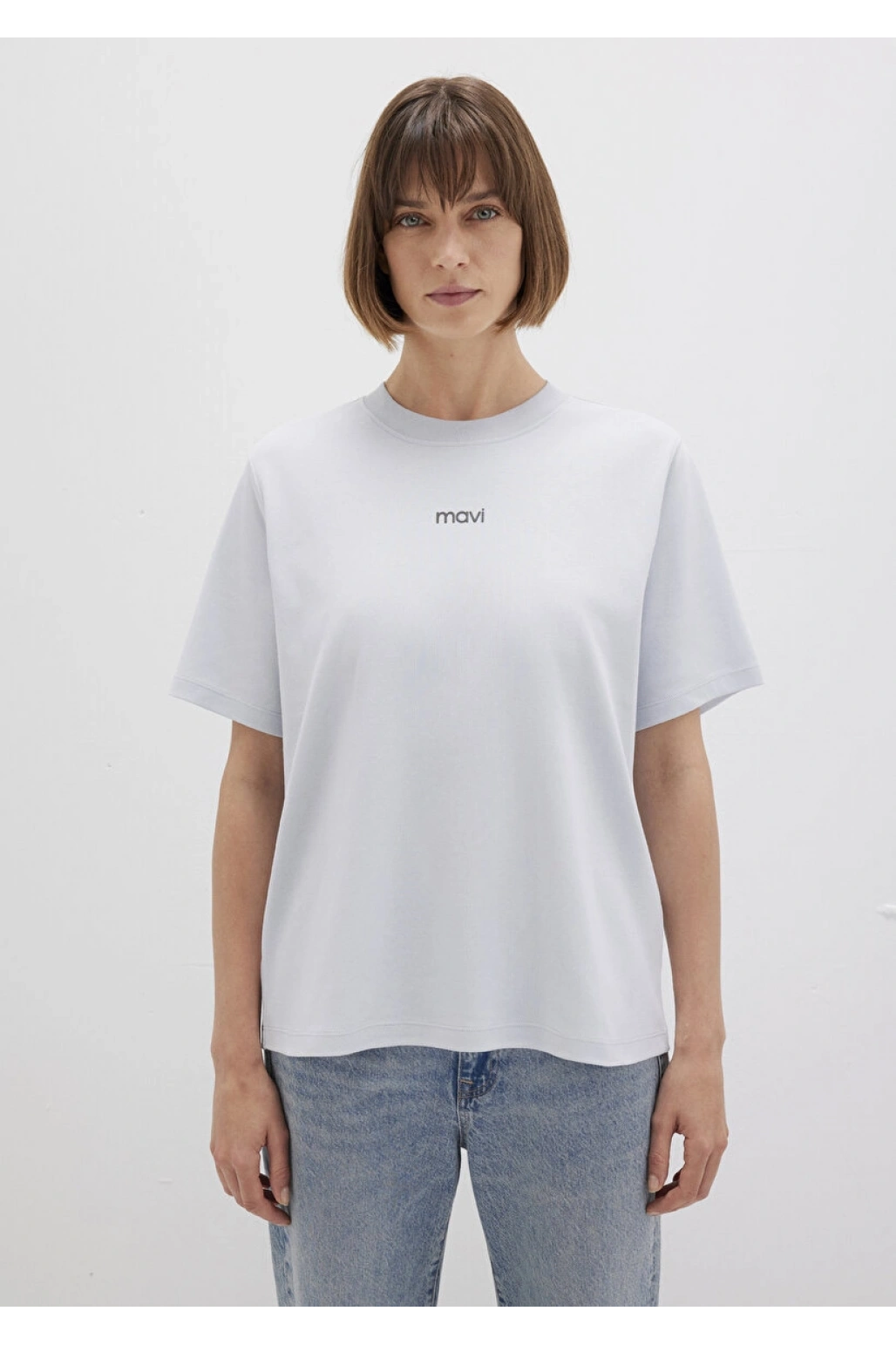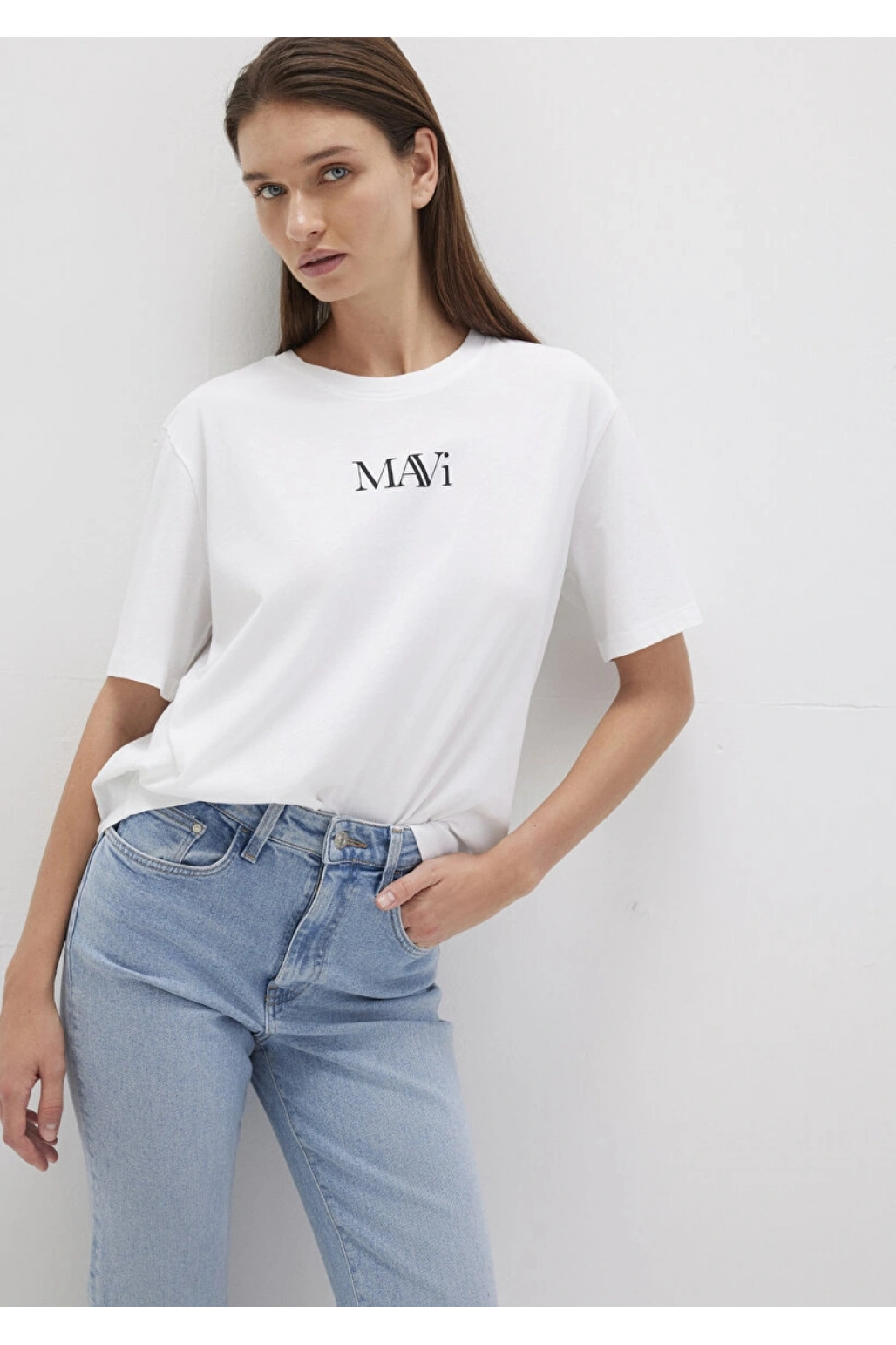 Mavi Logo Baskılı Beyaz Tişört