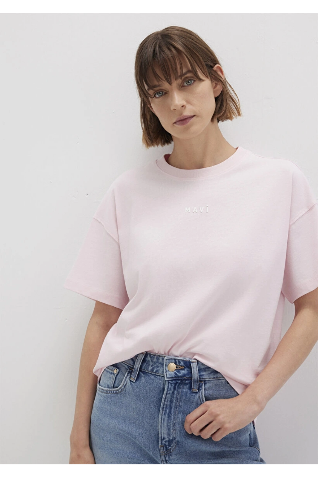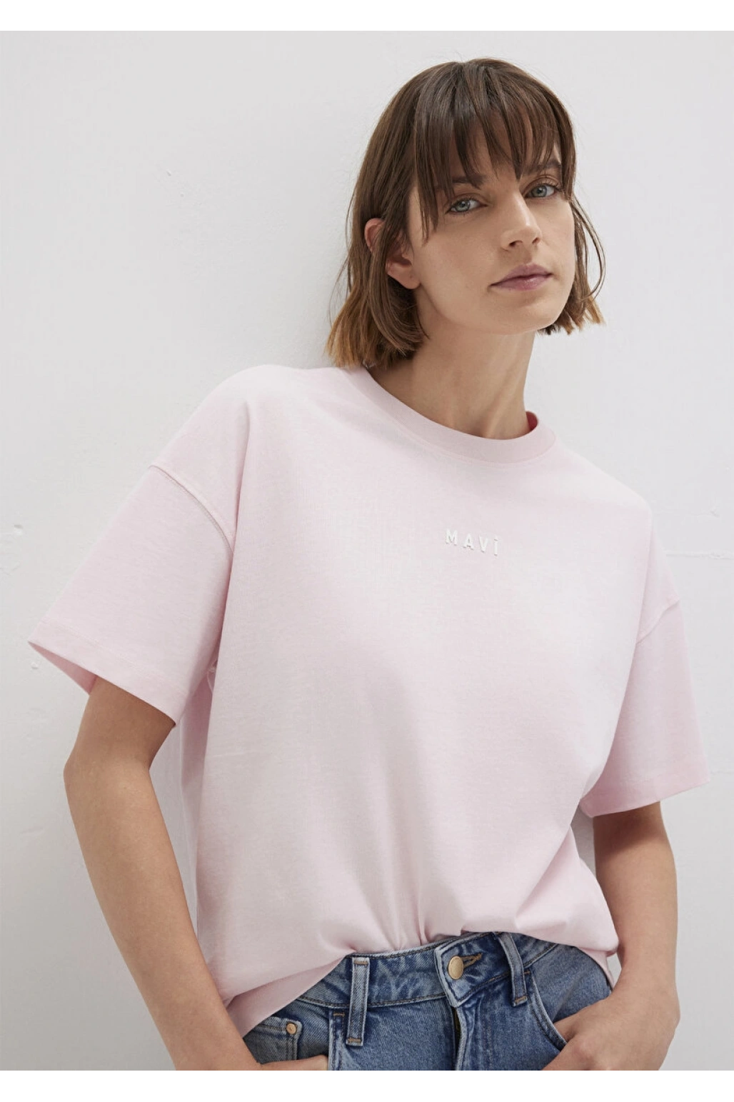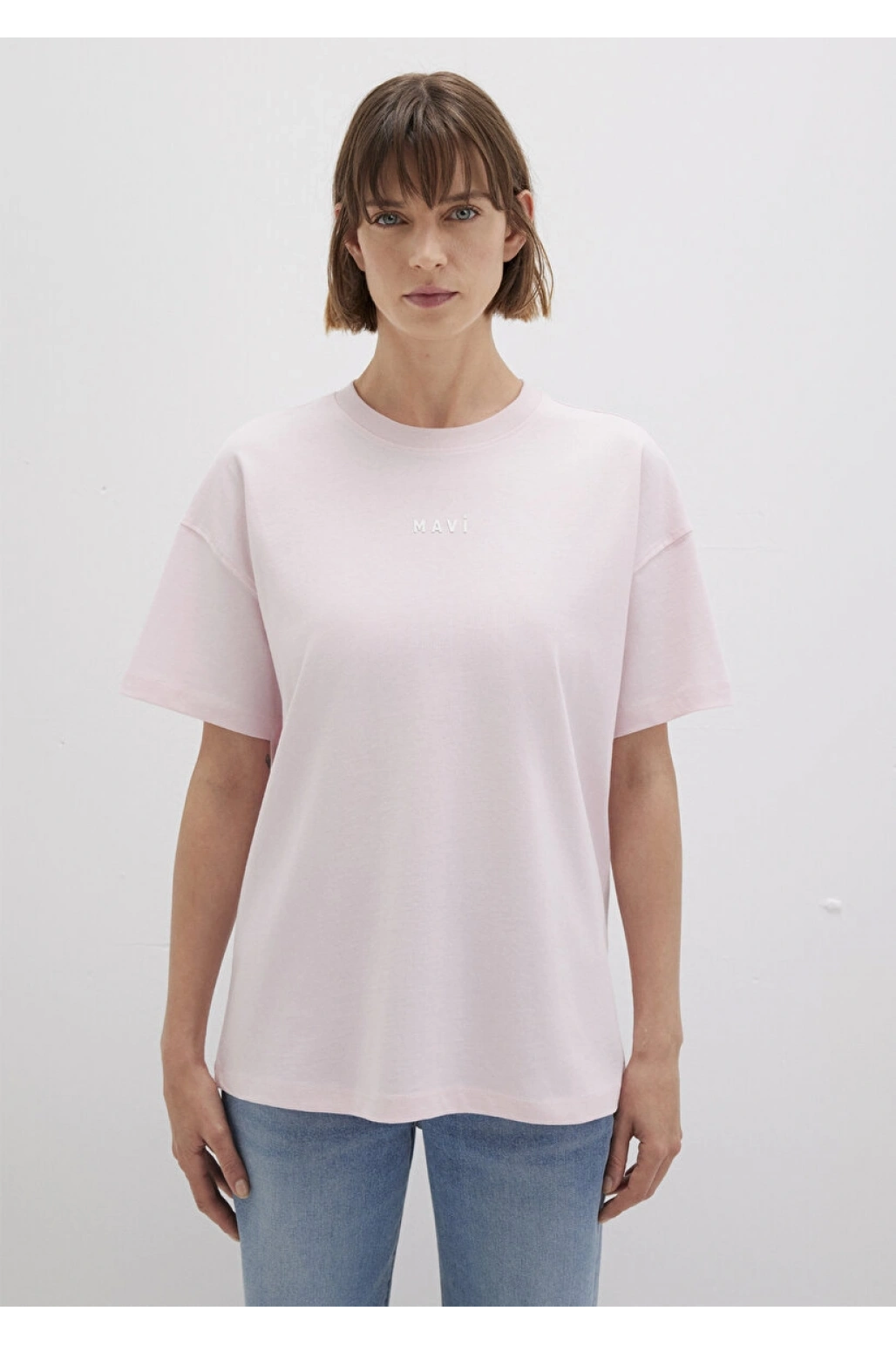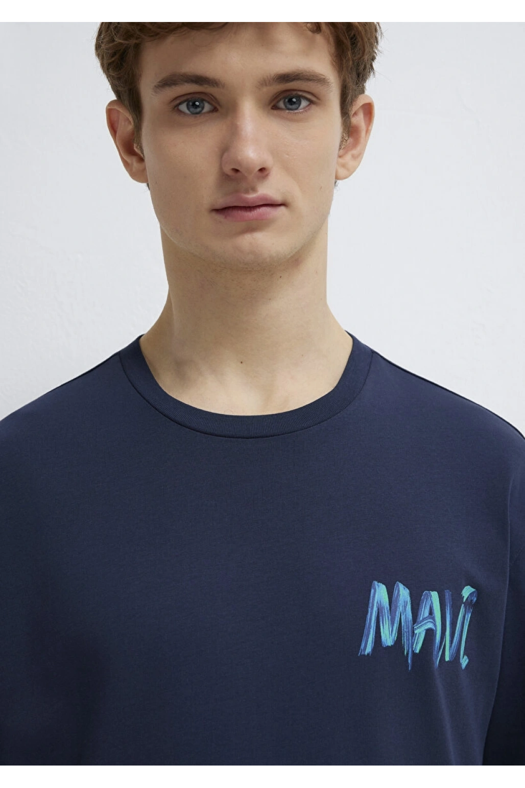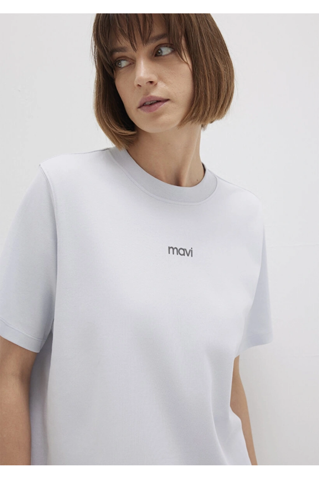 Mavi Logo Baskılı Beyaz Tişört