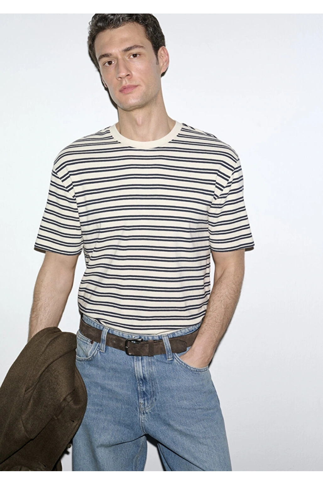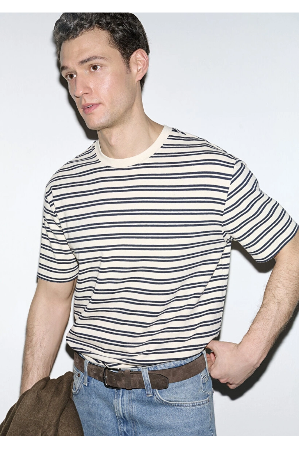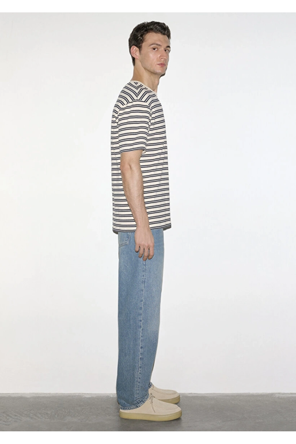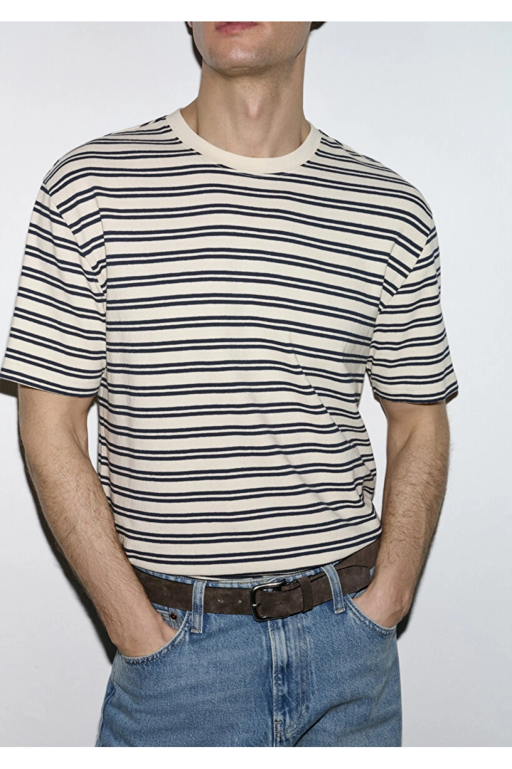 Lacivert Çizgili Ekru Tişört