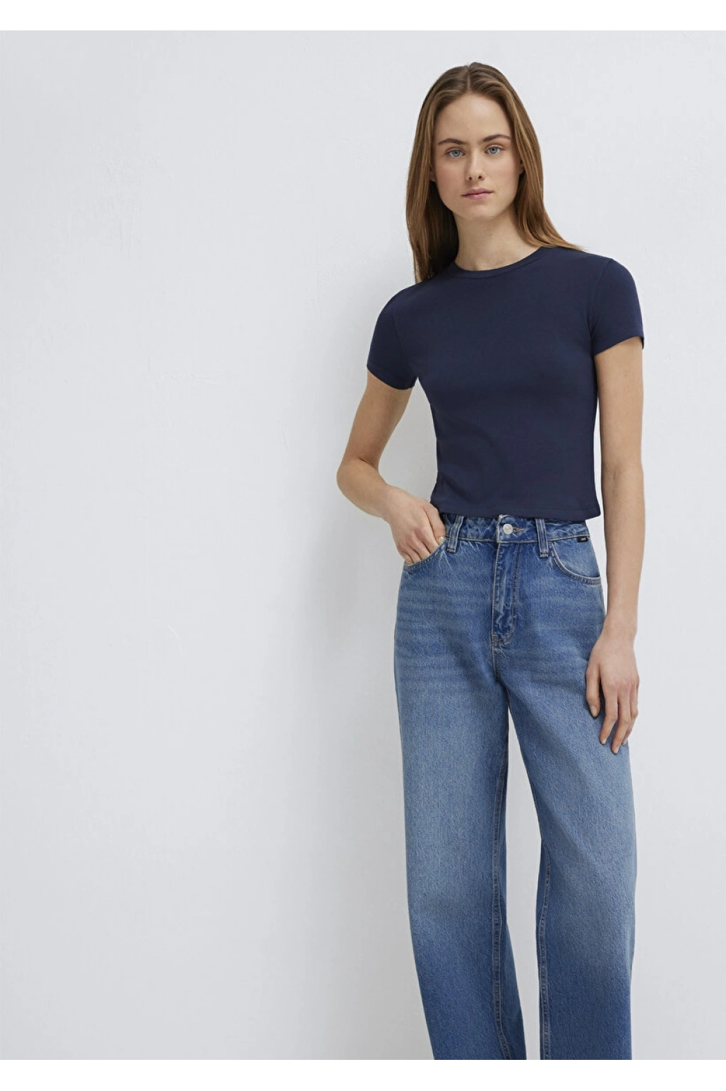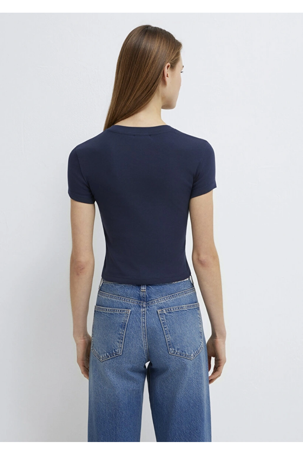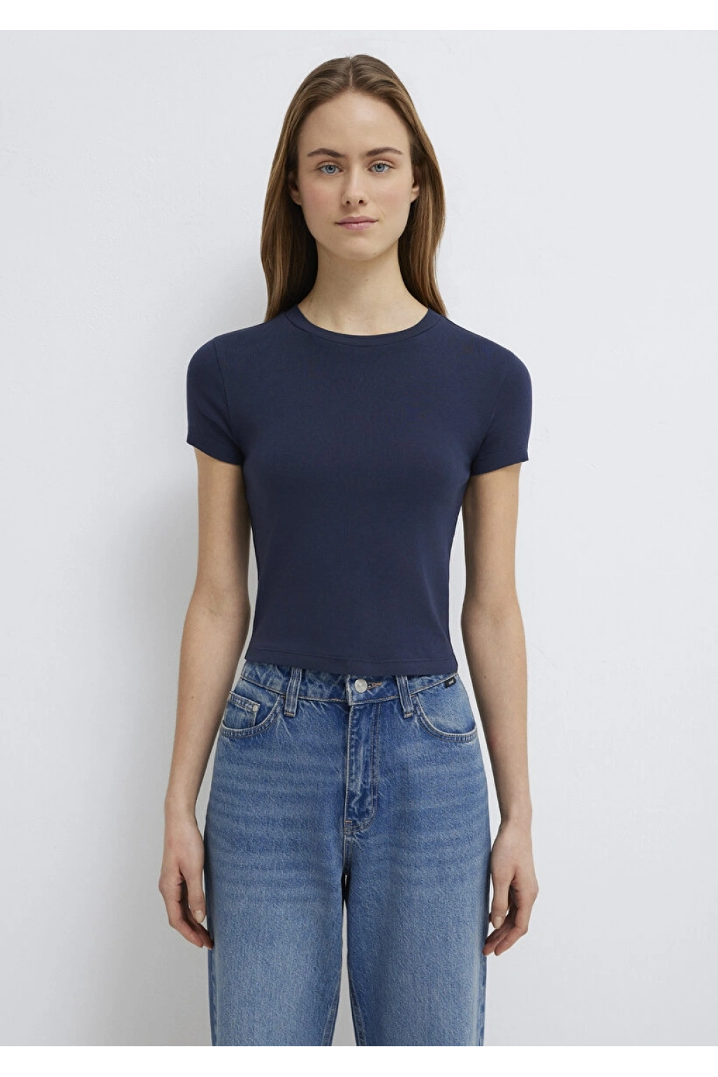 Lacivert Basic Crop Tişört