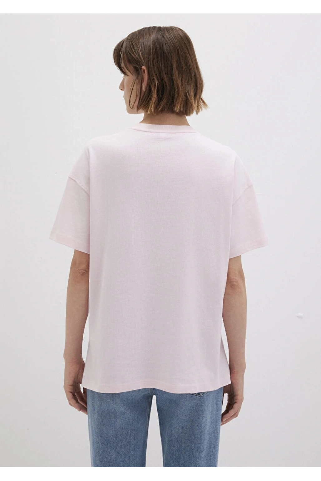 Mavi Baskılı Pembe Tişört