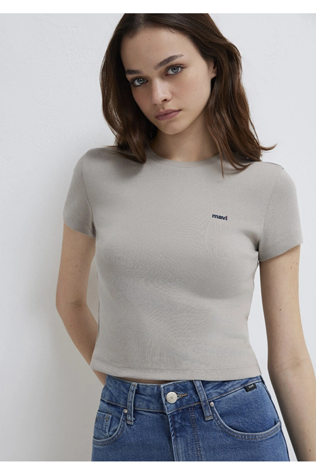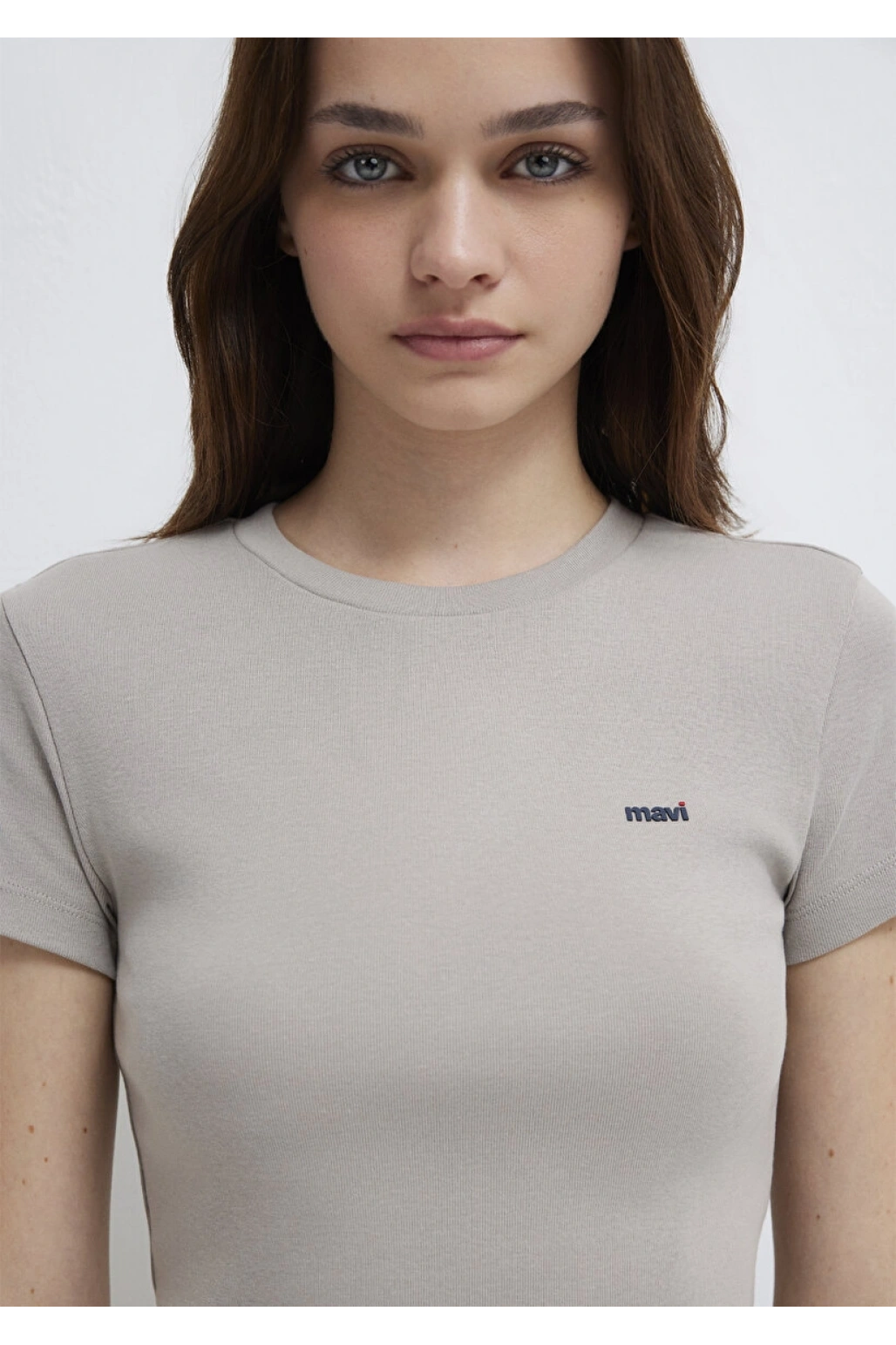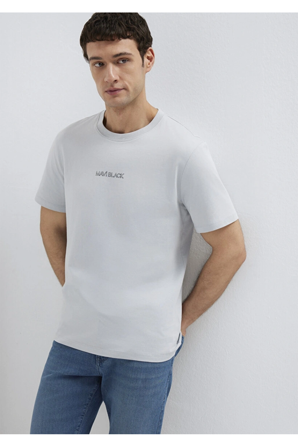 Mavi Logo Baskılı Gri Tişört