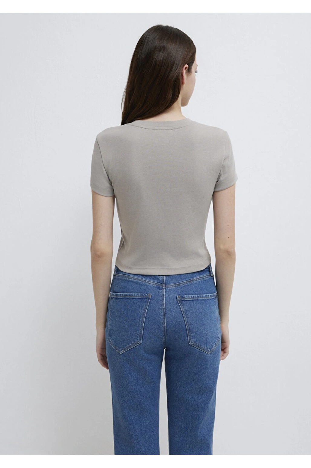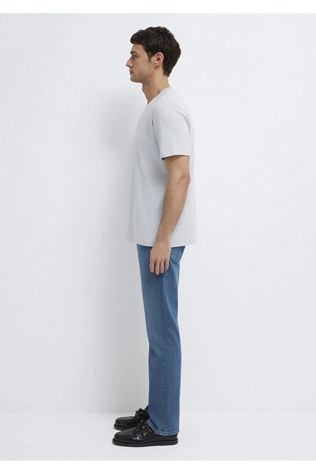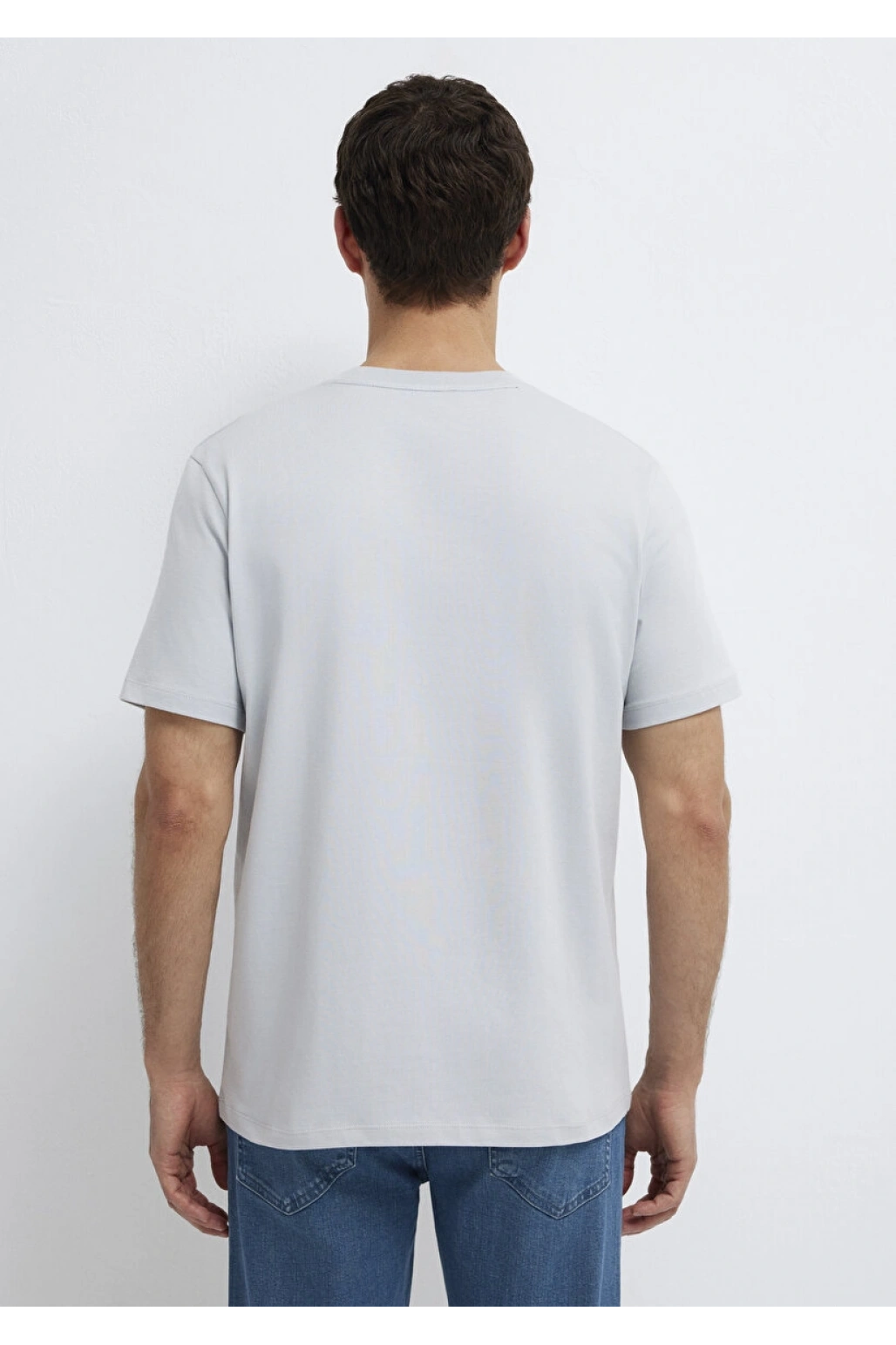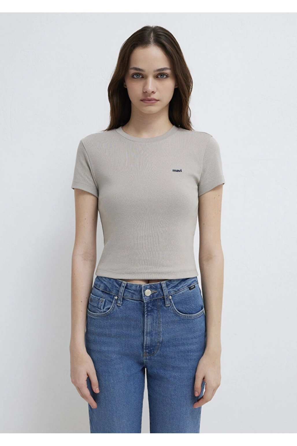 Mavi Logo Baskılı Gri Tişört