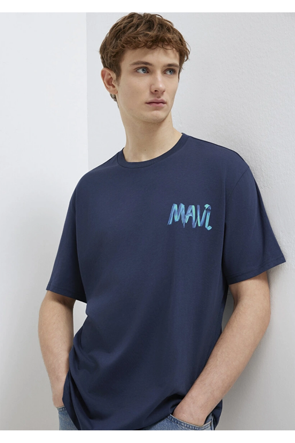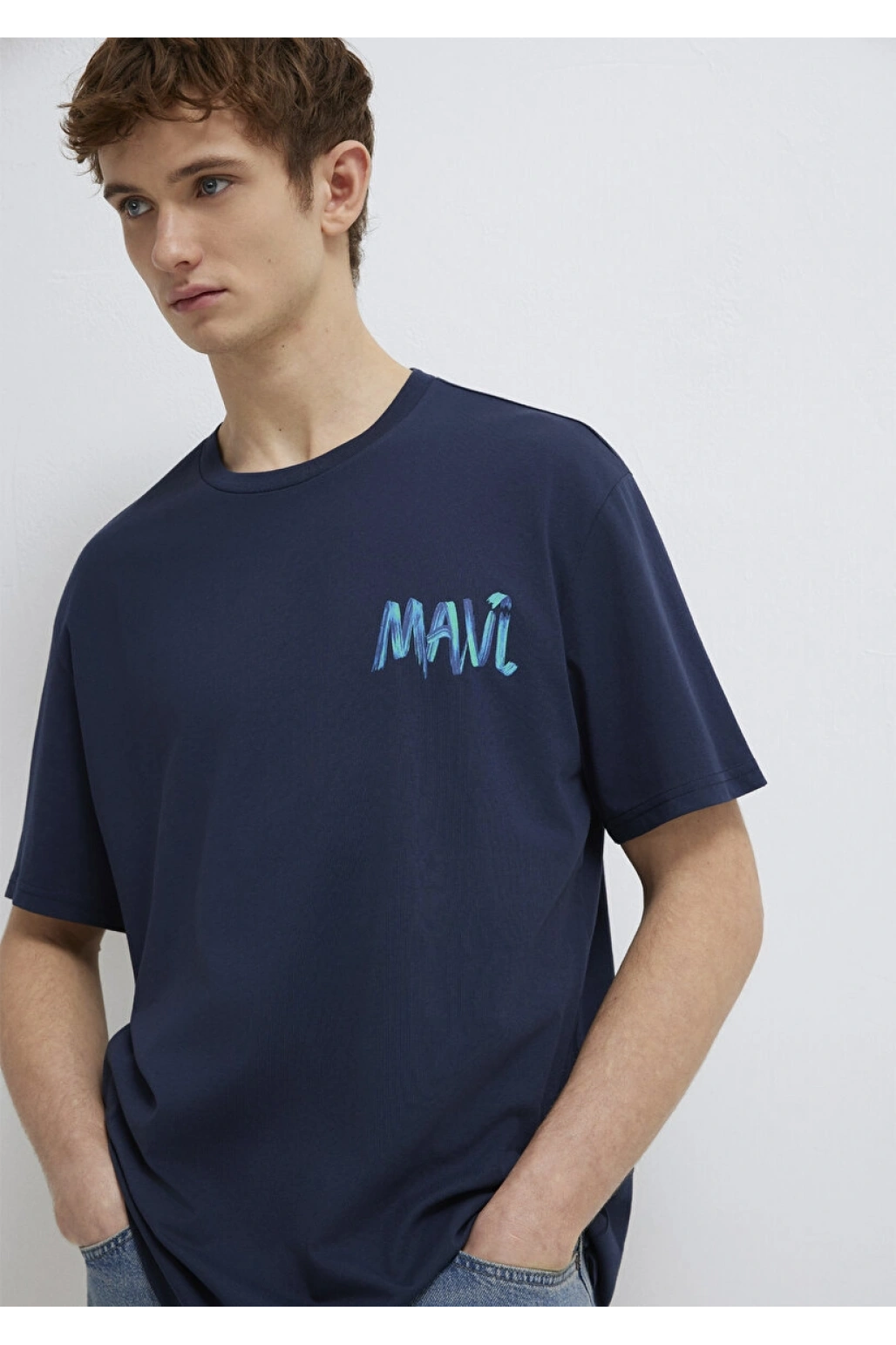 Mavi Baskılı Lacivert Tişört