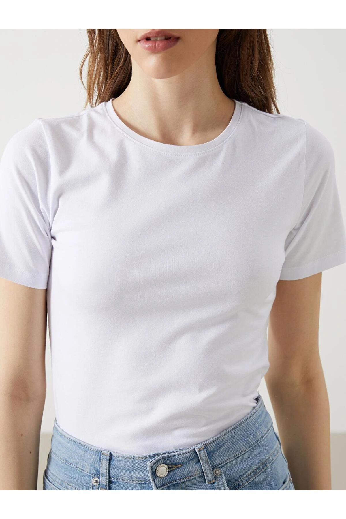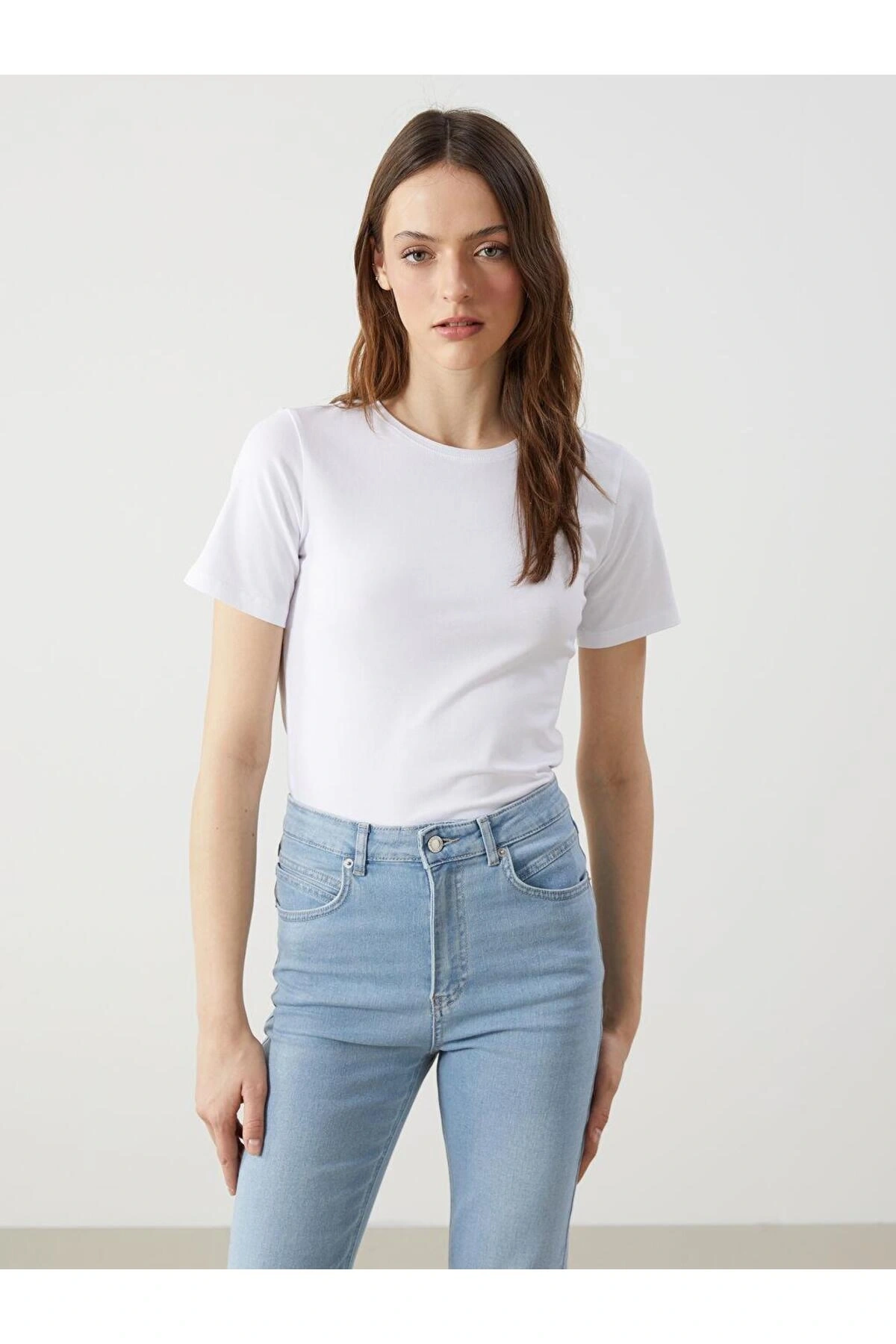 LCW Kadın Bisiklet Yaka Düz Tişört