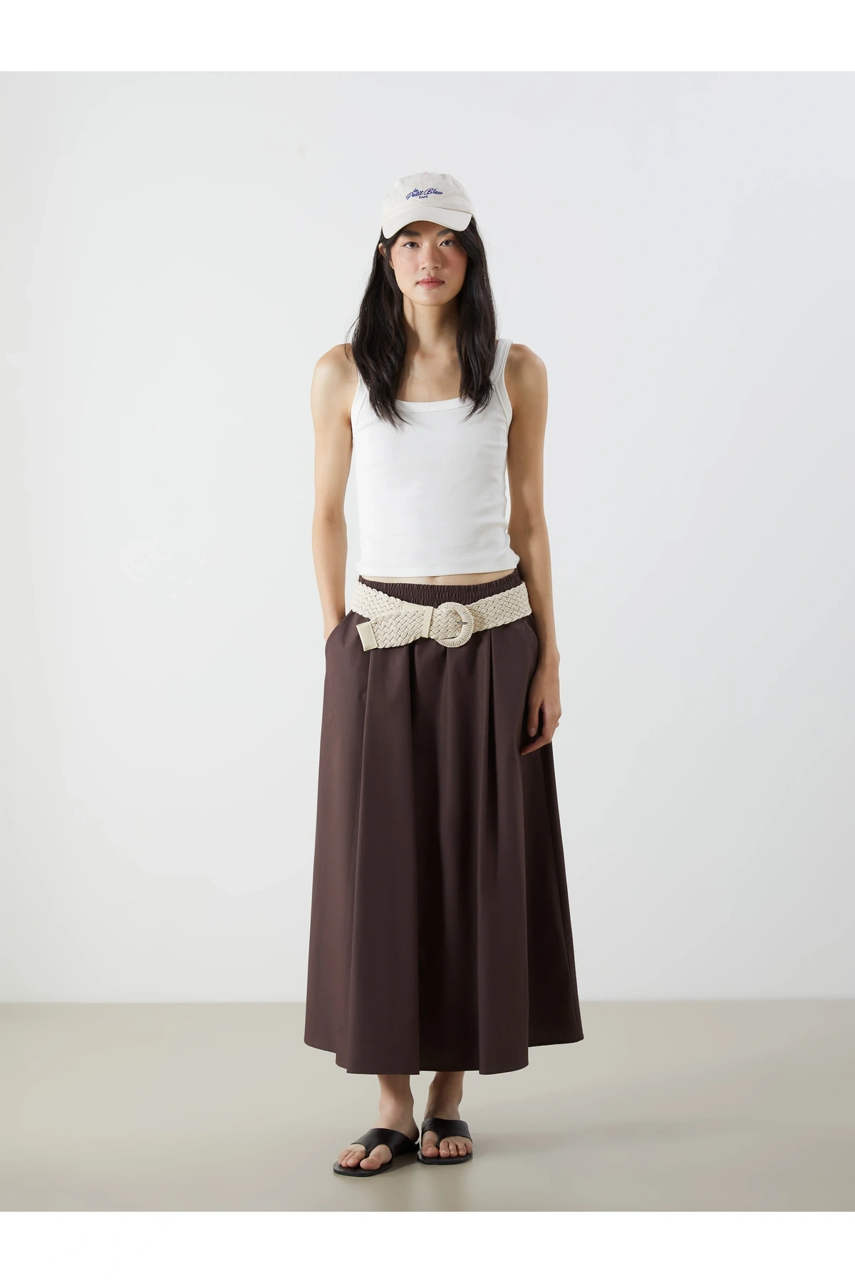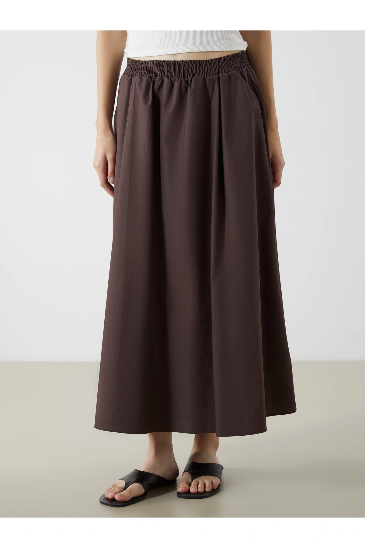 Beli Lastikli Keten Görünümlü Etek