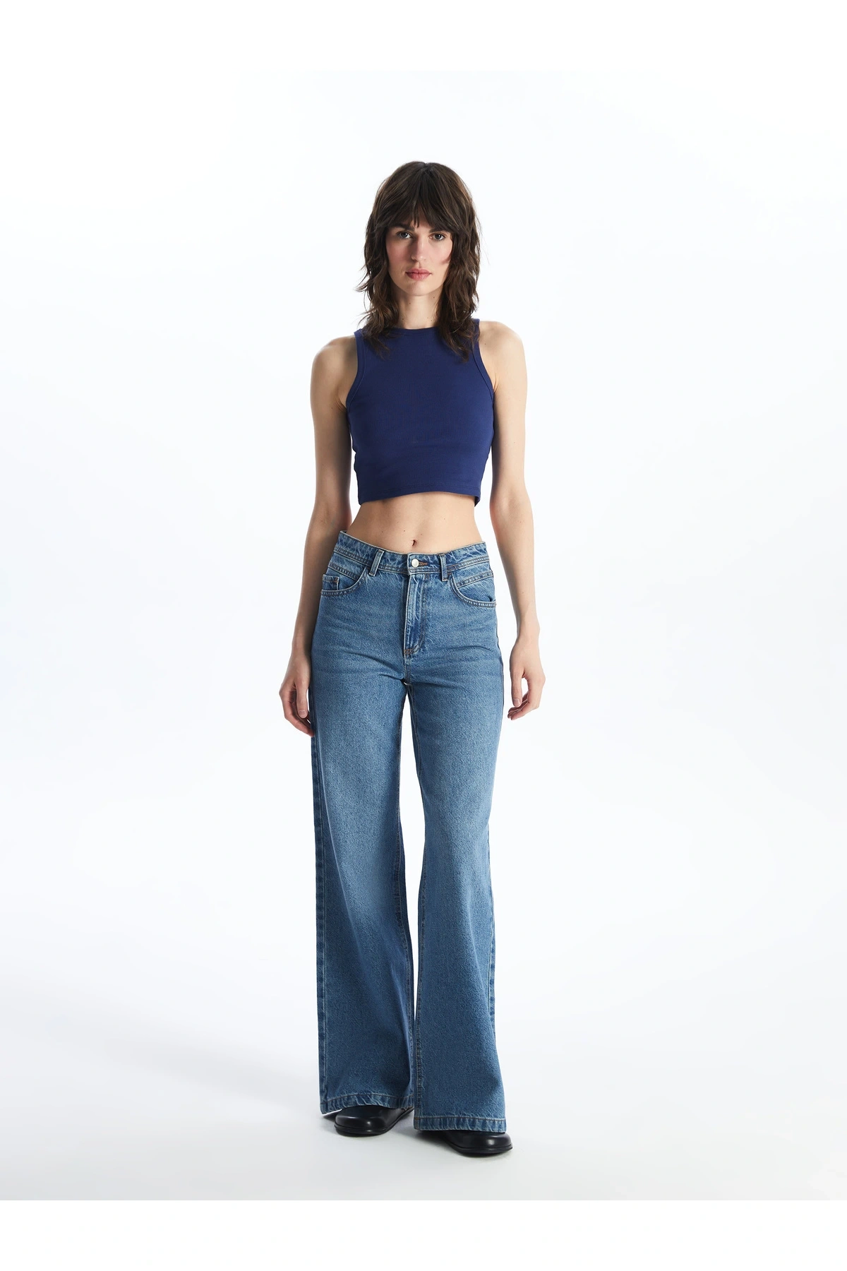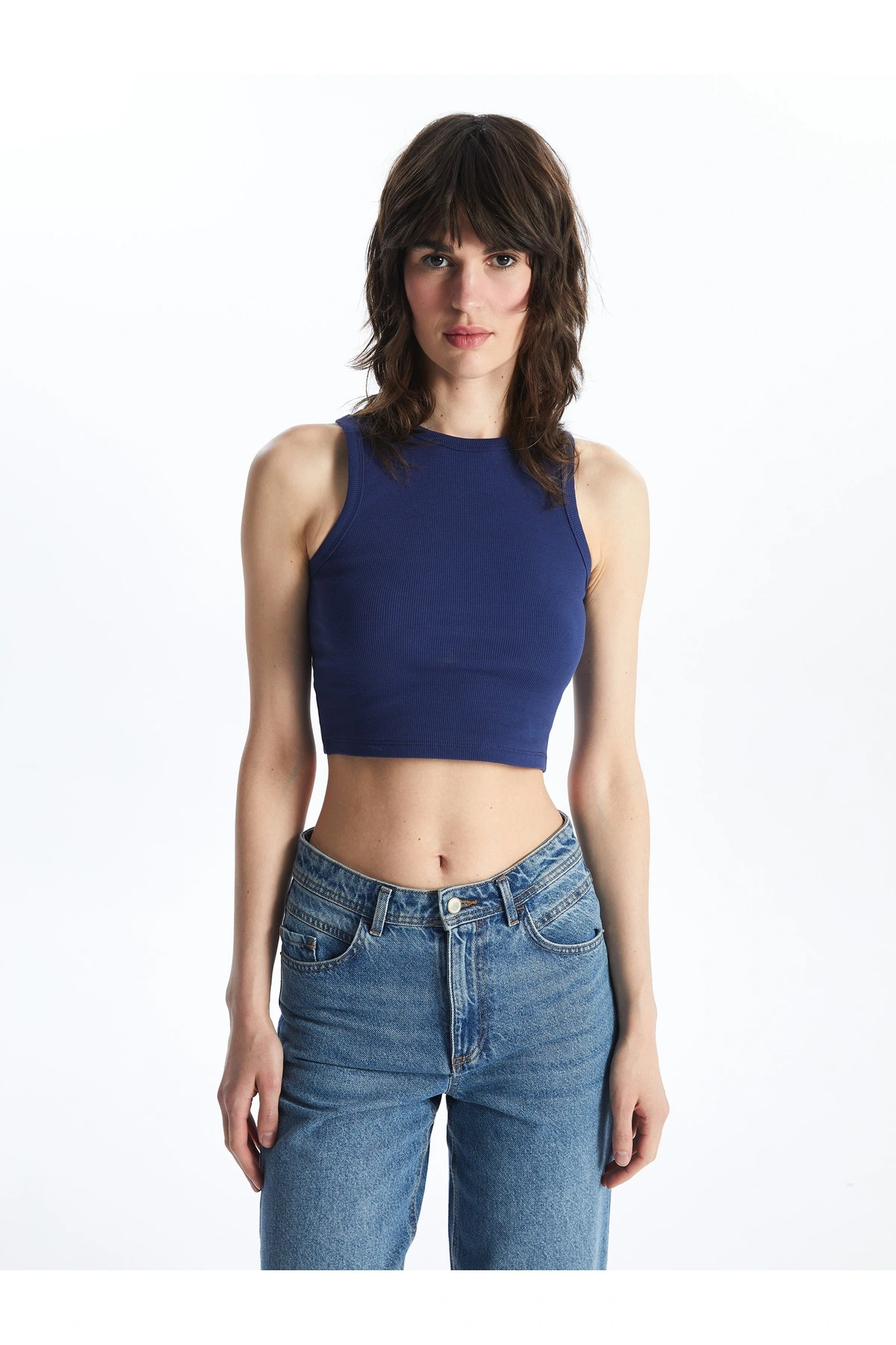 Kadın Bisiklet Yaka Düz Crop