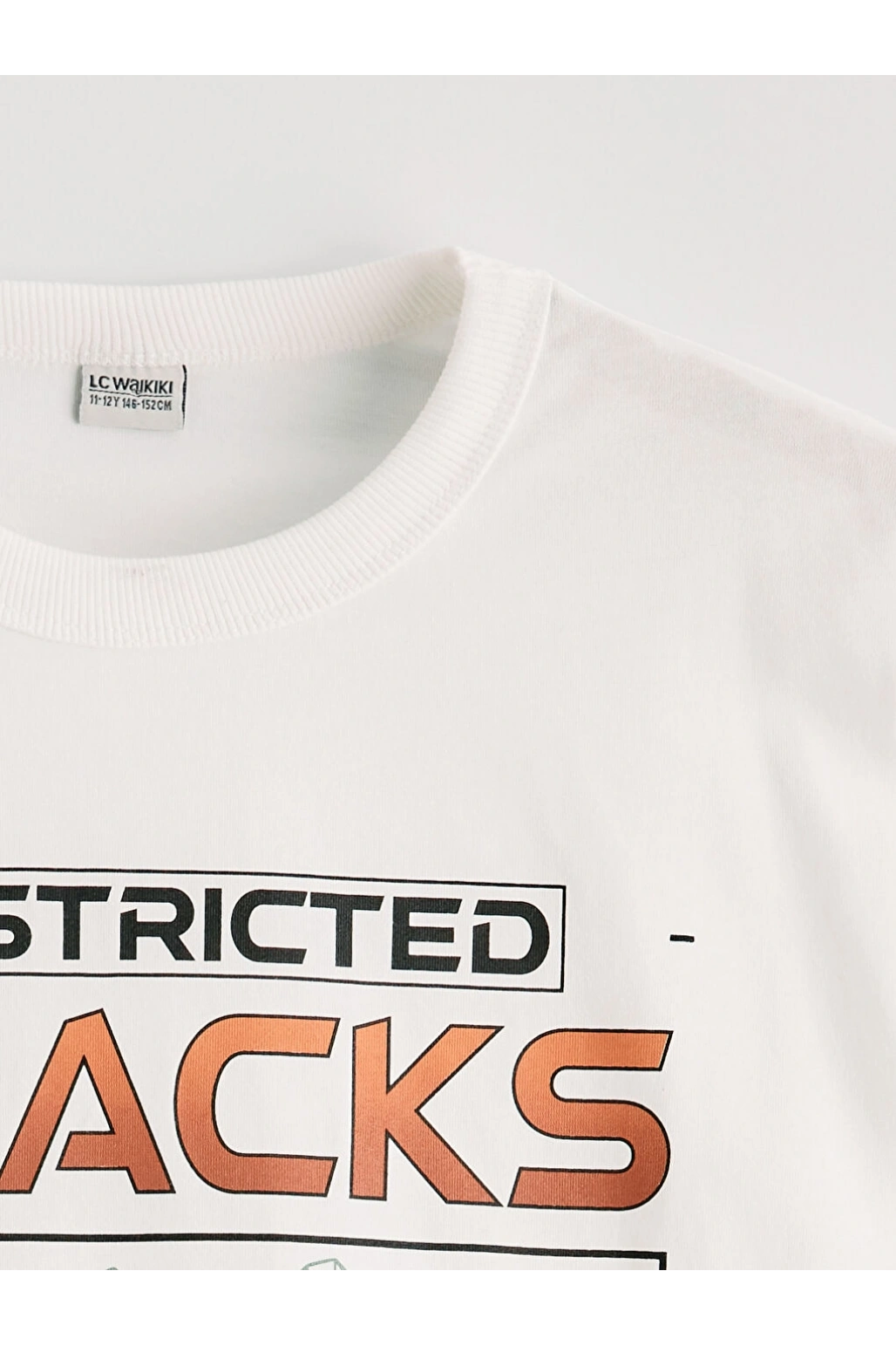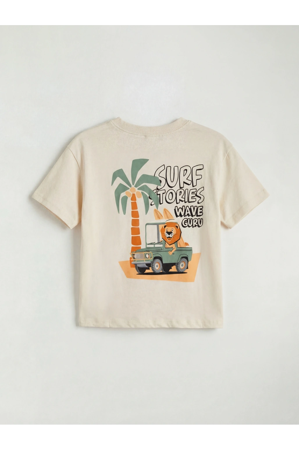 LCW Kids Ekru Bisiklet Yaka Baskılı Erkek Çocuk Tişört