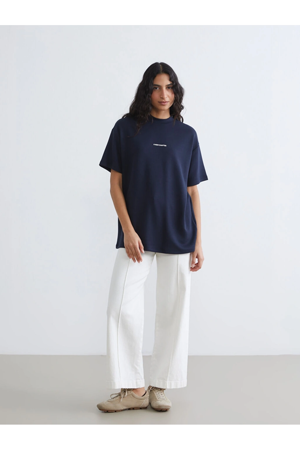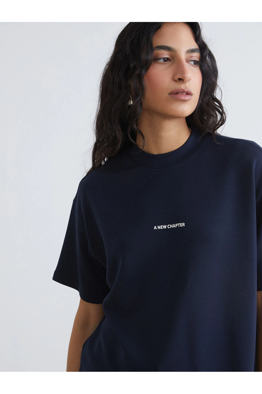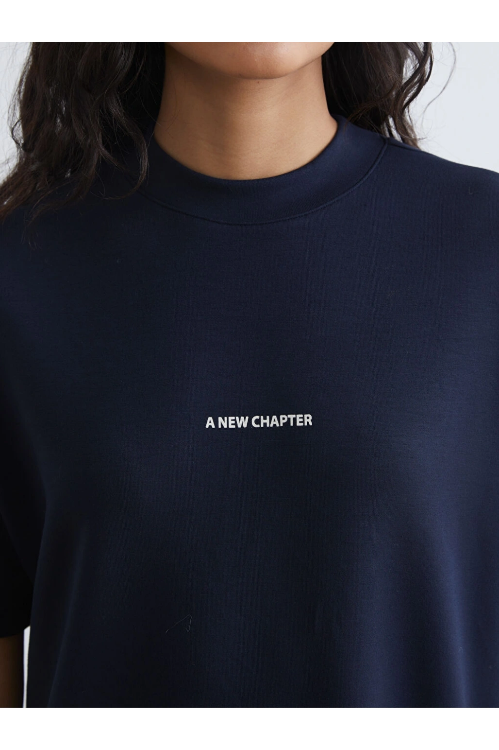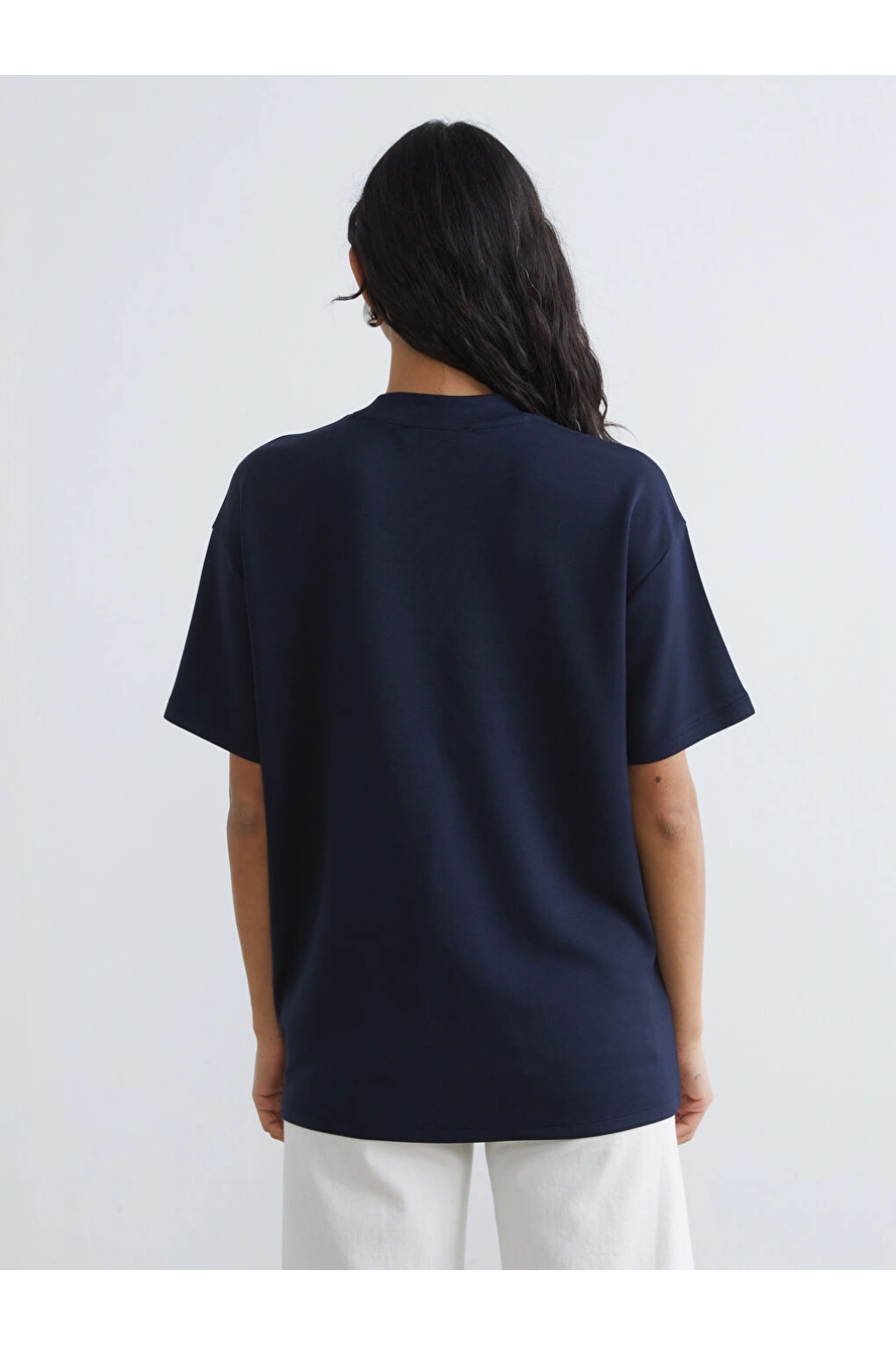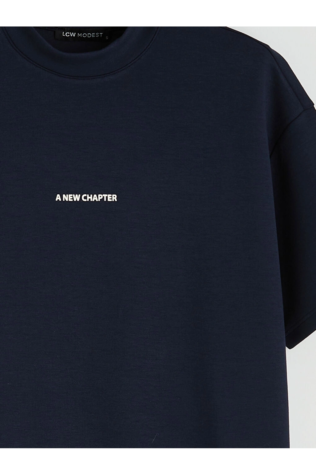 LCW Modest Lacivert Bisiklet Yaka Baskılı Kadın Tişört