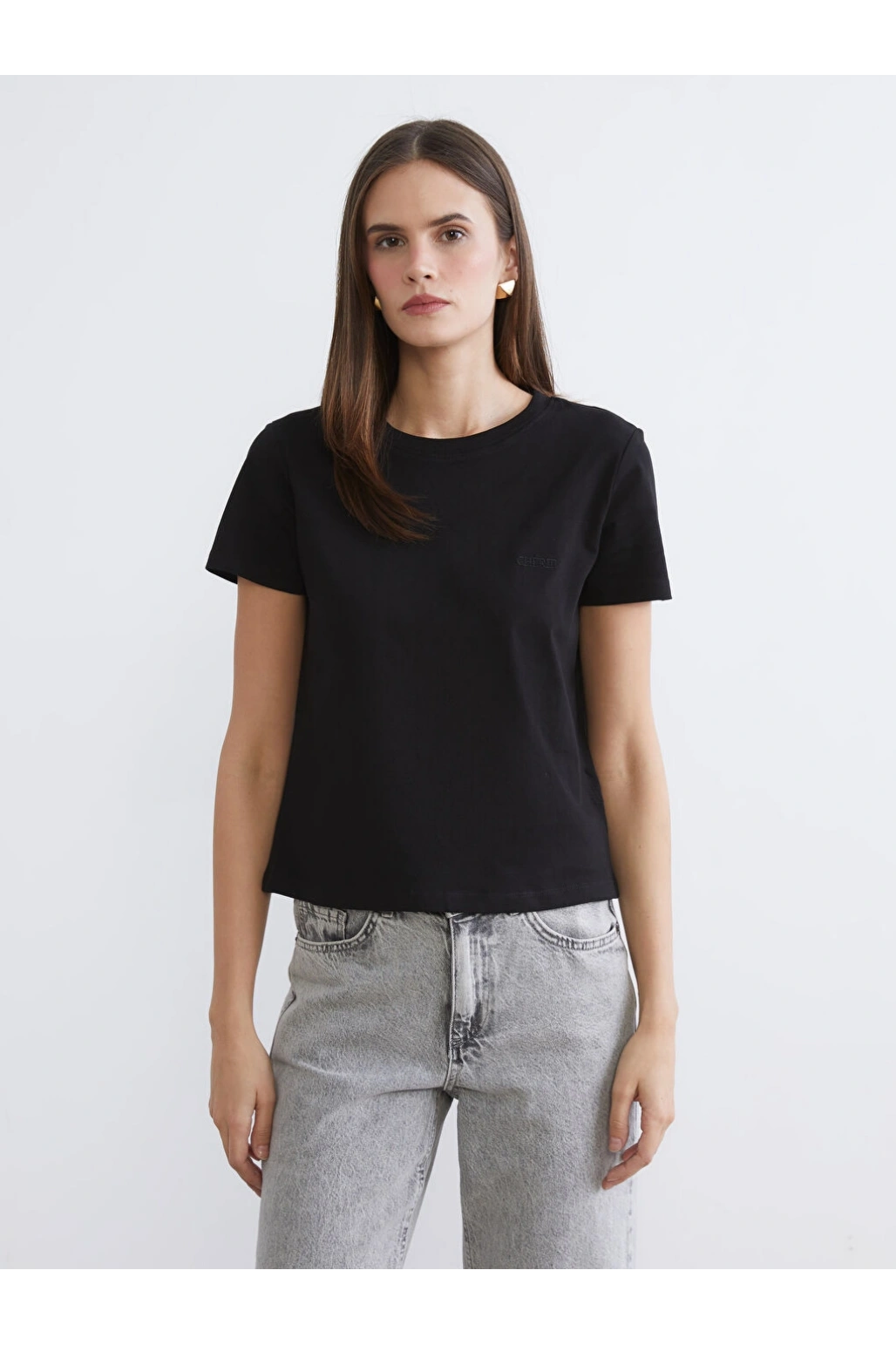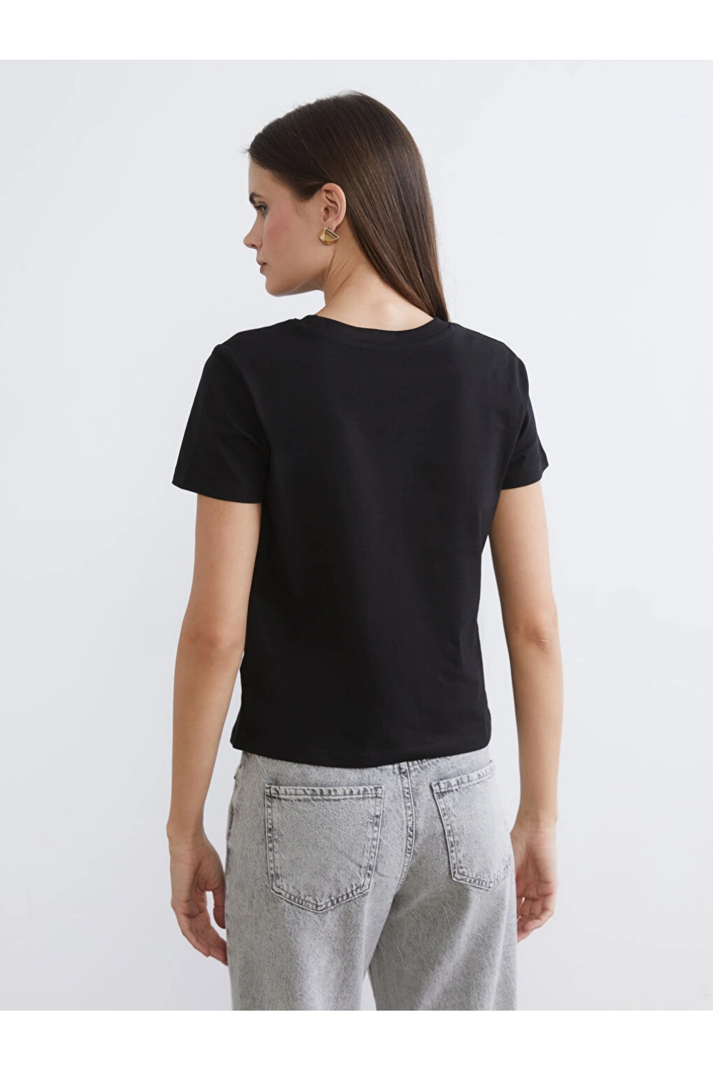 LCW Vision Siyah Bisiklet Yaka Kadın Tişört