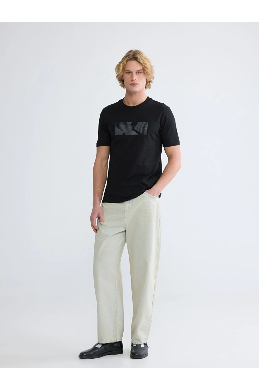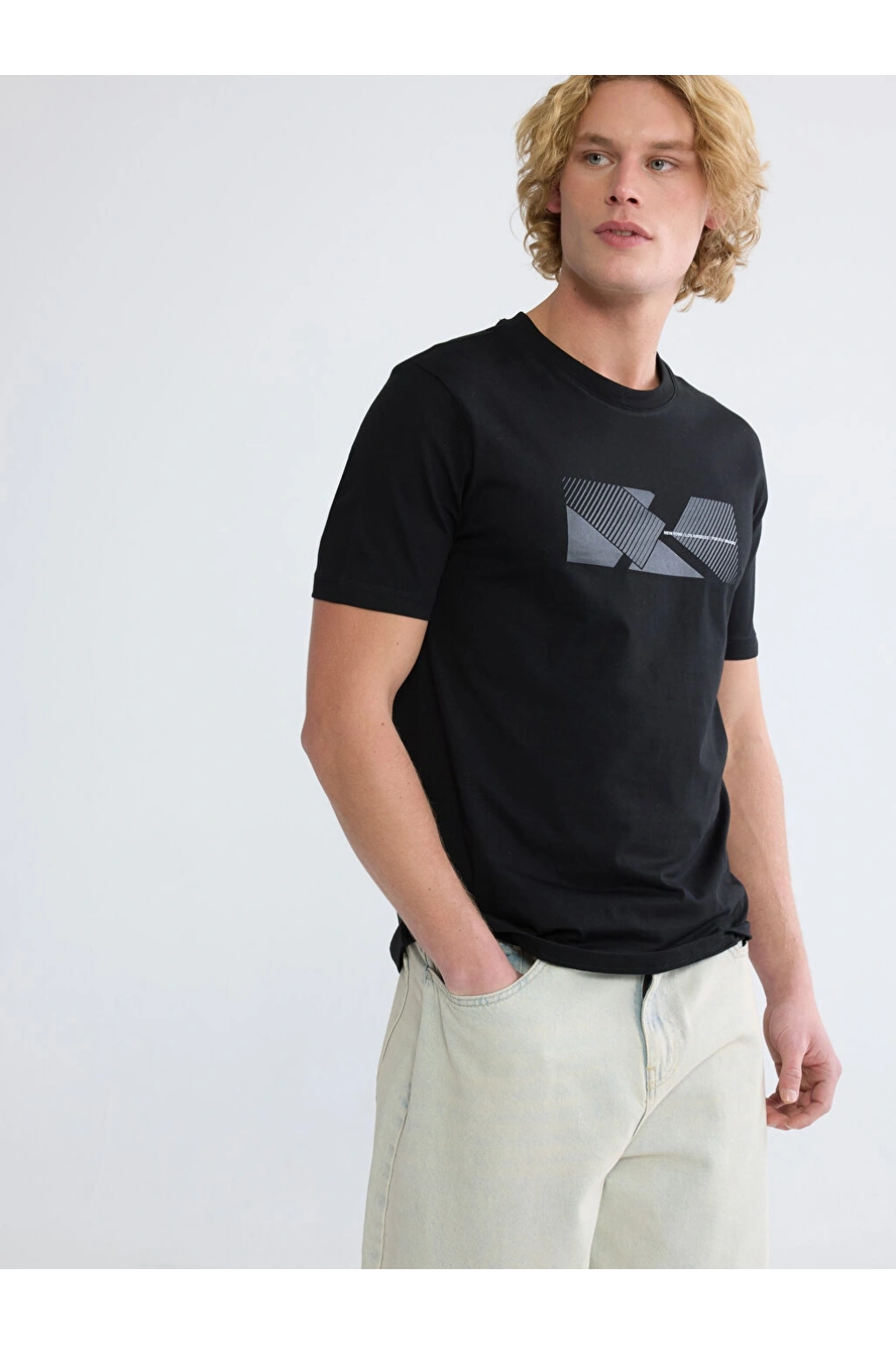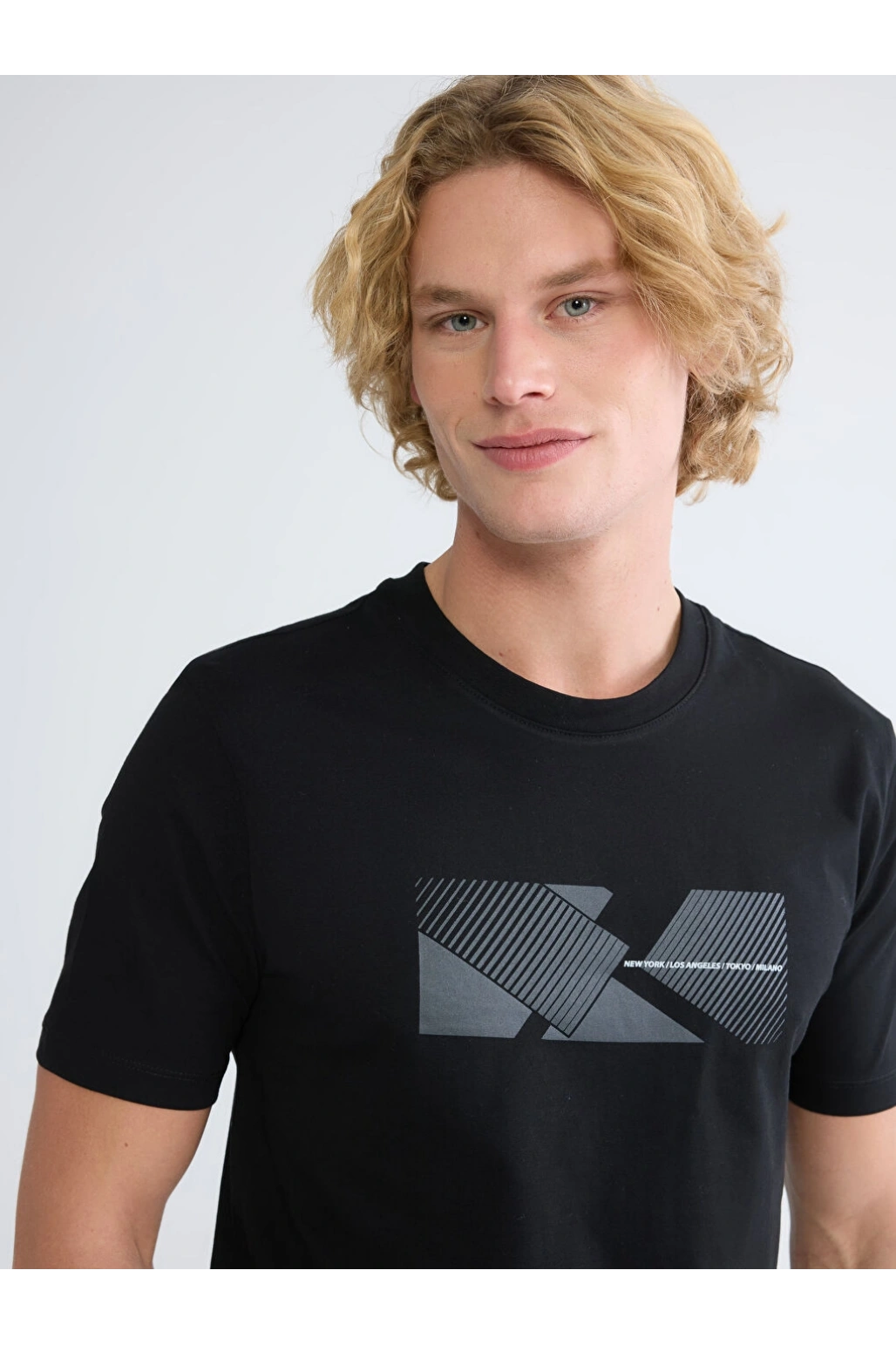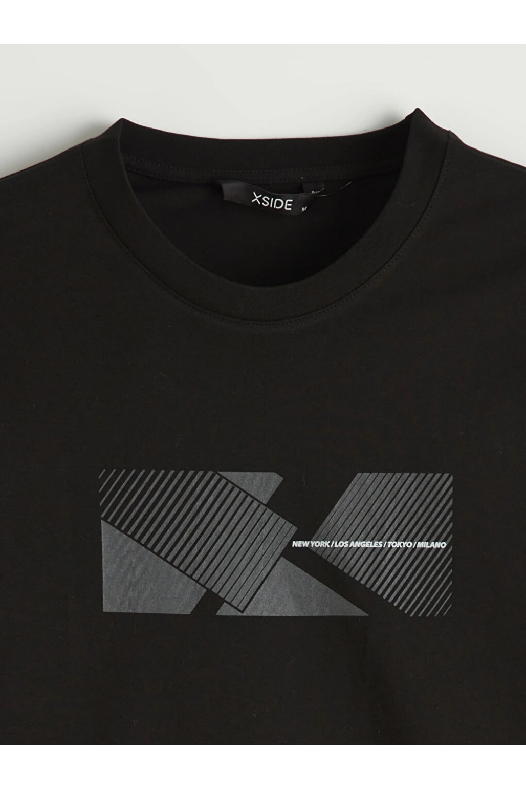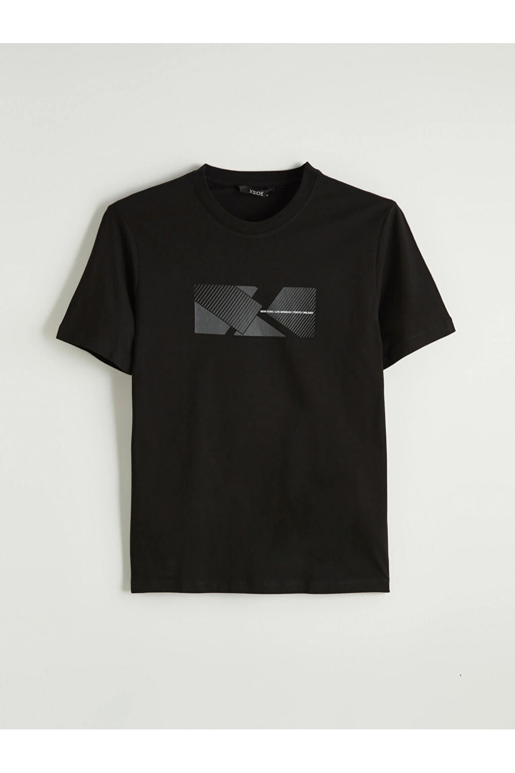 XSIDE Siyah Bisiklet Yaka Baskılı Erkek Tişört