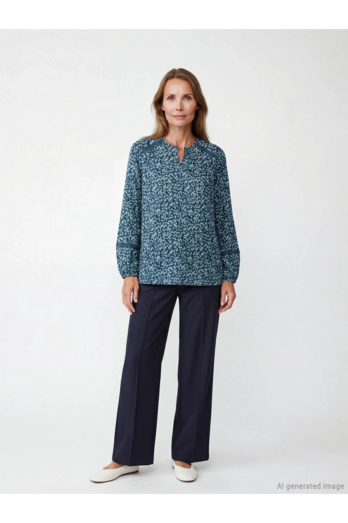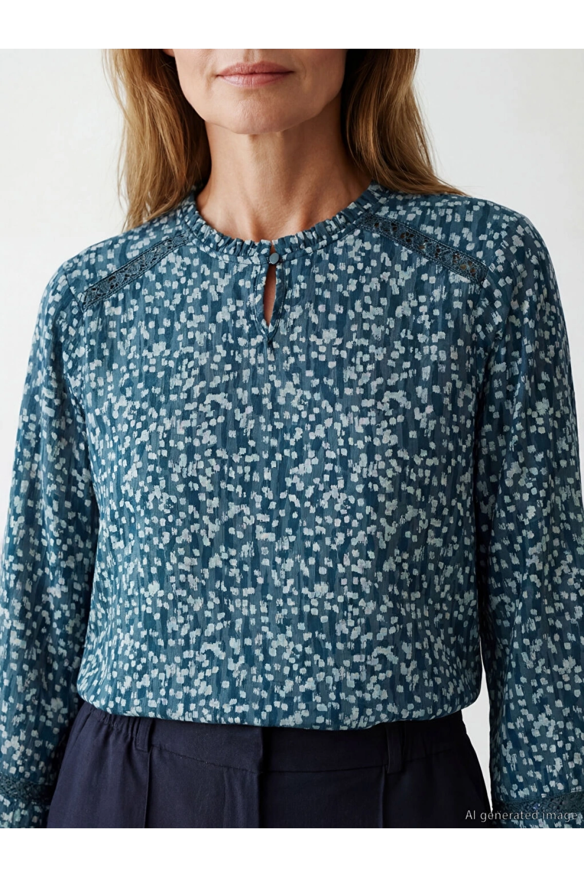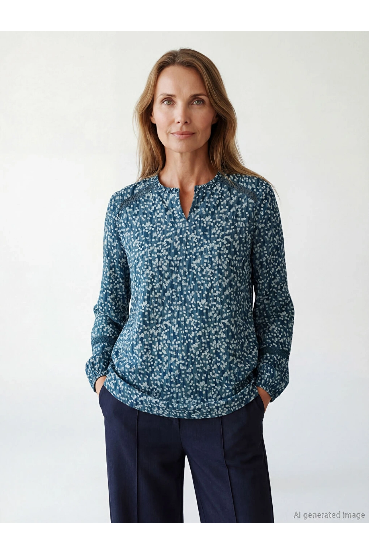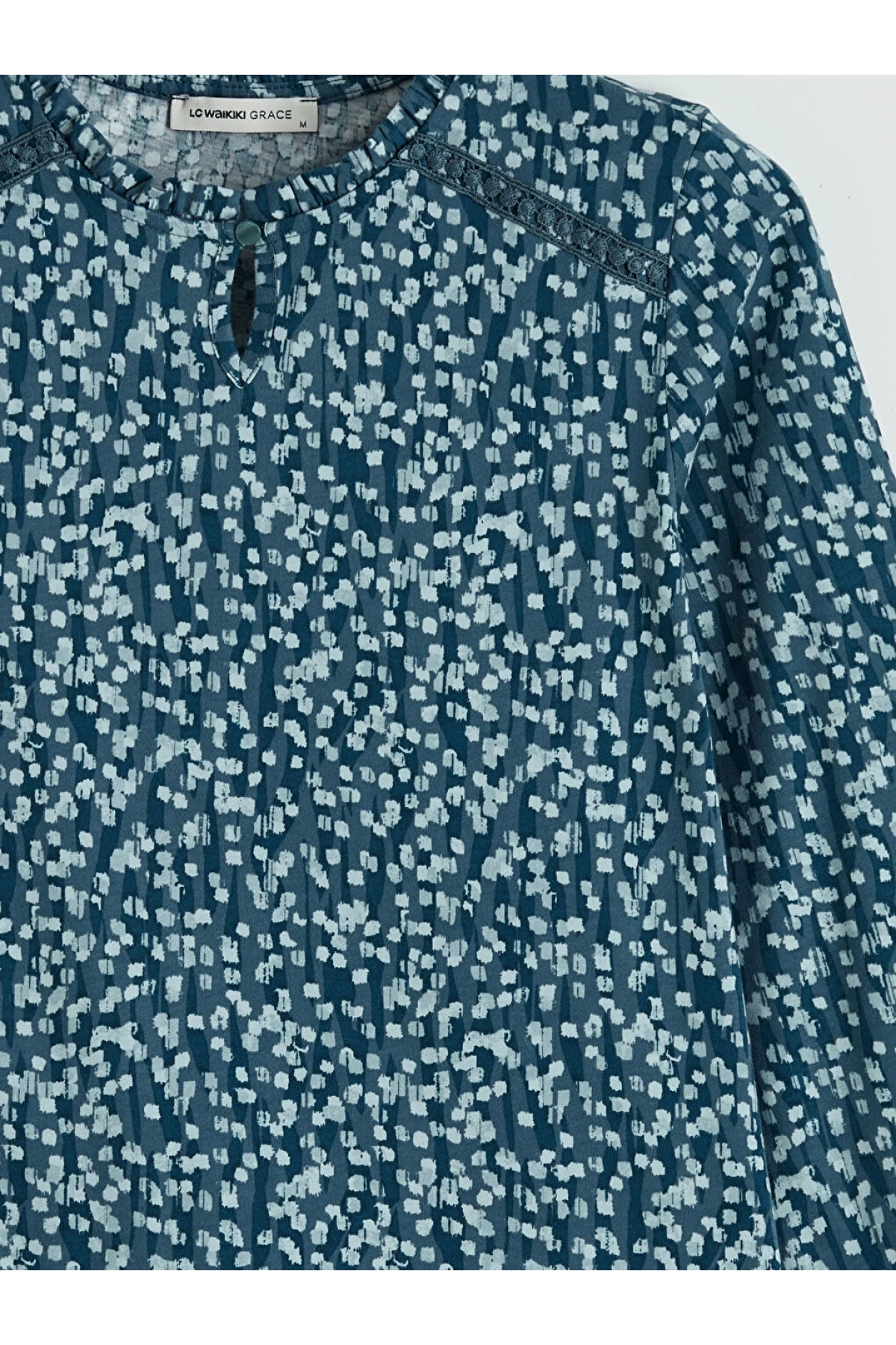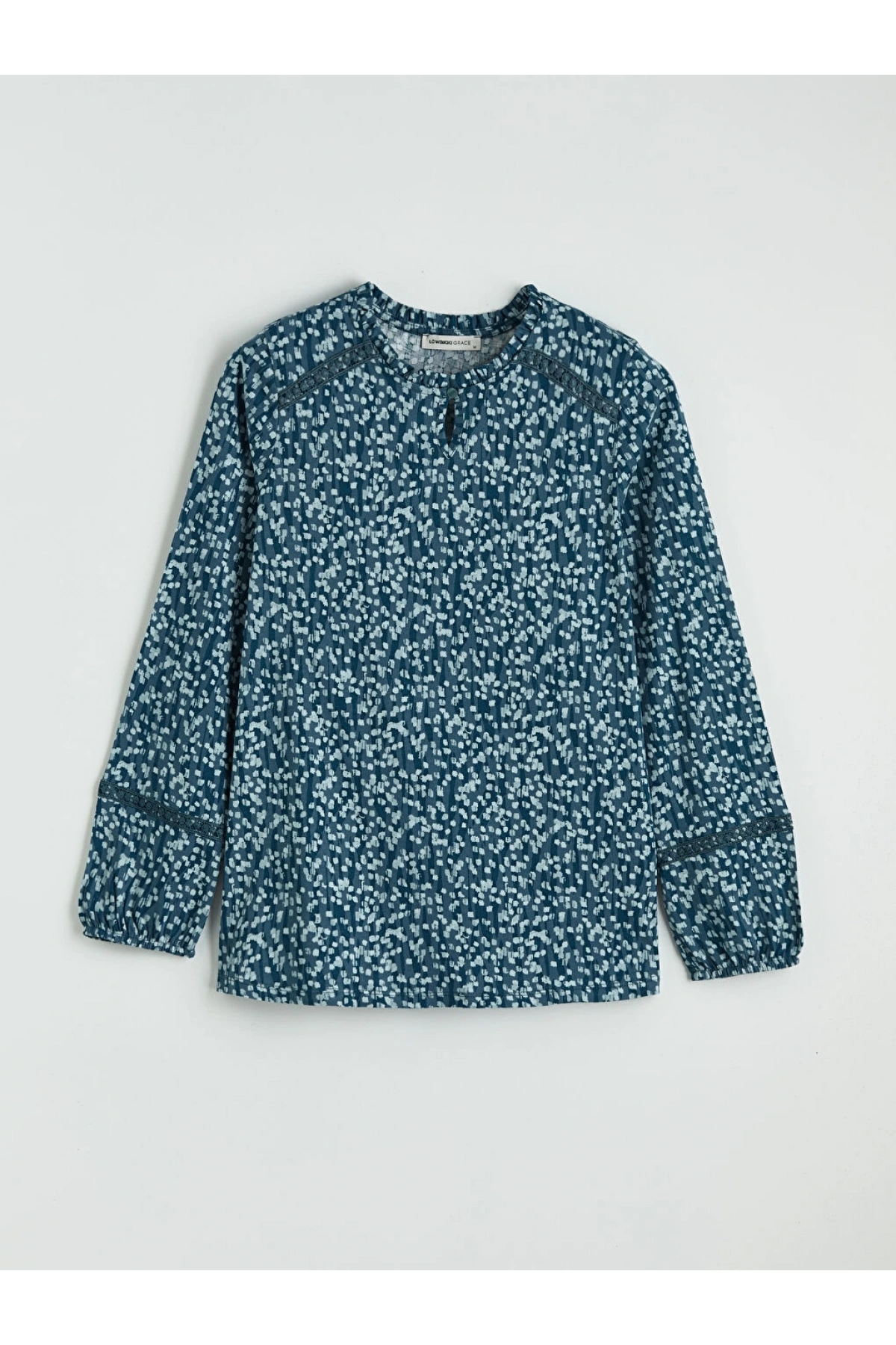 LCW Grace Mavi Kaçık Yaka Desenli Bluz