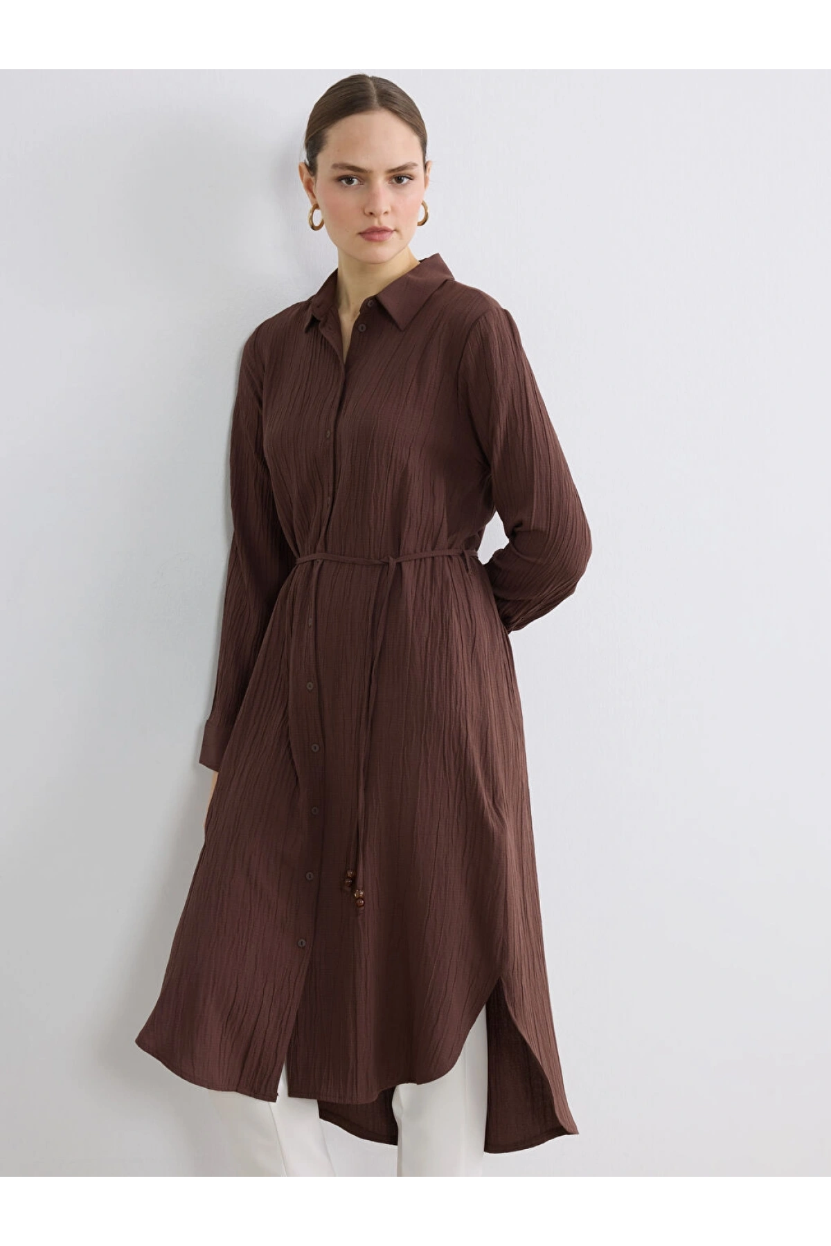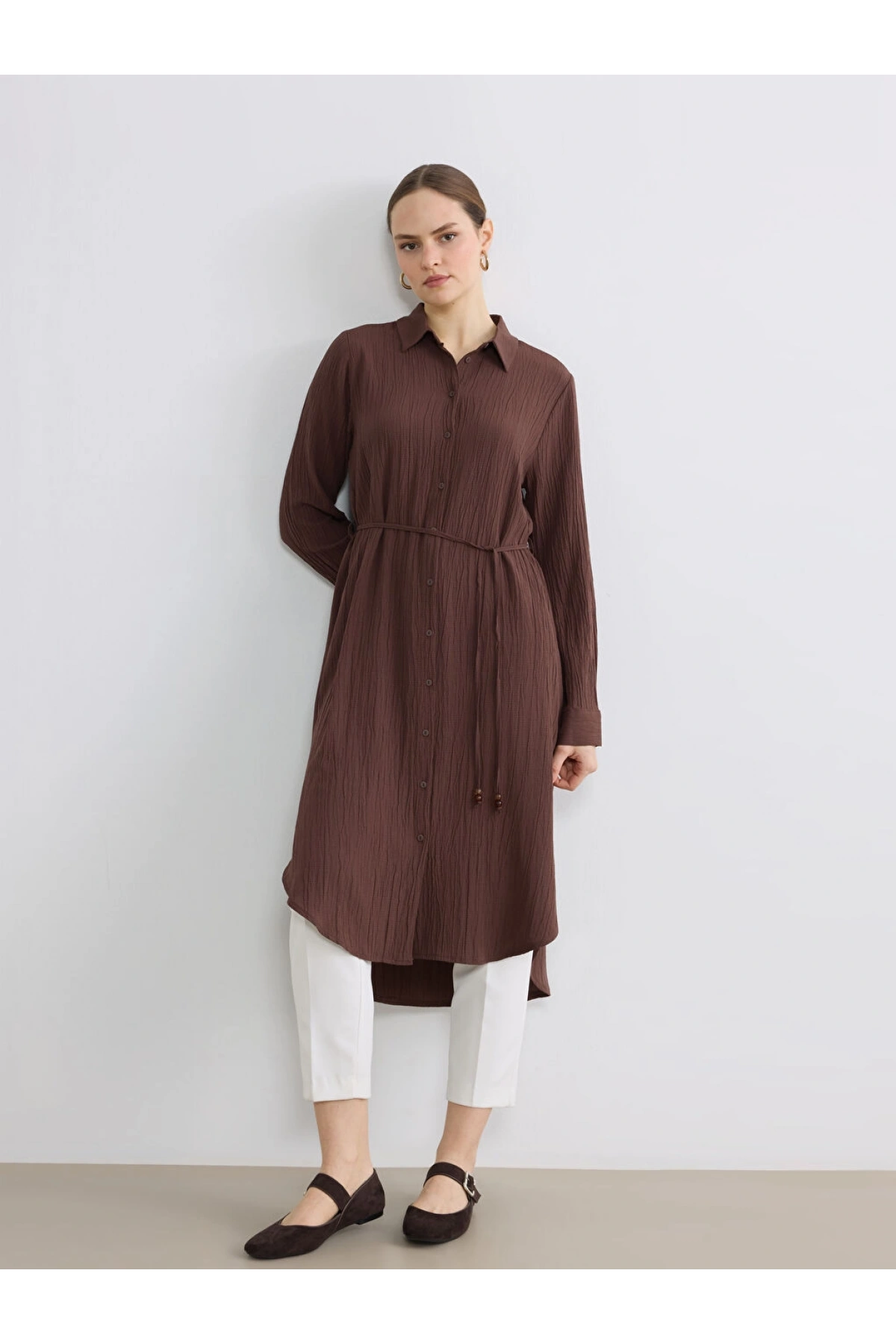 Dokulu Krinkle Kadın Gömlek Tunik