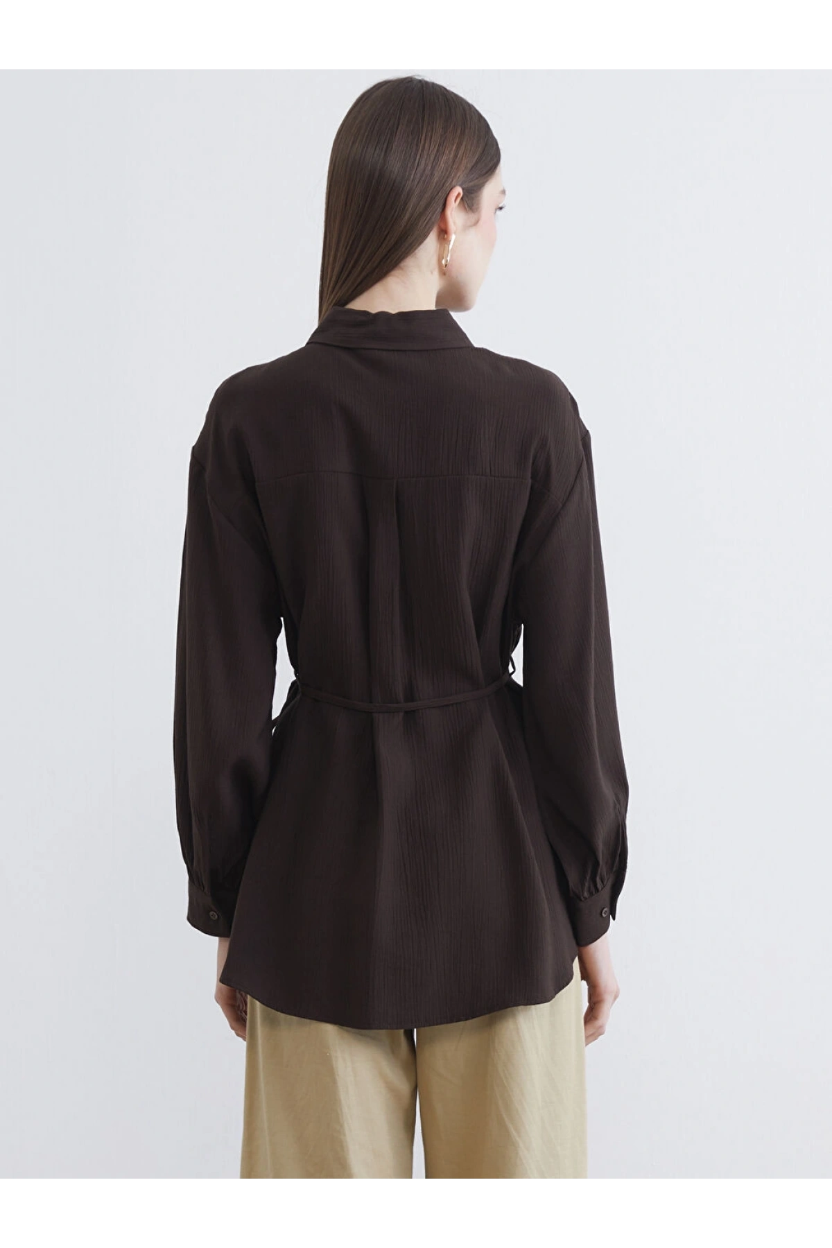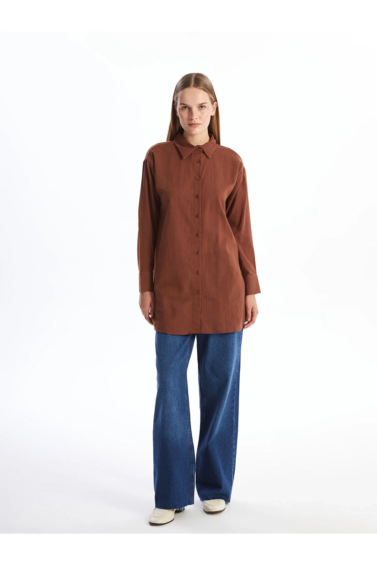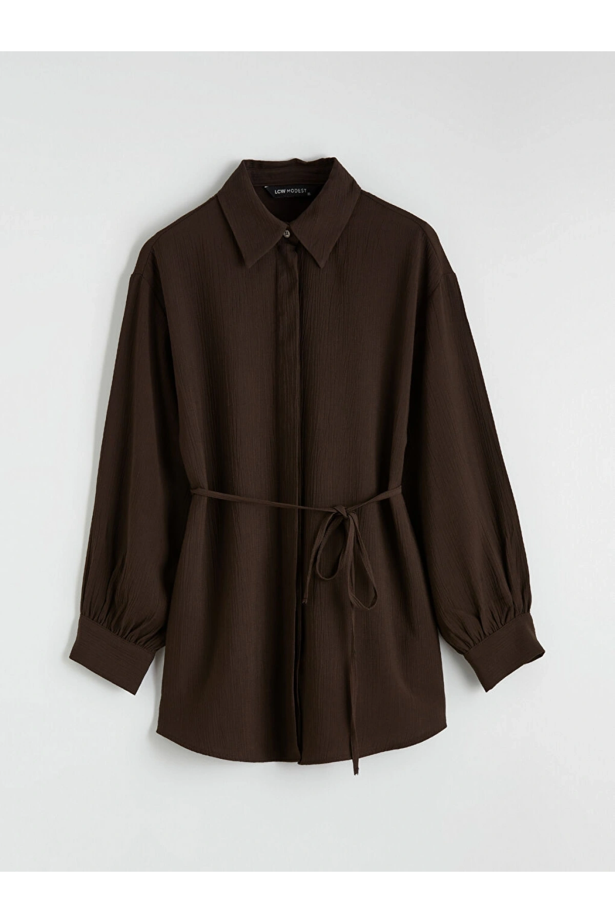 LCWAIKIKI Classic Kahverengi Dokulu Oversize Kadın Gömlek Tunik