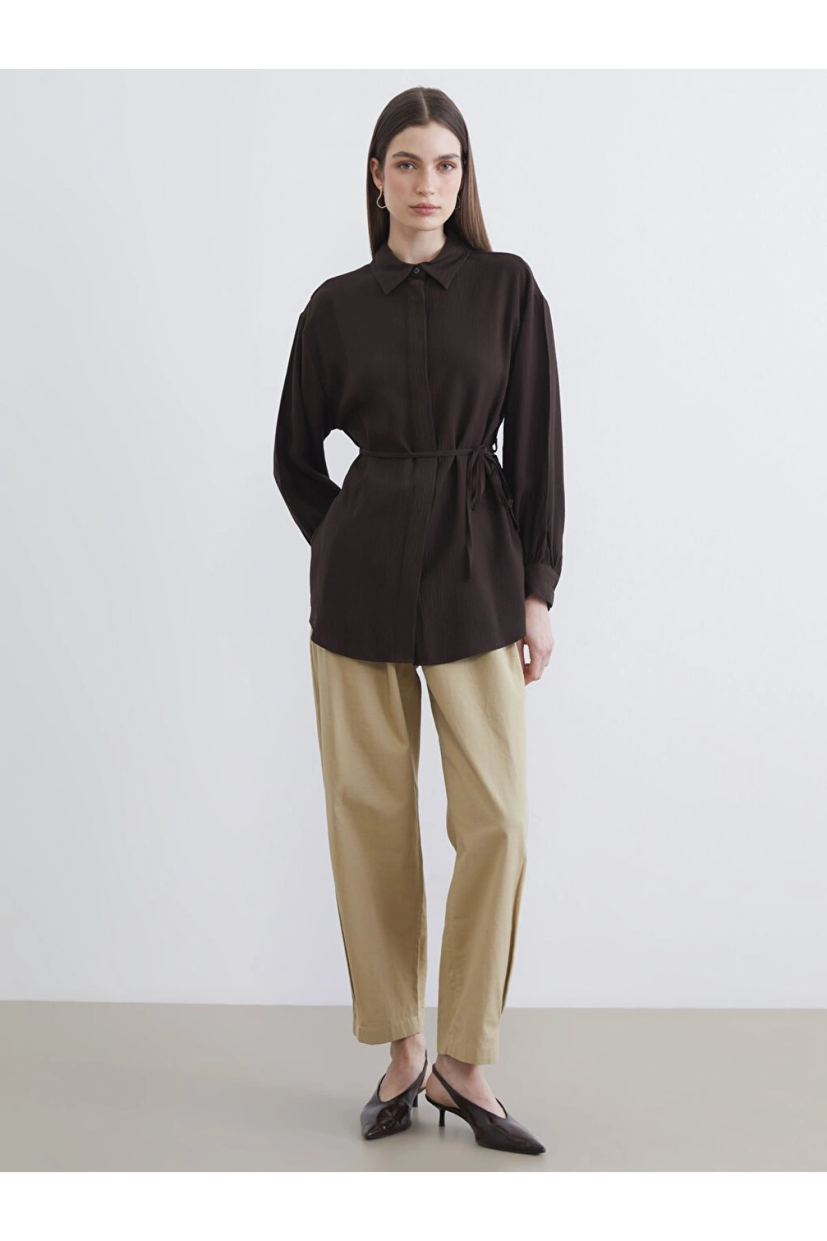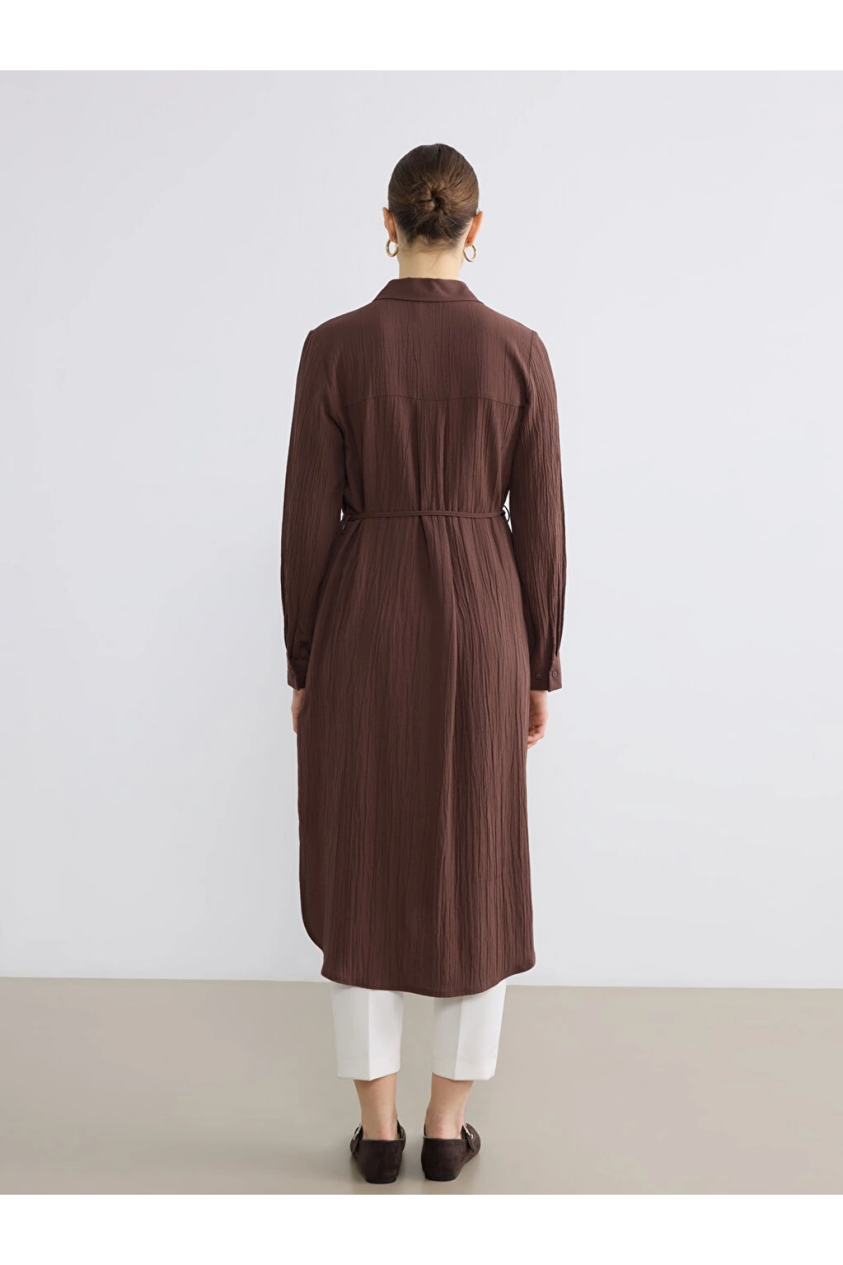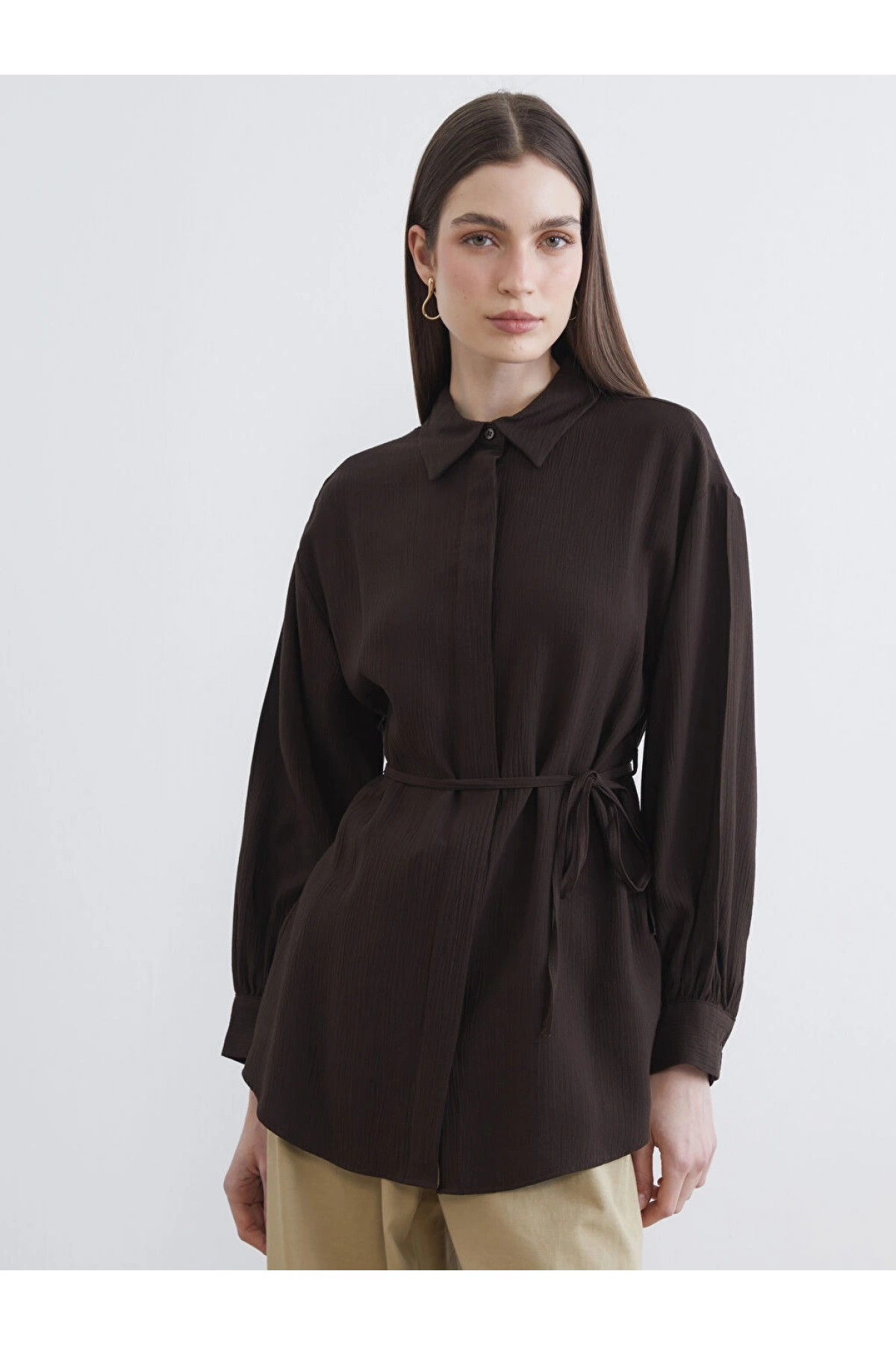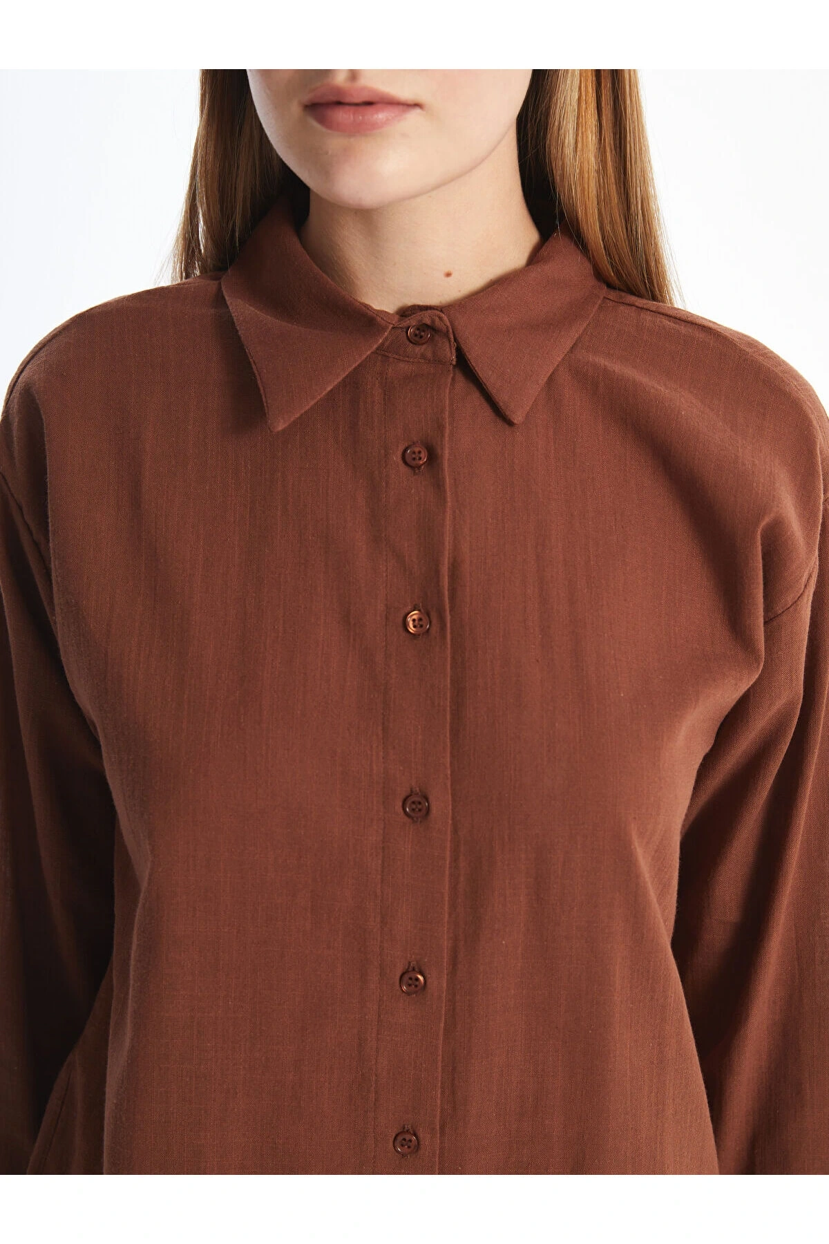 LCWAIKIKI Classic Kahverengi Dokulu Oversize Kadın Gömlek Tunik