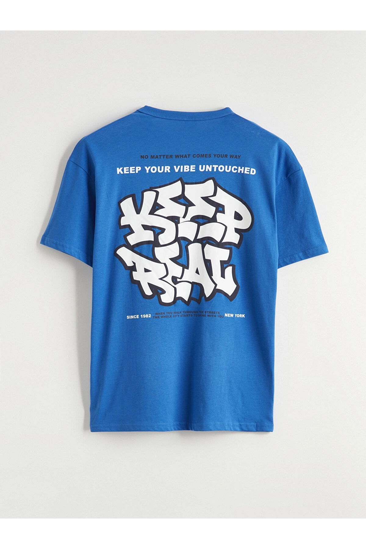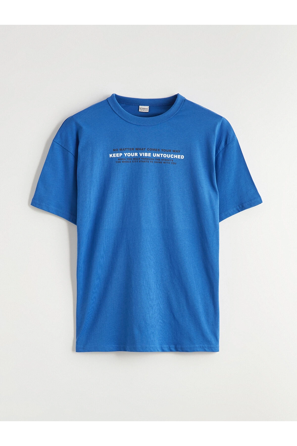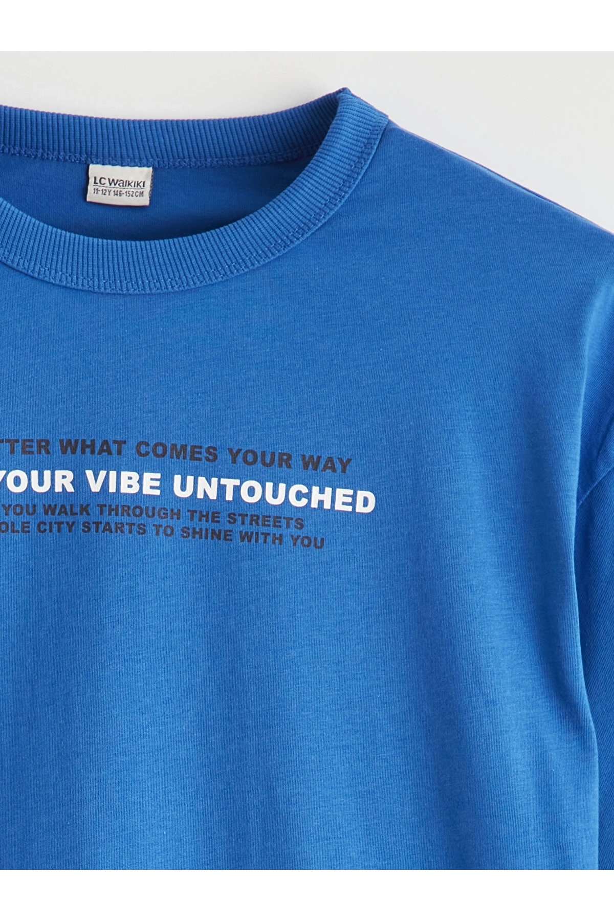 LCW Kids Mavi Slogan Baskılı Erkek Çocuk Tişört