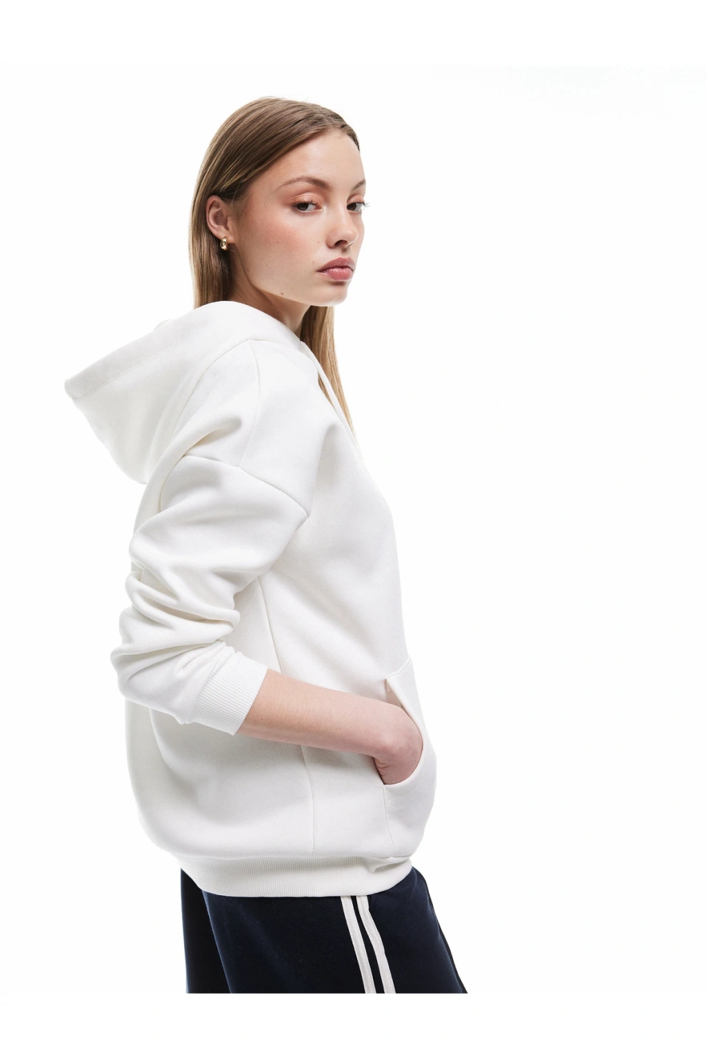 Kapüşonlu yaka ve kanguru cep detaylarıyla dikkat çeken sweatshirt, rahat bir stil sunuyor. Üç iplik şardonlu dokusu ile ekstra sıcaklık sağlarken modern bir görünüm kazanıyor. Regular fit yapısı sayesinde günlük ve spor giyim kombinlerinin vazgeçilmezi haline geliyor. Hem konforu hem de şıklığı bir arada sunan bu parça, zarif ve tarz sahibi kadınların gardıroplarında yerini alıyor.