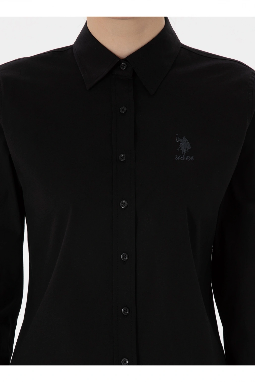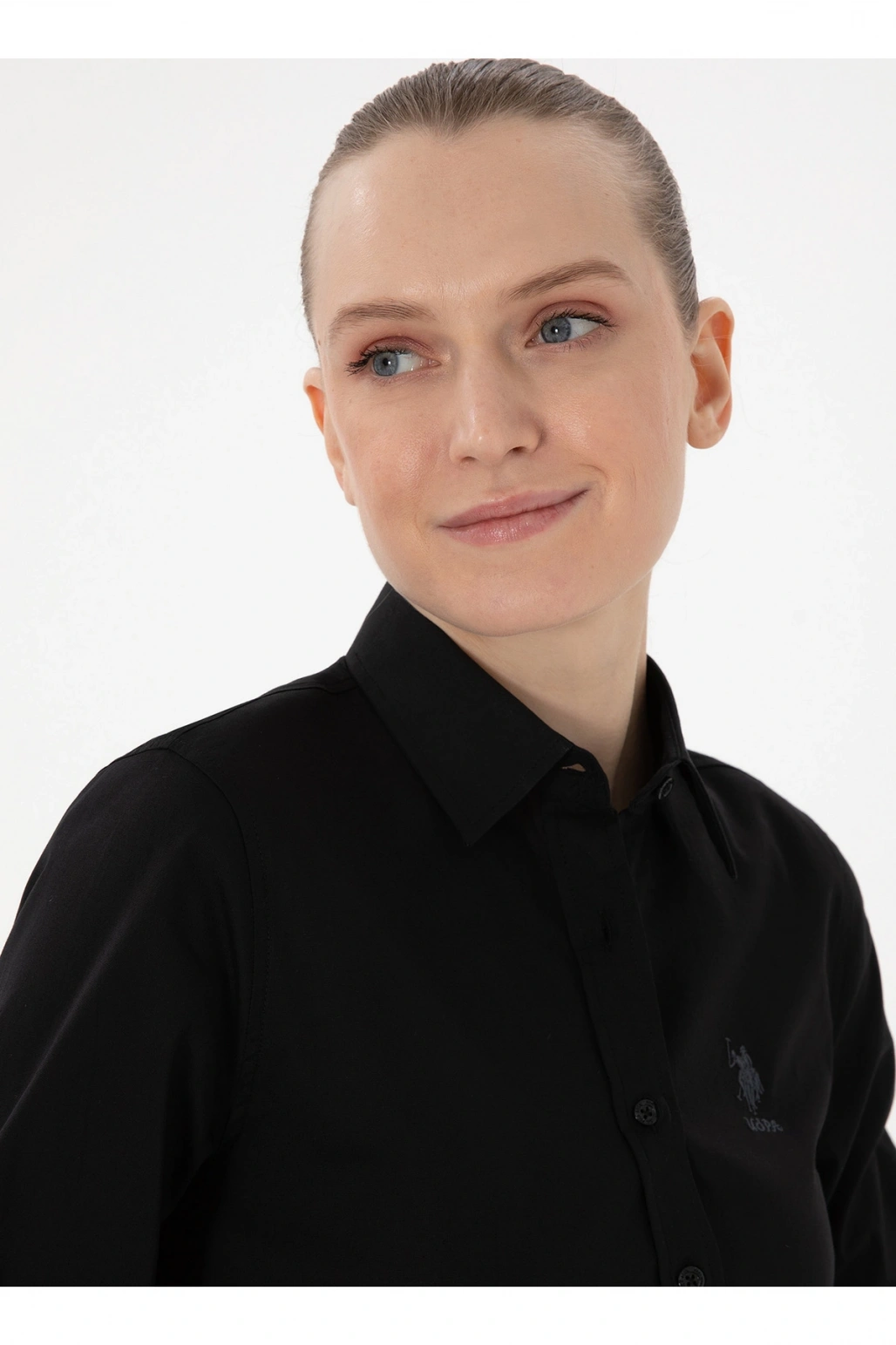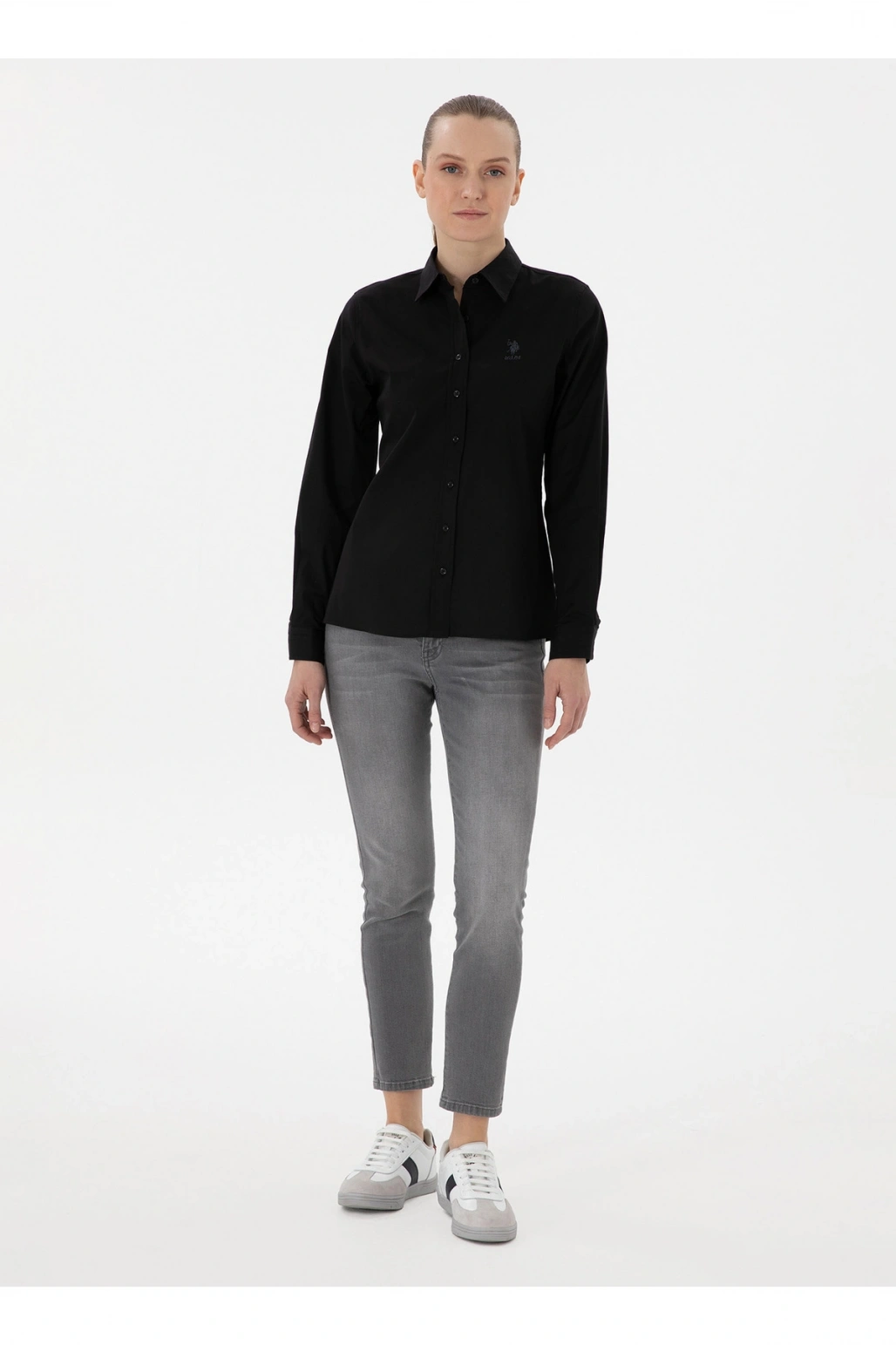 U.S. Polo Assn. U.S. Polo Assn. Slim Fit Gömlek Yaka Siyah Kadın Gömlek