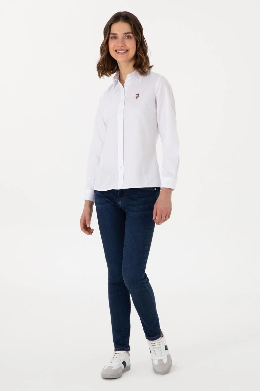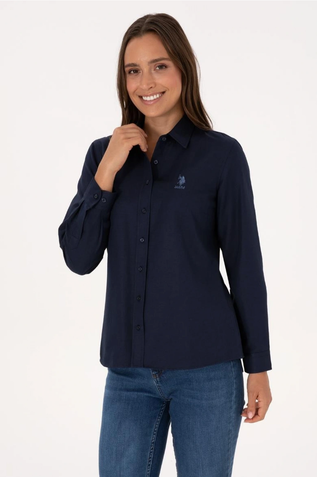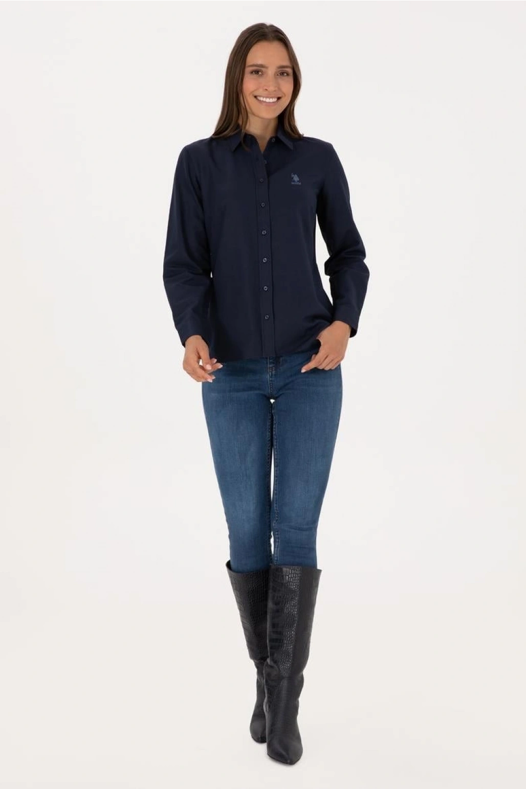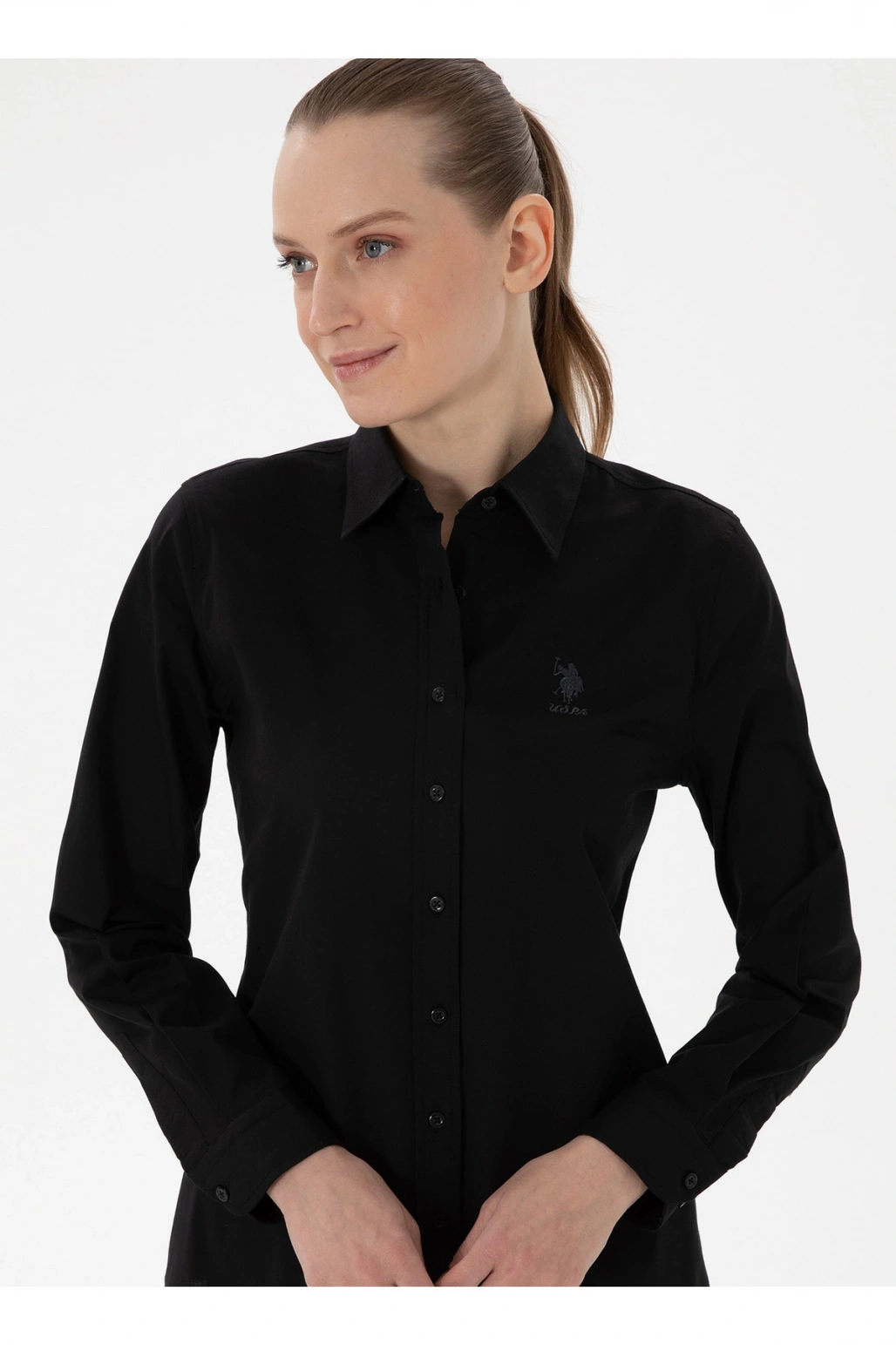 U.S. Polo Assn. U.S. Polo Assn. Slim Fit Gömlek Yaka Siyah Kadın Gömlek