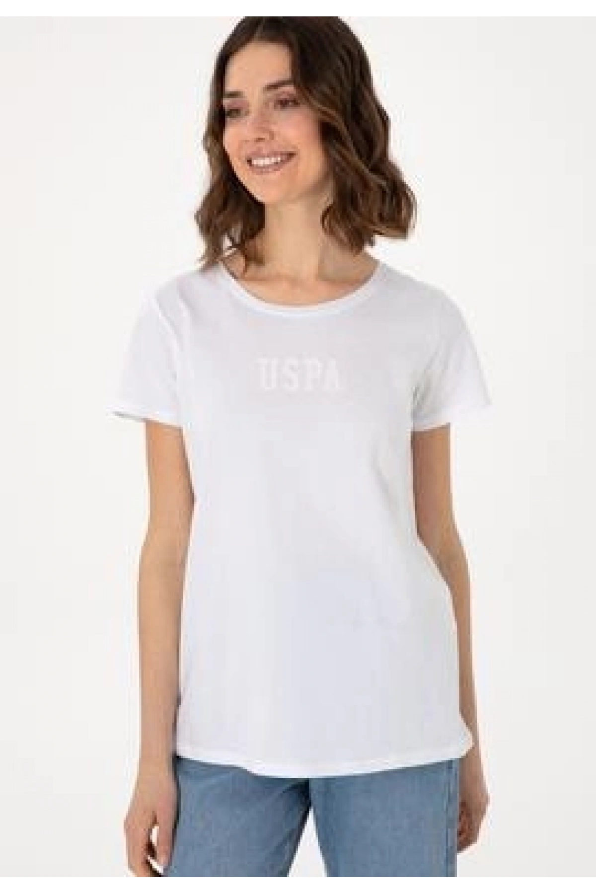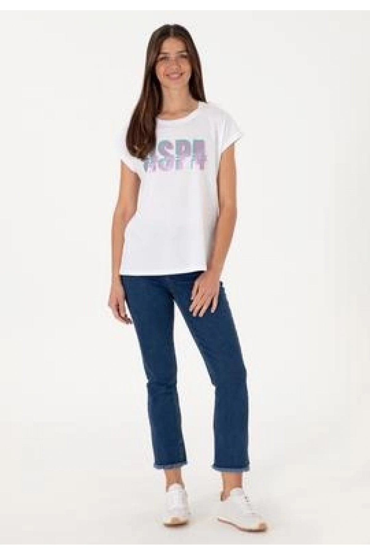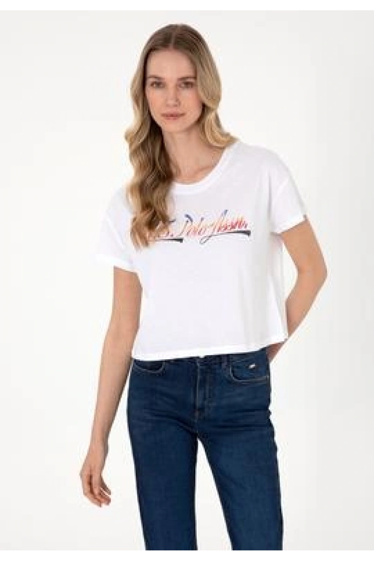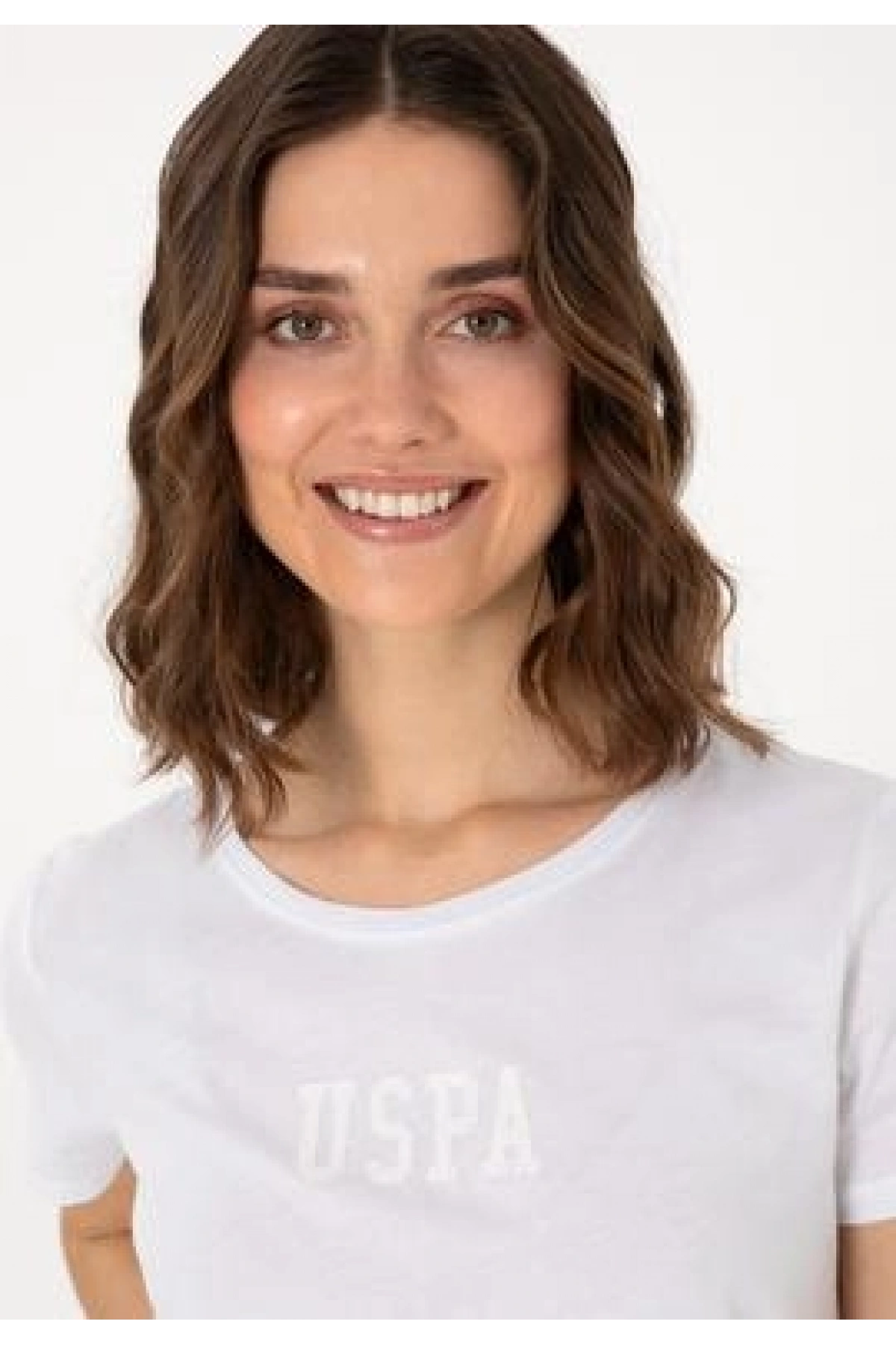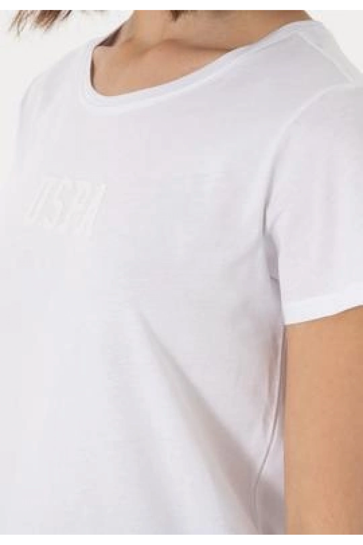 U.S.POLO Kadın Beyaz Bisiklet Yaka Tişört