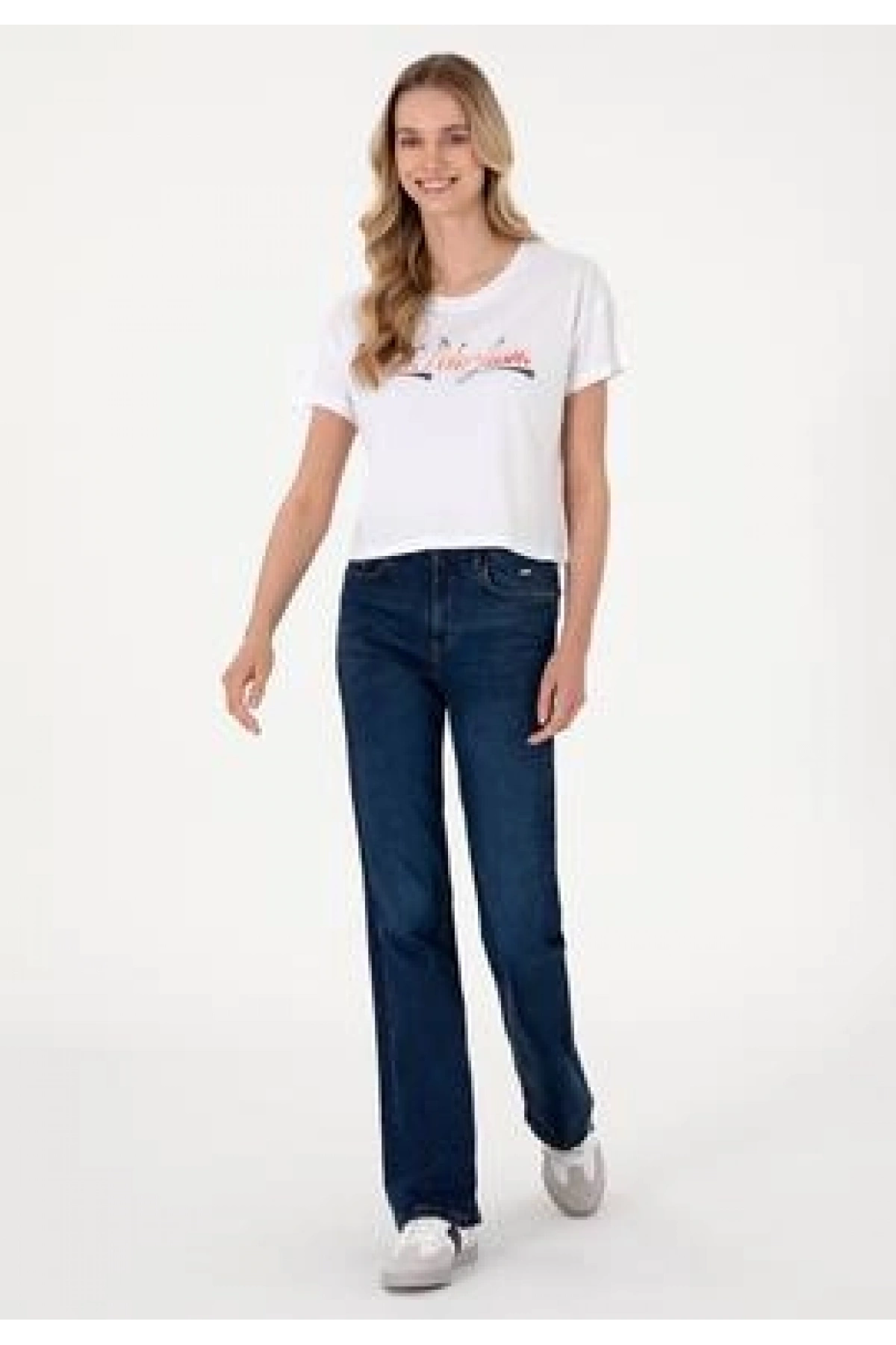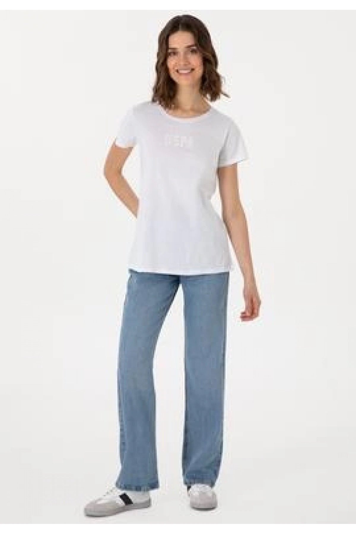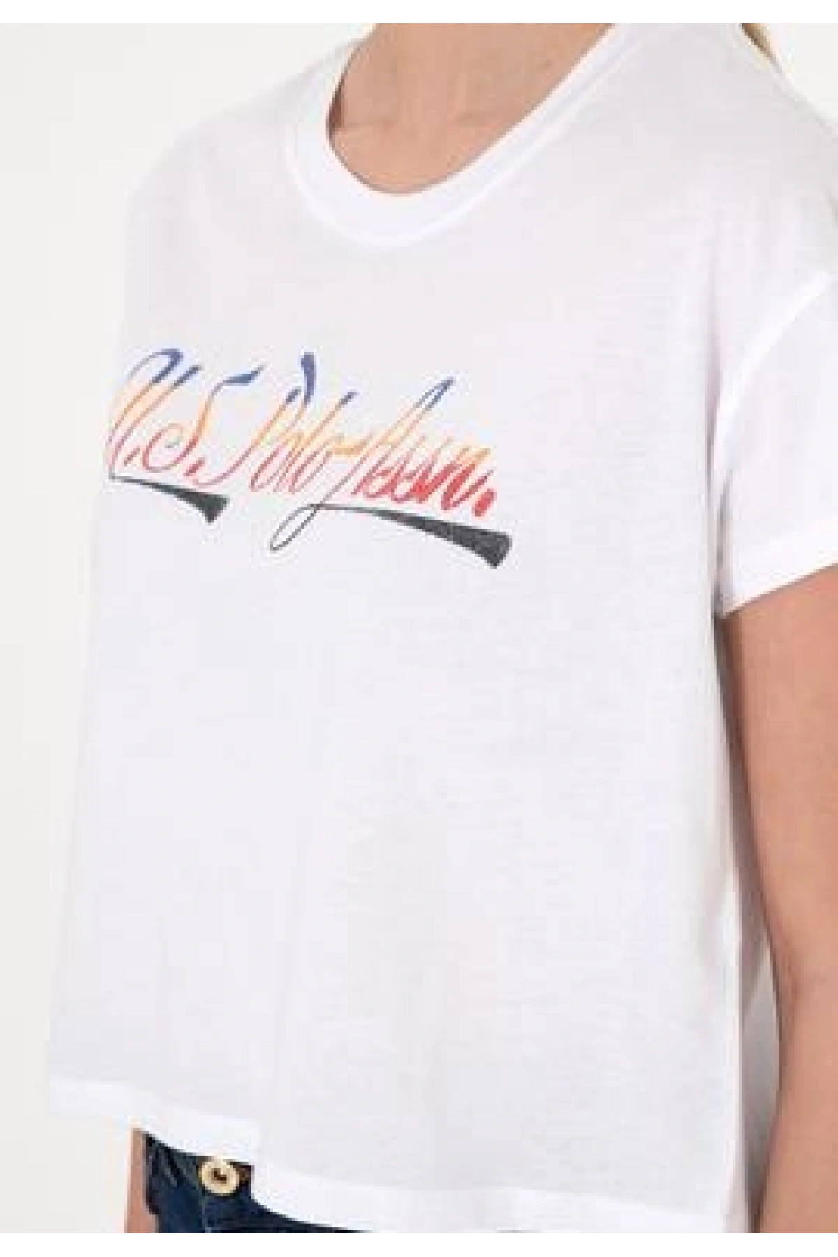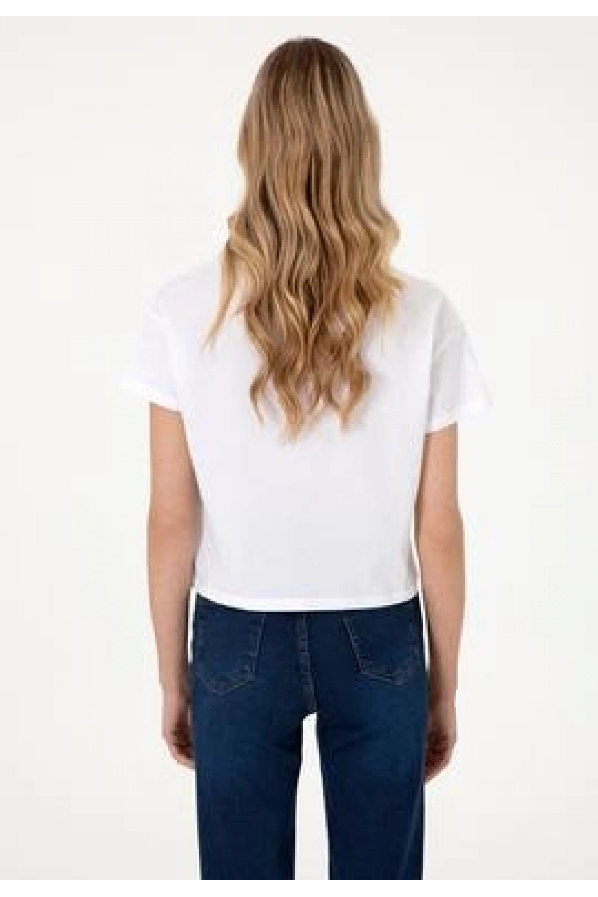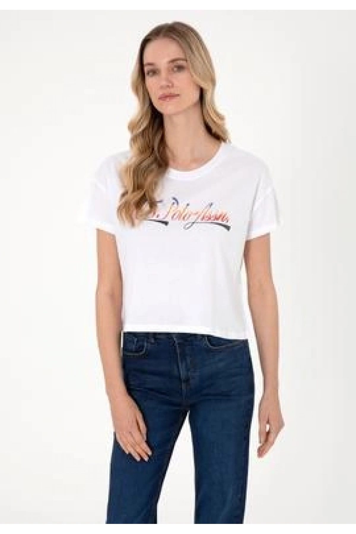 U.S.POLO Kadın Beyaz Bisiklet Yaka Tişört