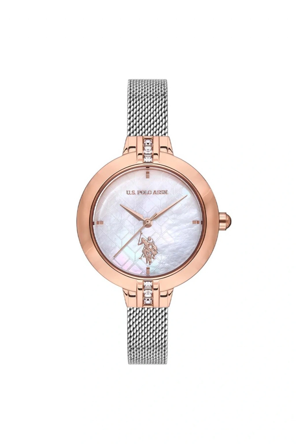 WaterProof:3 ATM CaseDiameter:34 mm CaseThickness:8 mm DialType:Analog DialColor:Beyaz KasaMateryali:Çelik StrapLanyardProperty:Hasır Gender:Kadın Yaş Grubu:Kadın CategoryName:Kadın Klasik Saat Style:Klasik Saatler StrapLanyardColor:Metalik Gri GlassProperty:Mineral Technology:Quartz CaseColor:Rose Gold BrandName:U.; S.; Polo Assn.; CaseStone:Var DialStone:Var KadranTasi:Yok Calendar:Yok Kronometre:Yok Alarm:Yok CaseShape:Yuvarlak