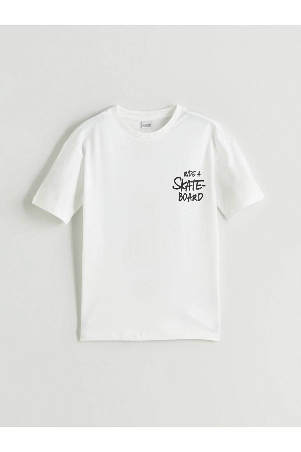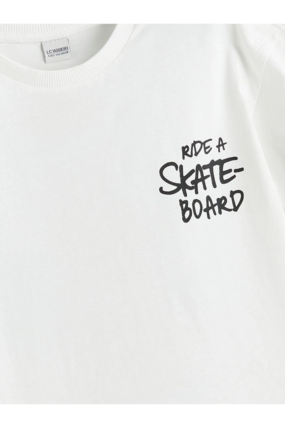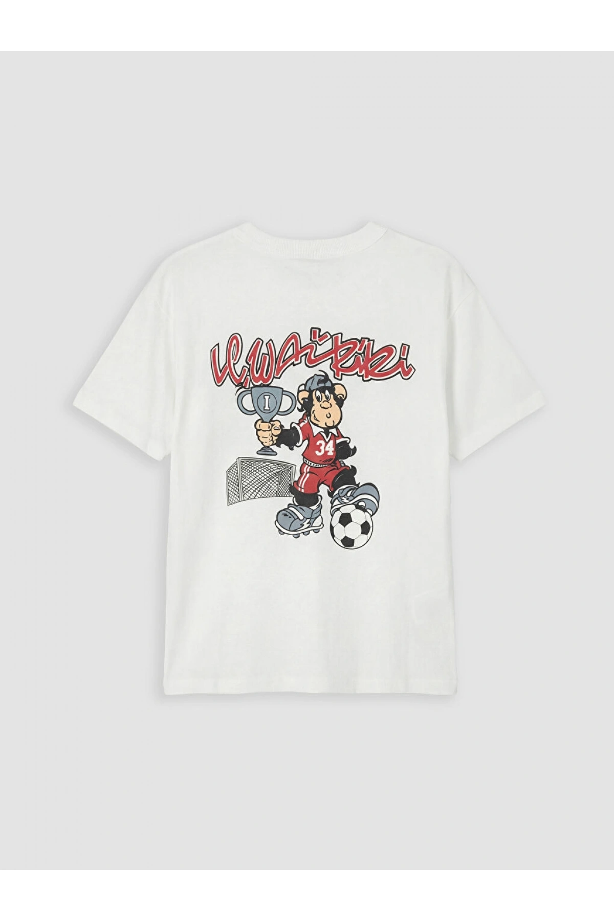 LCW Kids Ekru Bisiklet Yaka Baskılı Erkek Çocuk Tişört