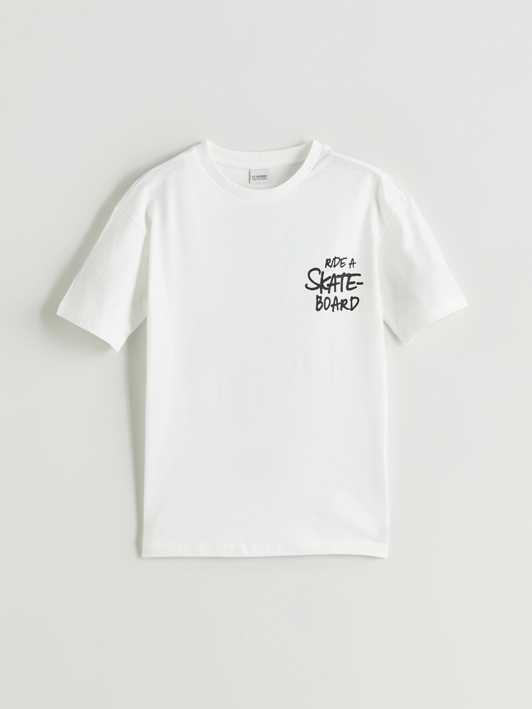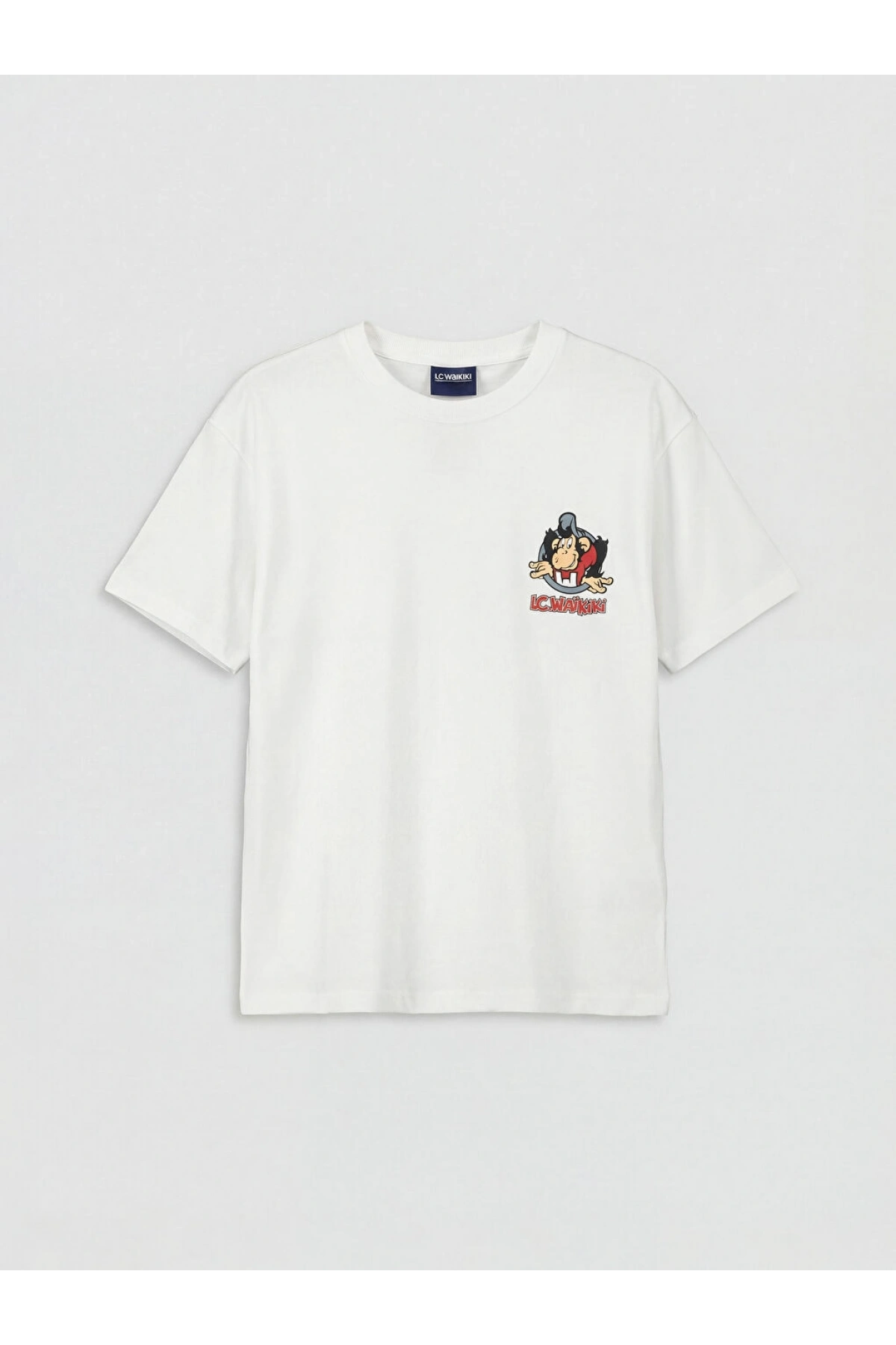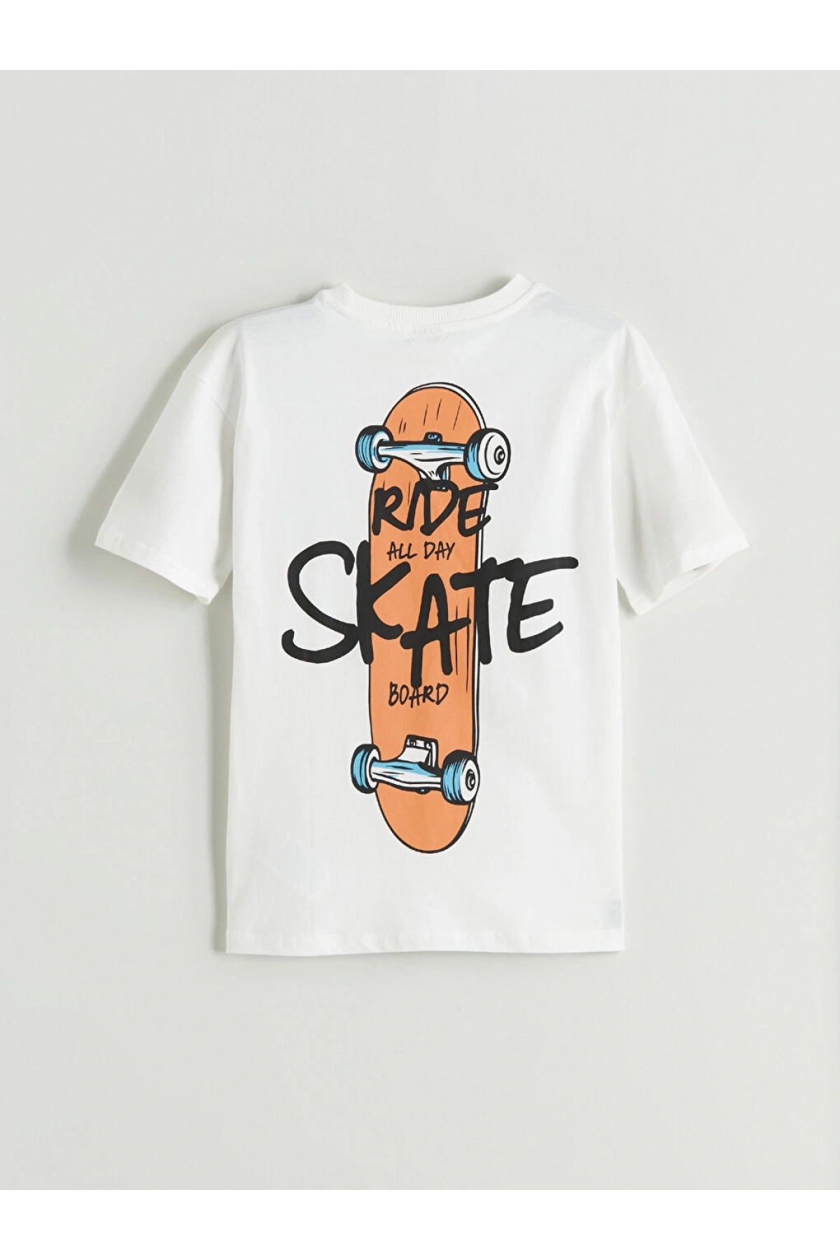 LCW Kids Ekru Bisiklet Yaka Baskılı Erkek Çocuk Tişört