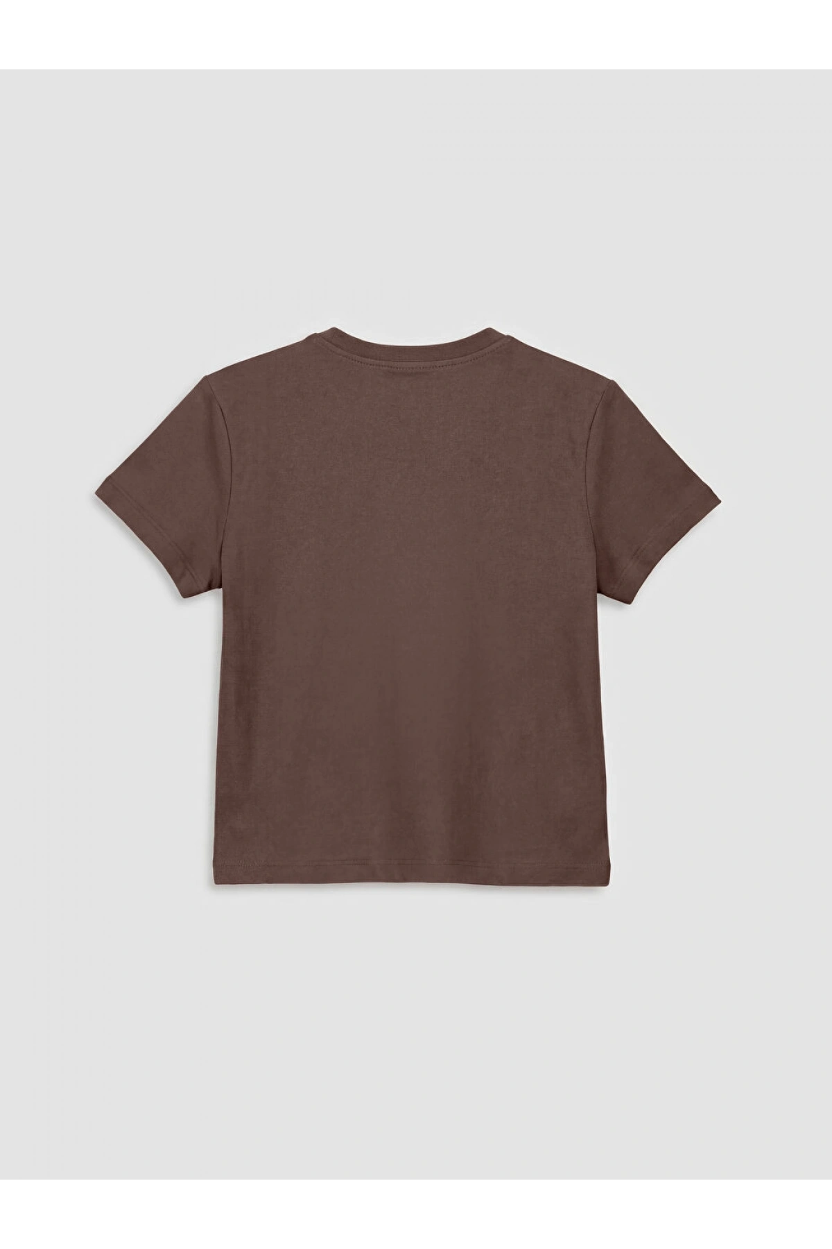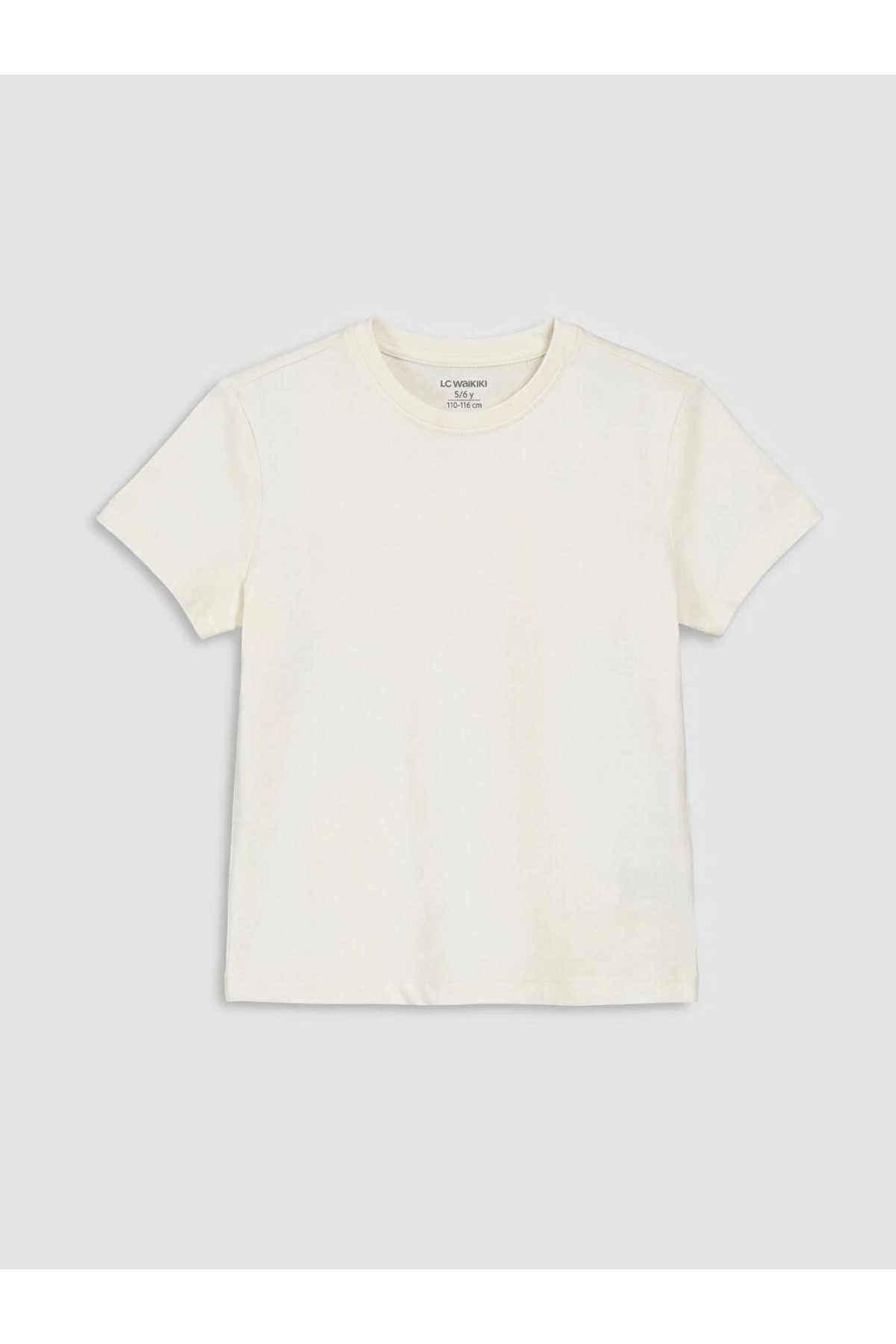 LCW Kids Ekru Bisiklet Yaka Baskılı Kız Çocuk Tişört