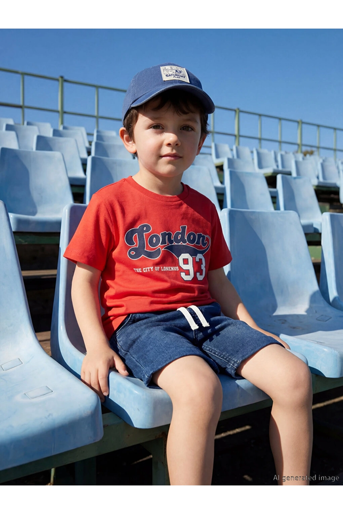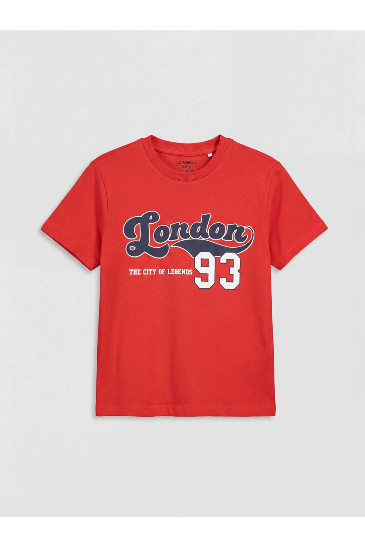 LCW Kids Kırmızı Bisiklet Yaka London Baskılı Erkek Çocuk Tişört