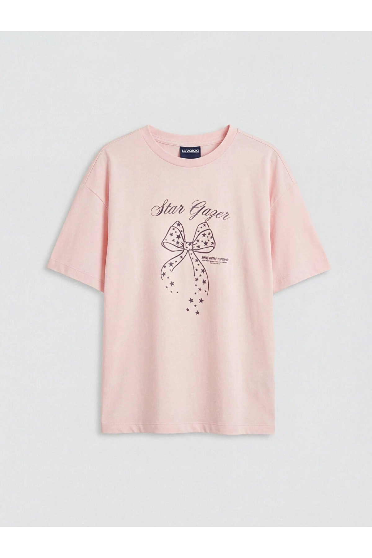 LCW Kids Pembe Bisiklet Yaka Baskılı Kız Çocuk Tişört