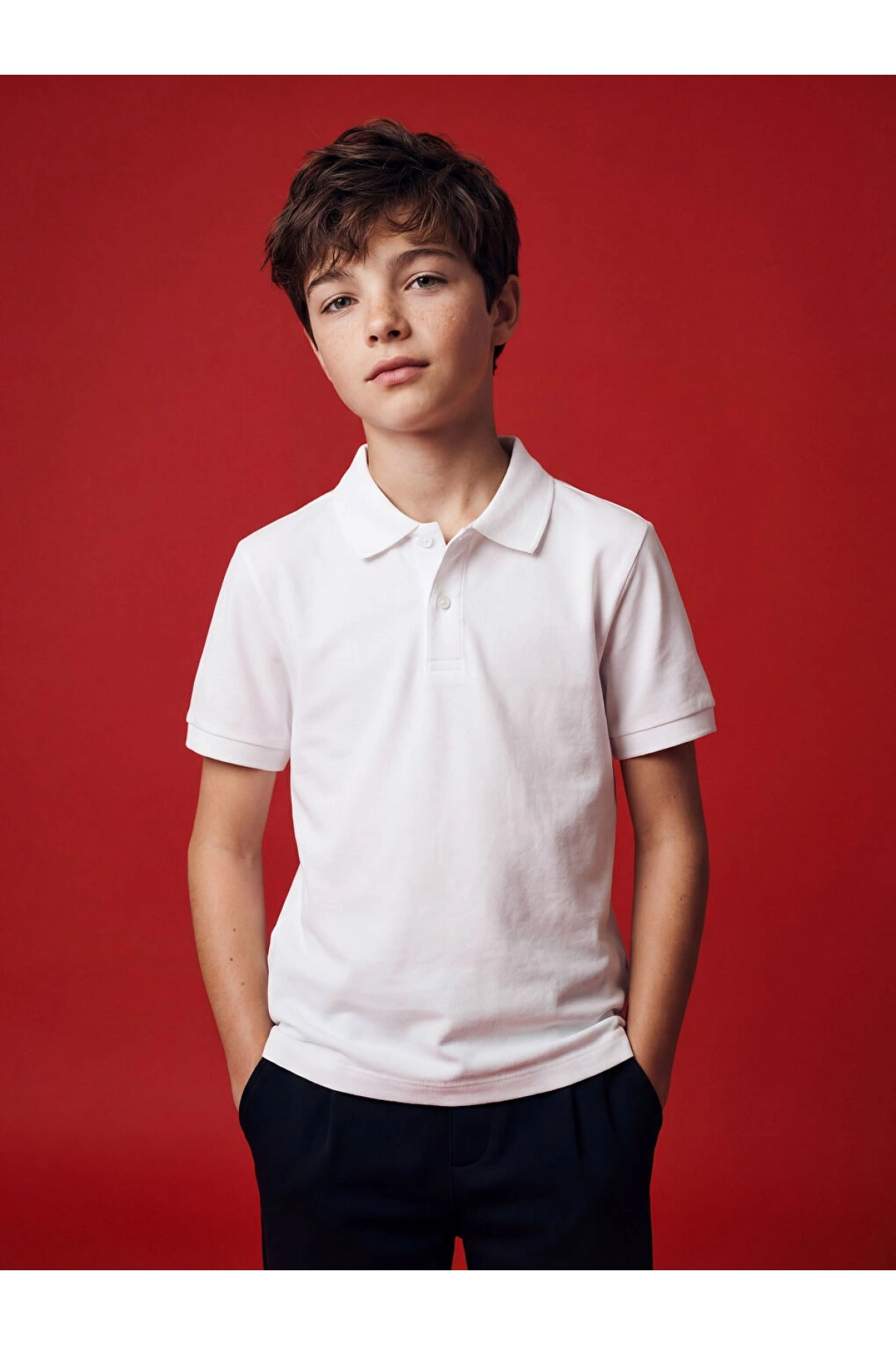 LCW Kids Beyaz Polo Yaka Erkek Çocuk Pike Tişört