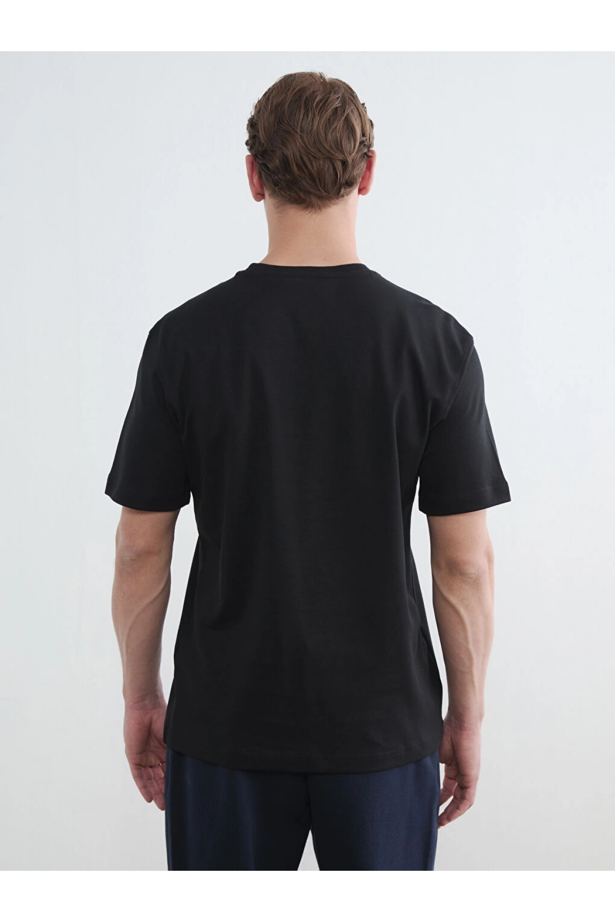 XSIDE Siyah Bisiklet Yaka Nakışlı Erkek Tişört