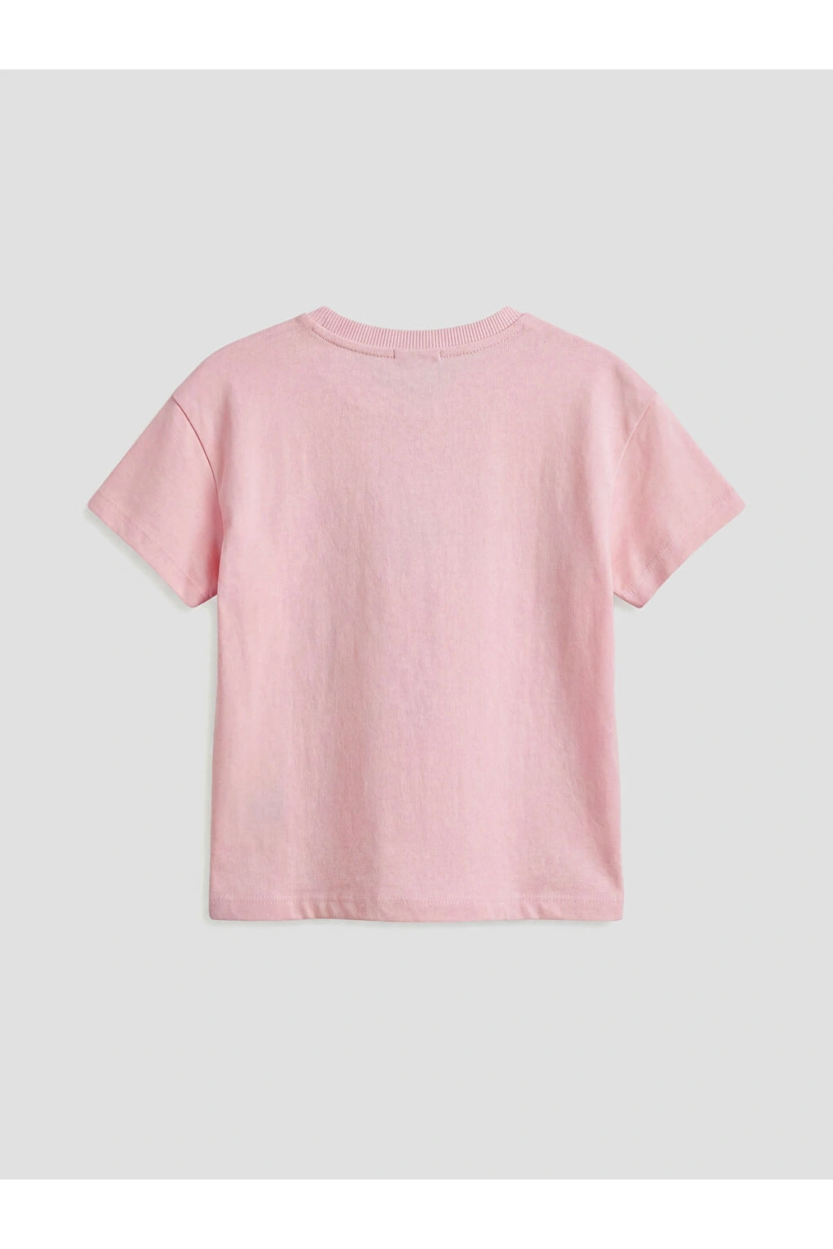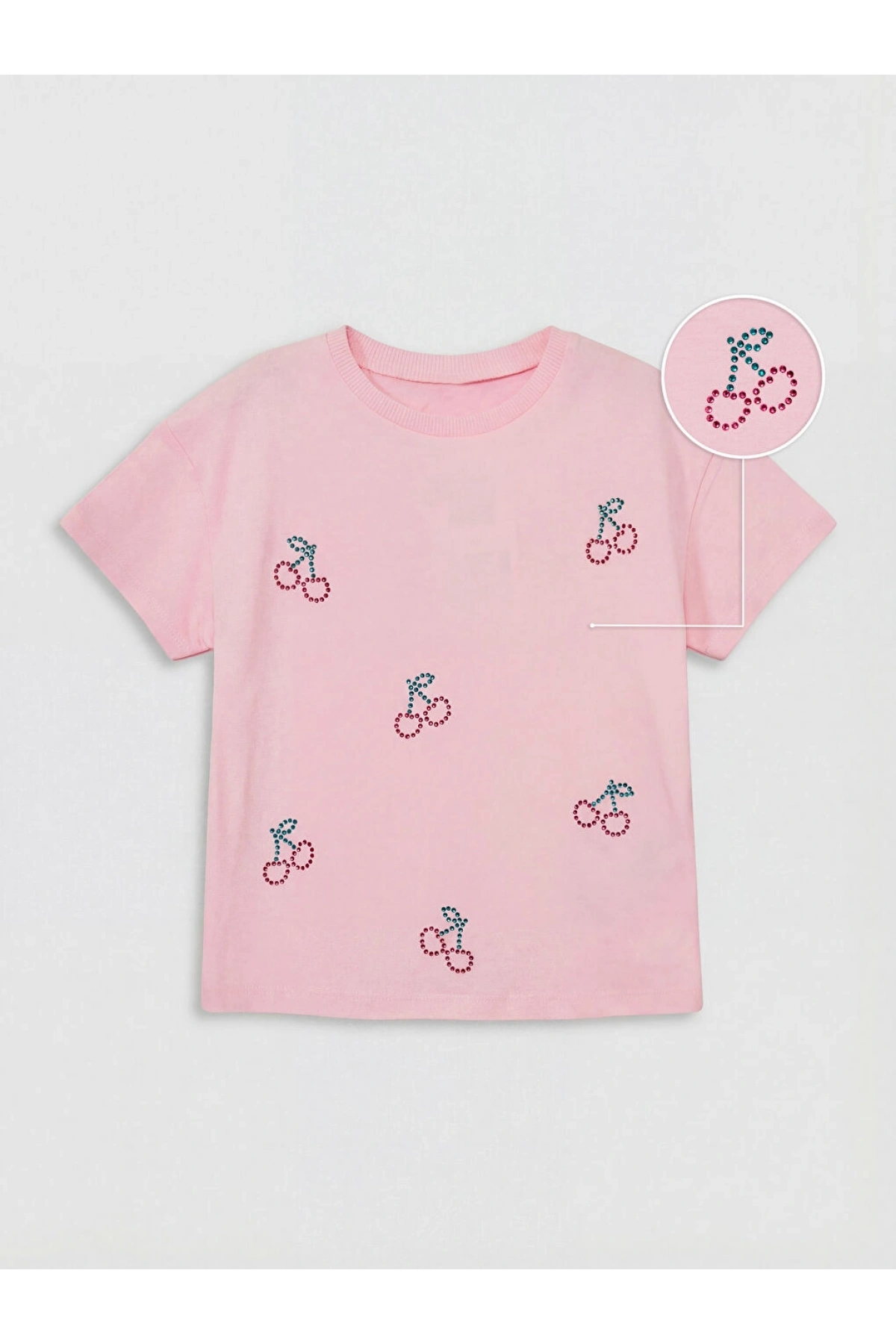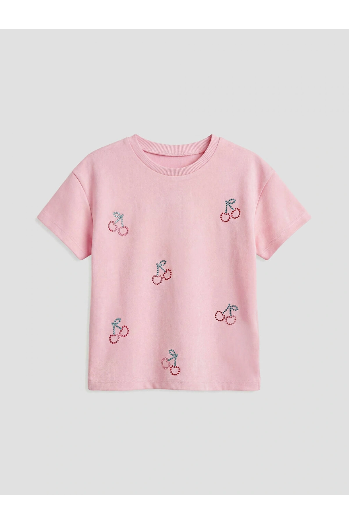 LCW Kids Pembe Fiyonk Baskılı Taşlı Kız Çocuk Tişört