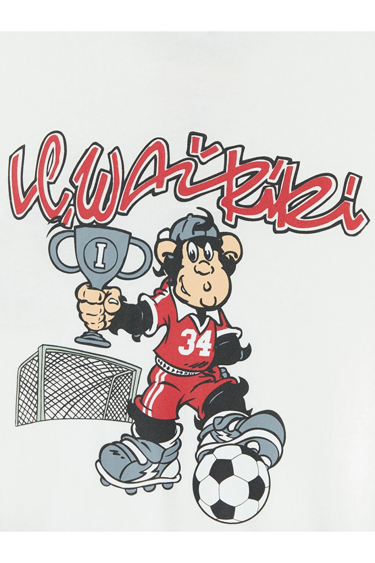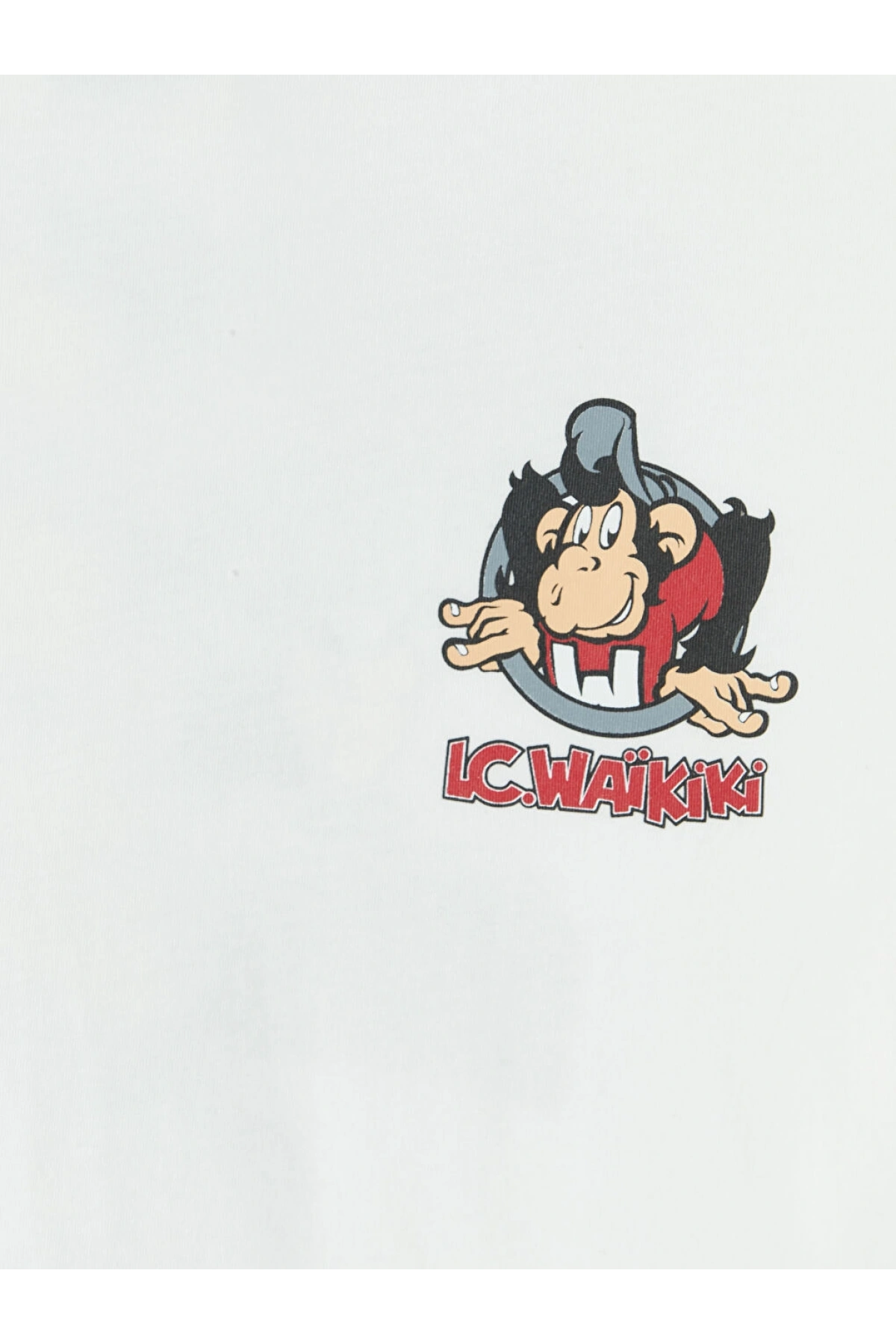 LCW Kids Ekru Nostaljik Maymun Baskılı Erkek Çocuk Tişört