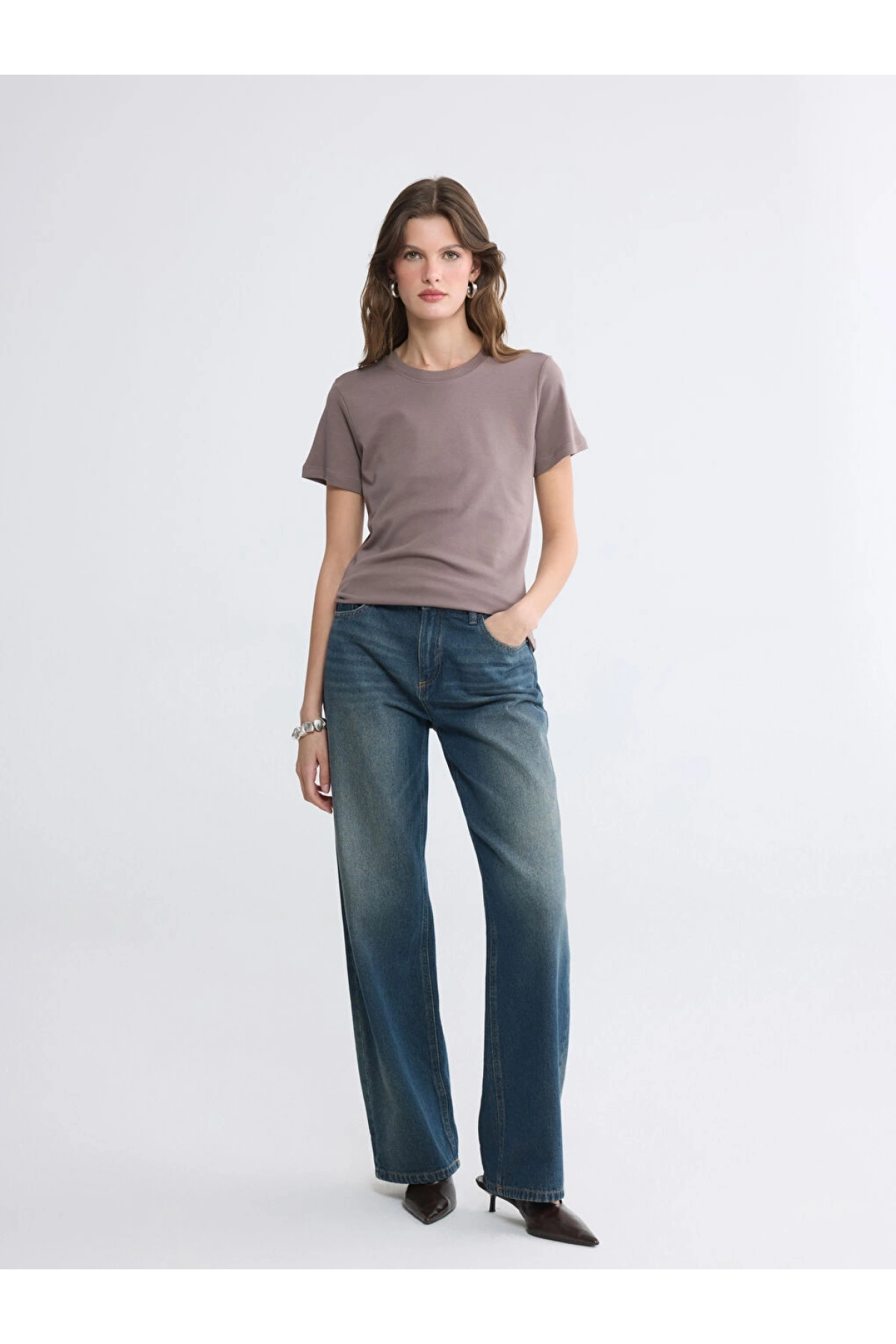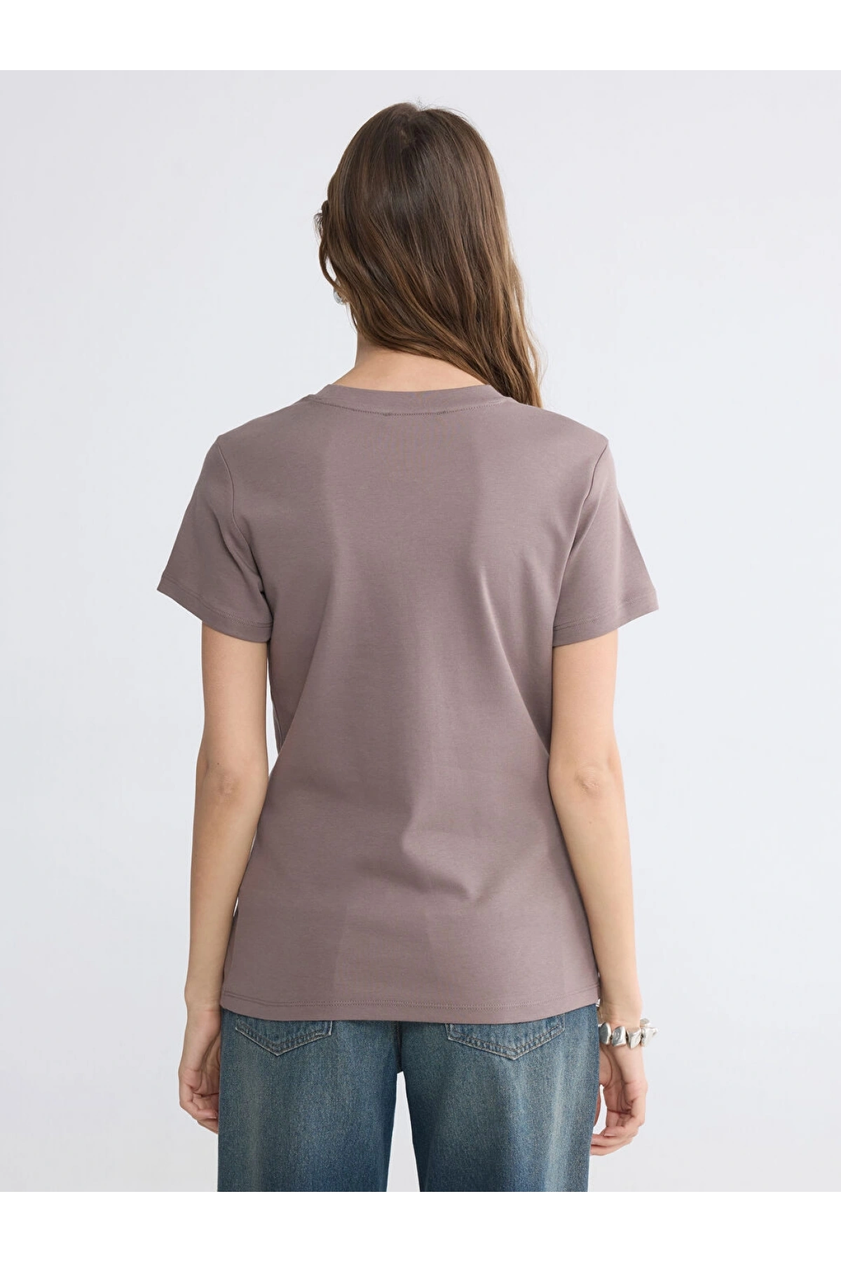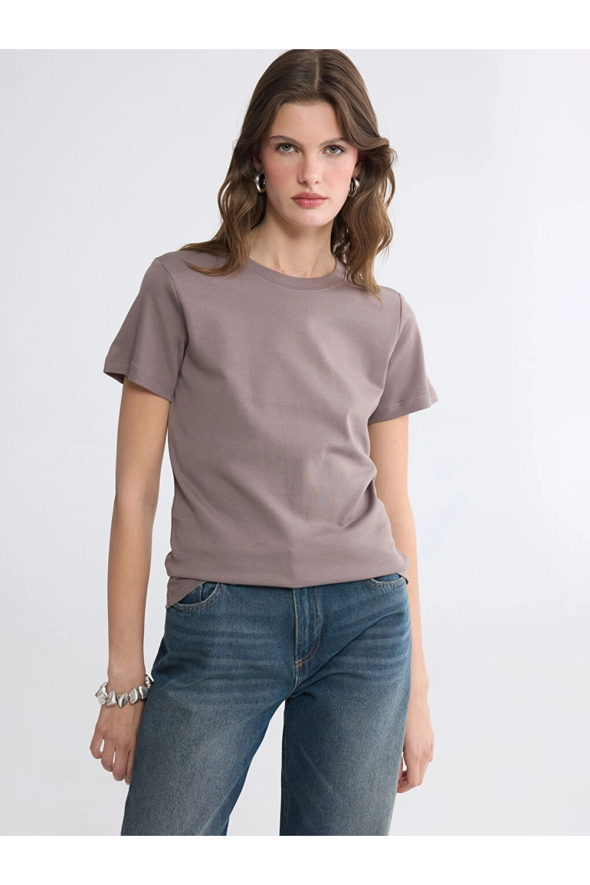 LCW EVERYDAY Kahverengi Bisiklet Yaka Kadın Tişört