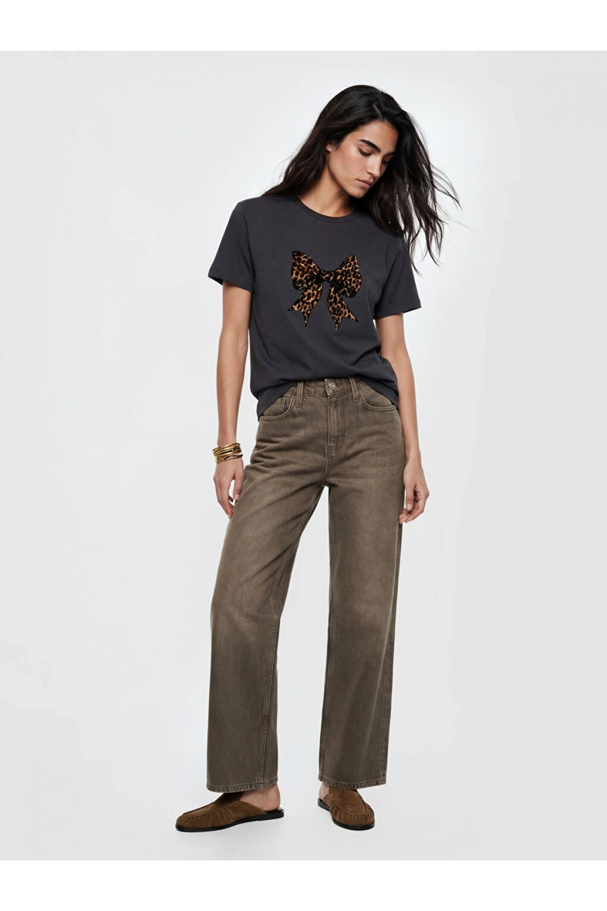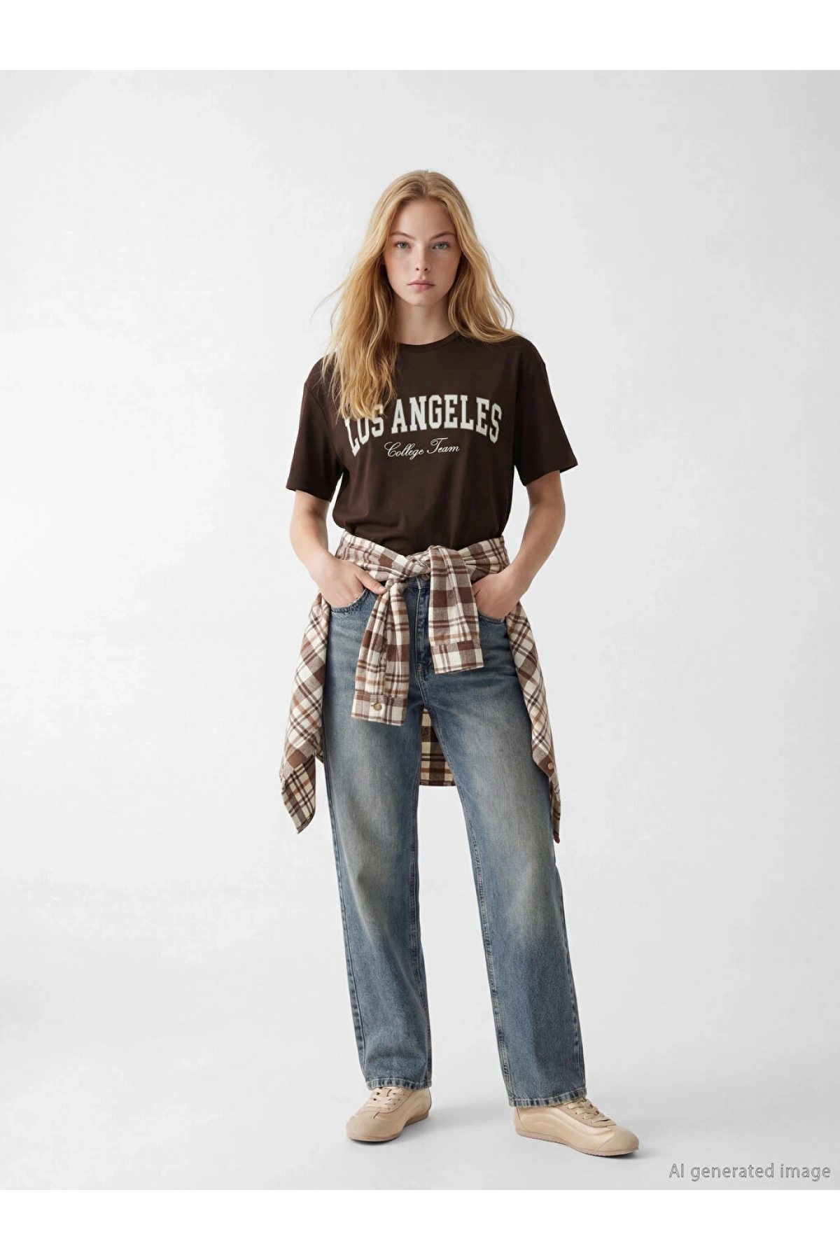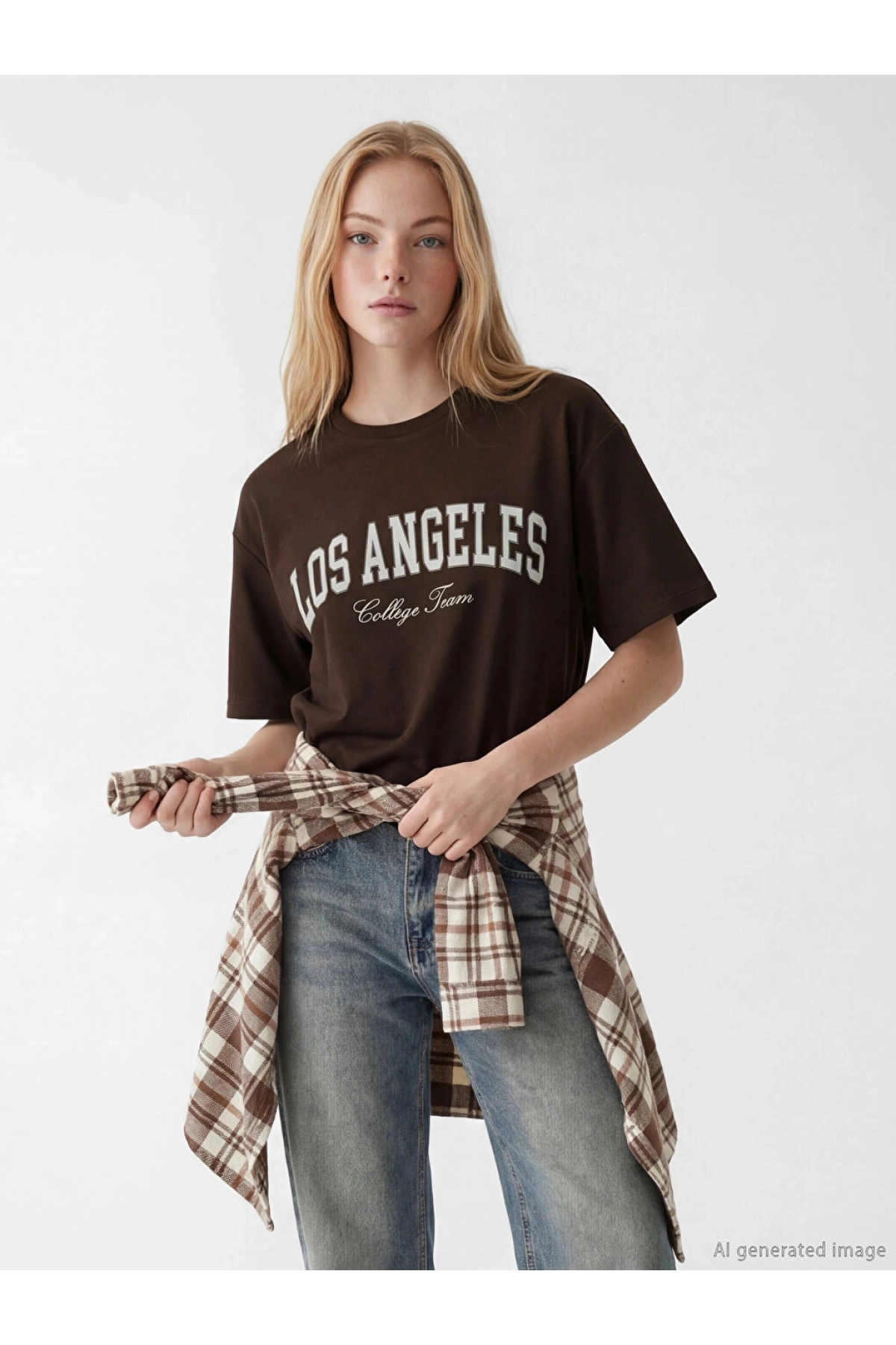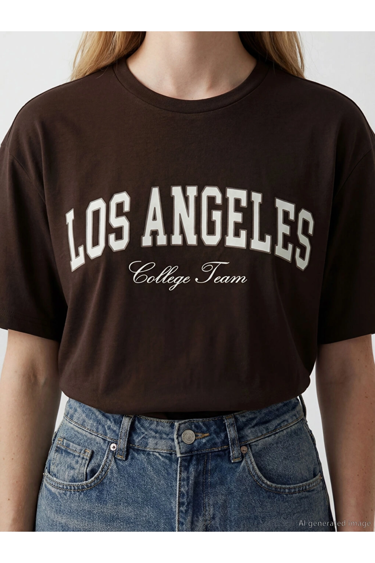 XSIDE Kahverengi Los Angeles Baskılı Soft Touch Kadın Tişört