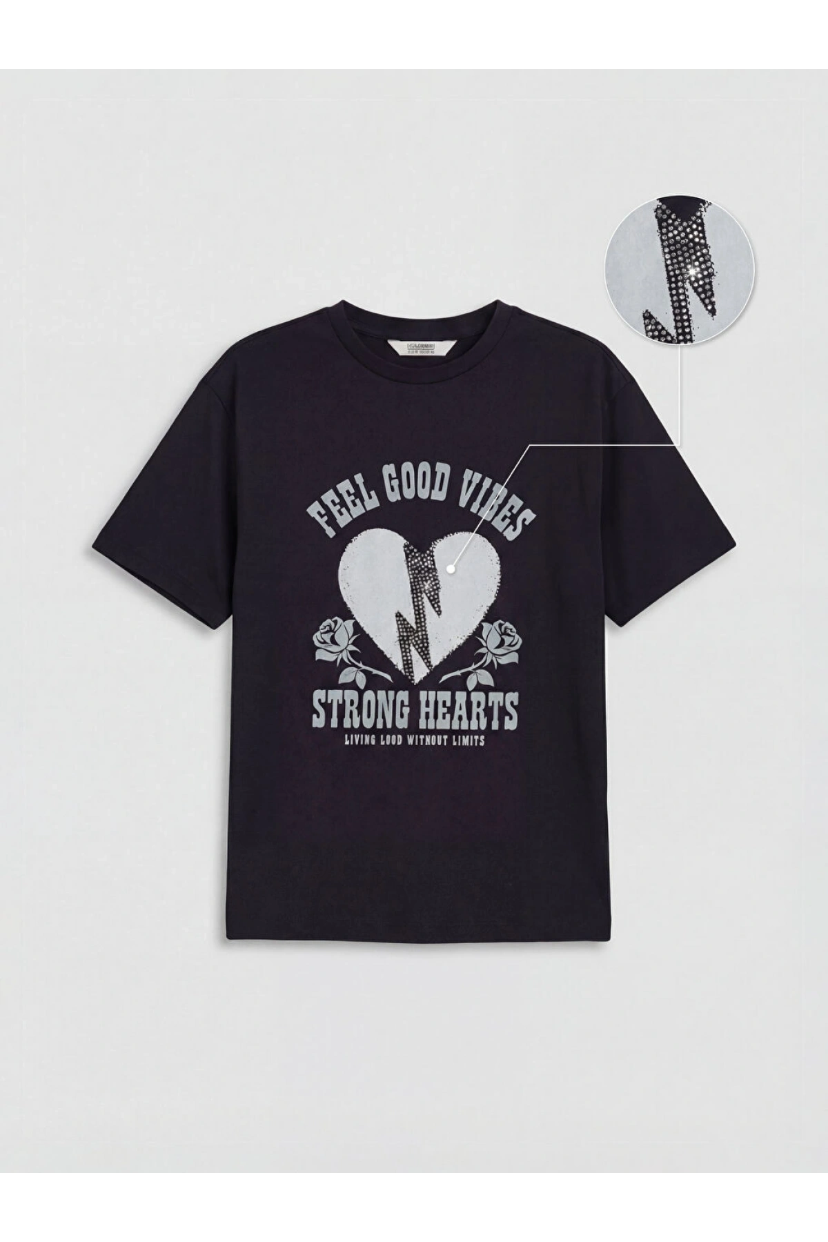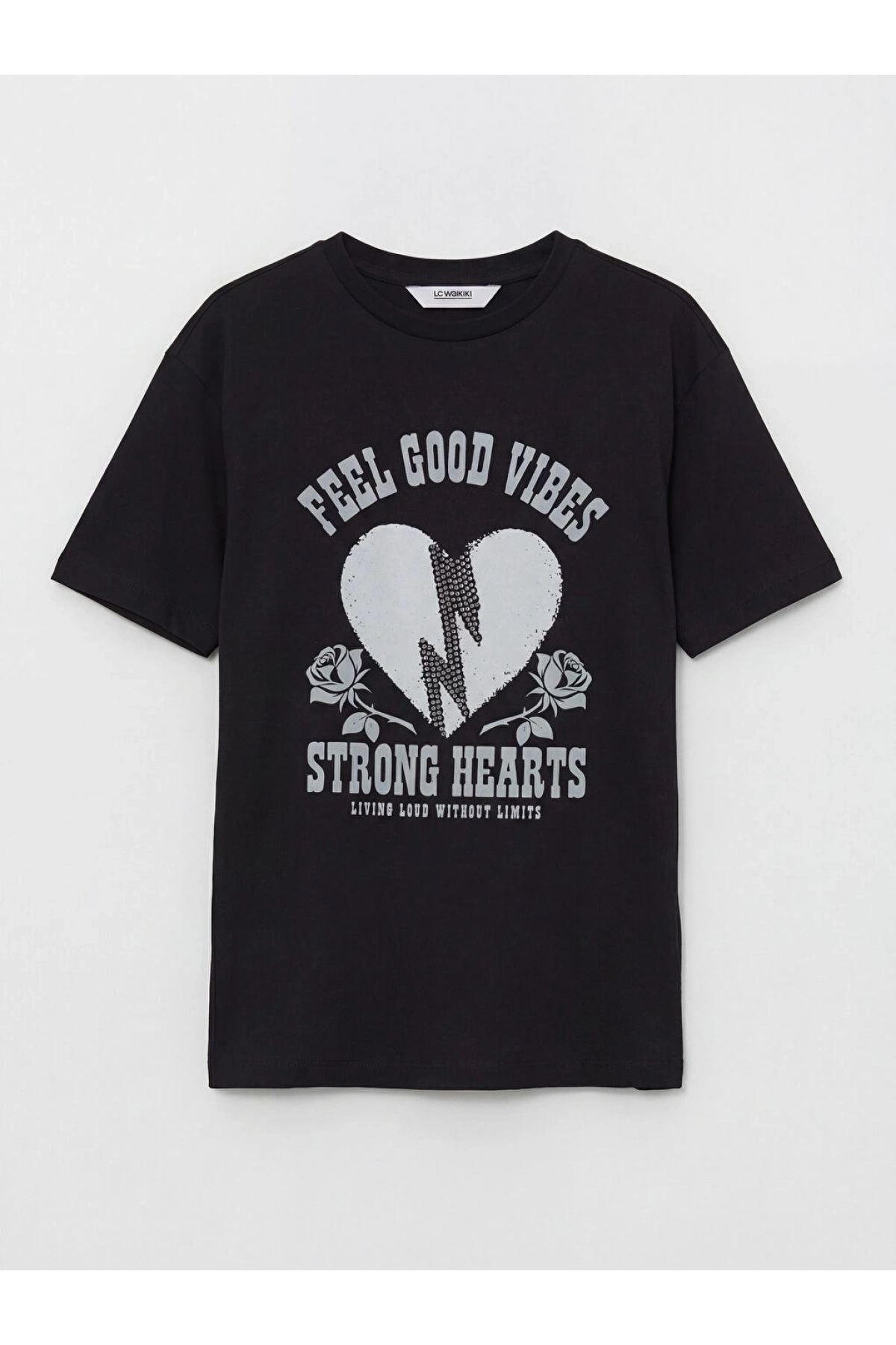 LCW Kids Siyah Baskılı Taş Detaylı Kız Çocuk Tişört