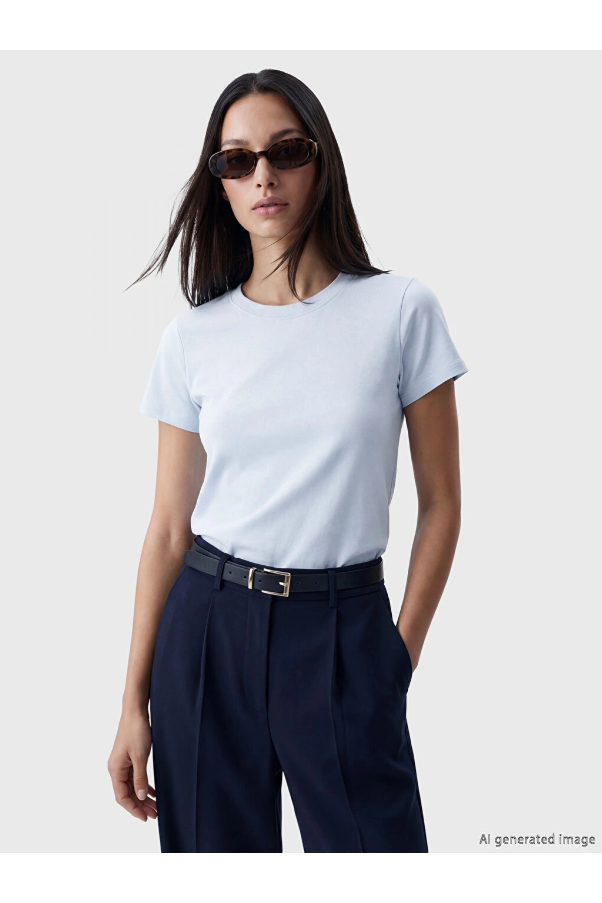 LCW EVERYDAY Mavi Bisiklet Yaka Kadın Tişört