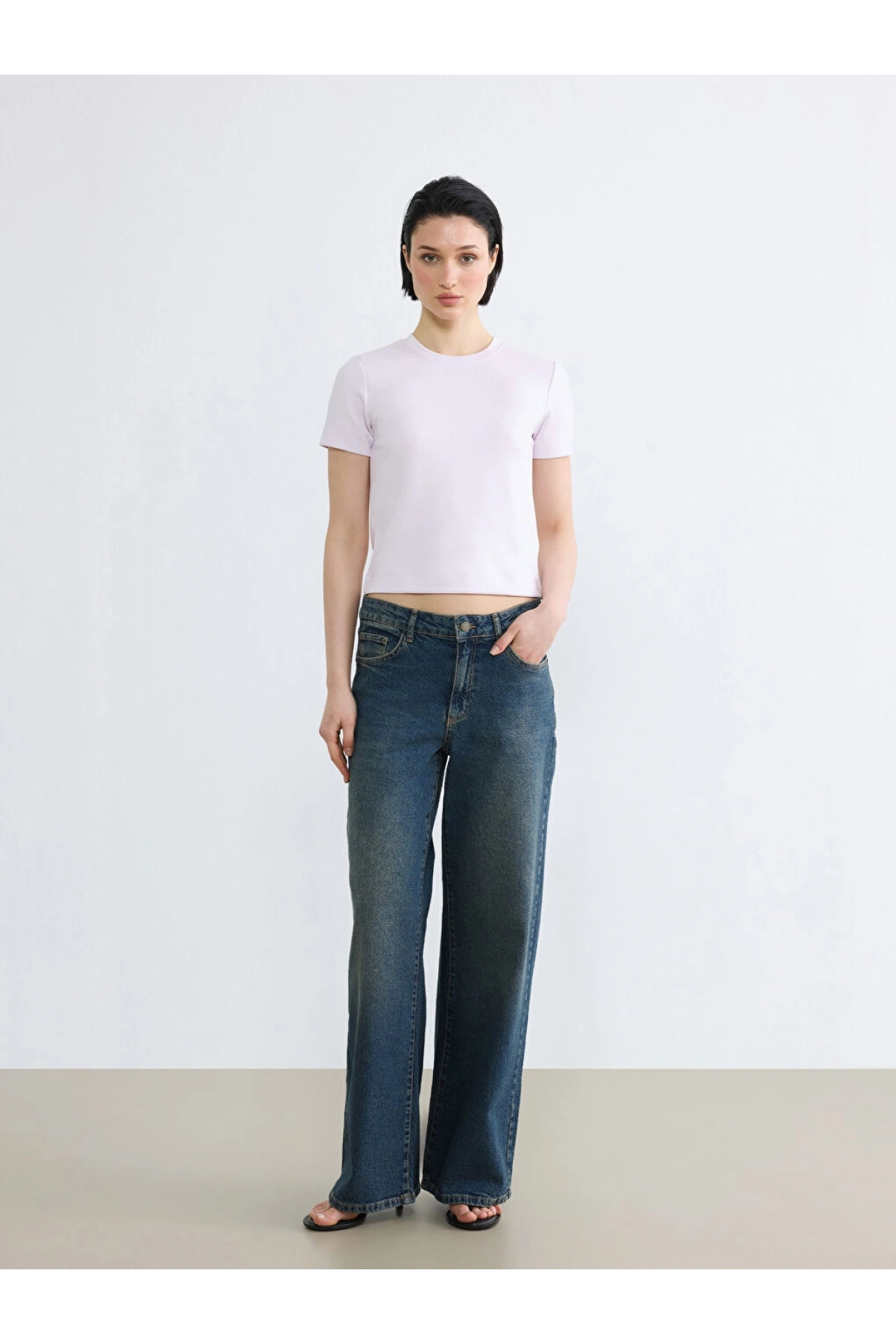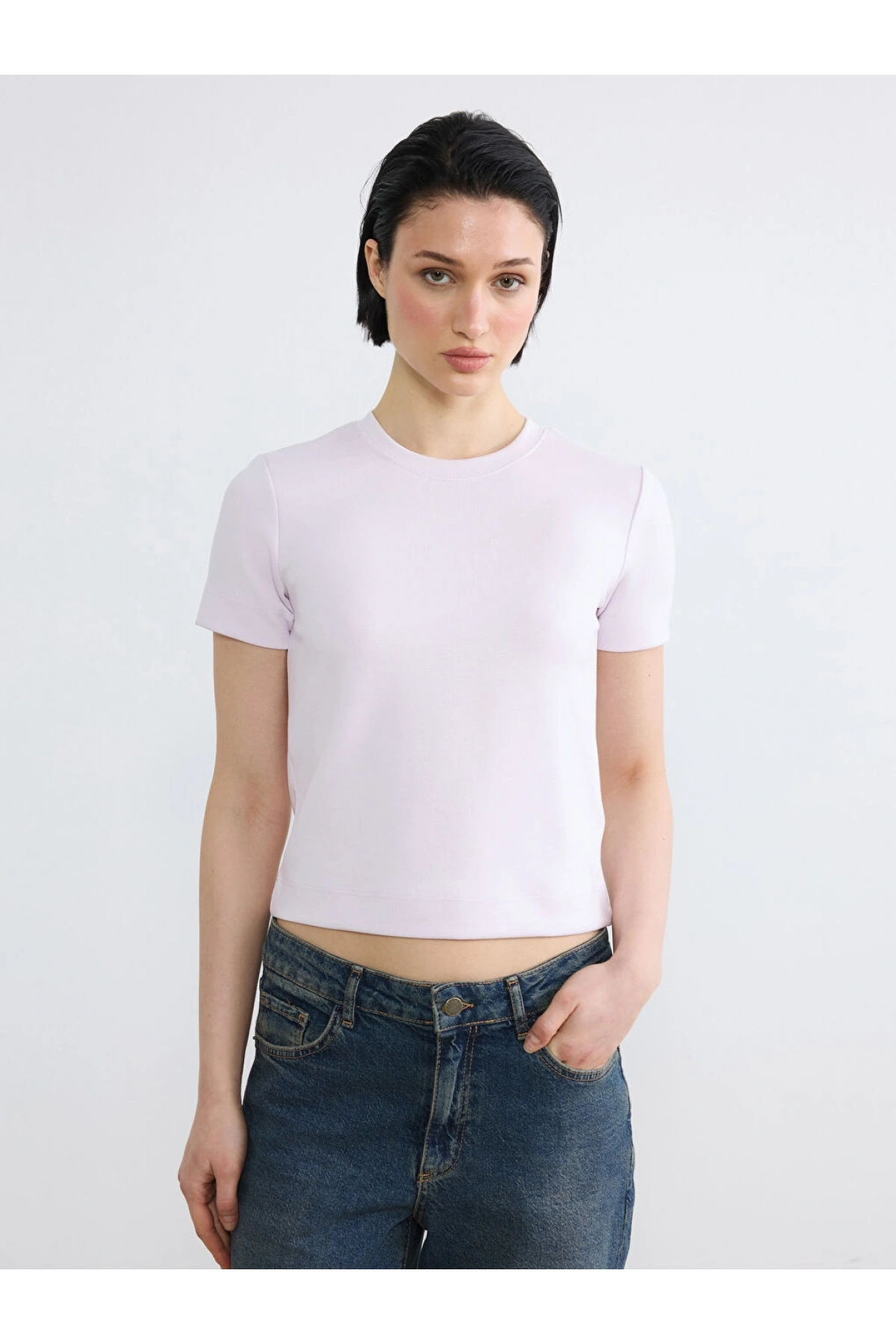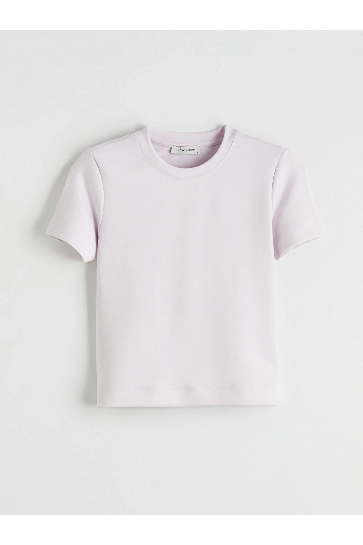 LCW Vision Lila Bisiklet Yaka Kadın Tişört