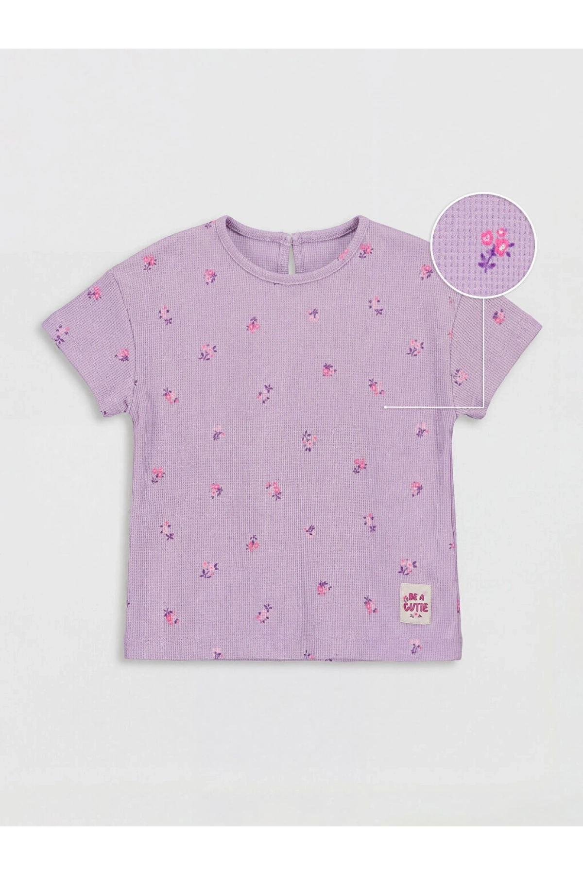 LCW Kids Lila Bisiklet Yaka Baskılı Kız Çocuk Tişört