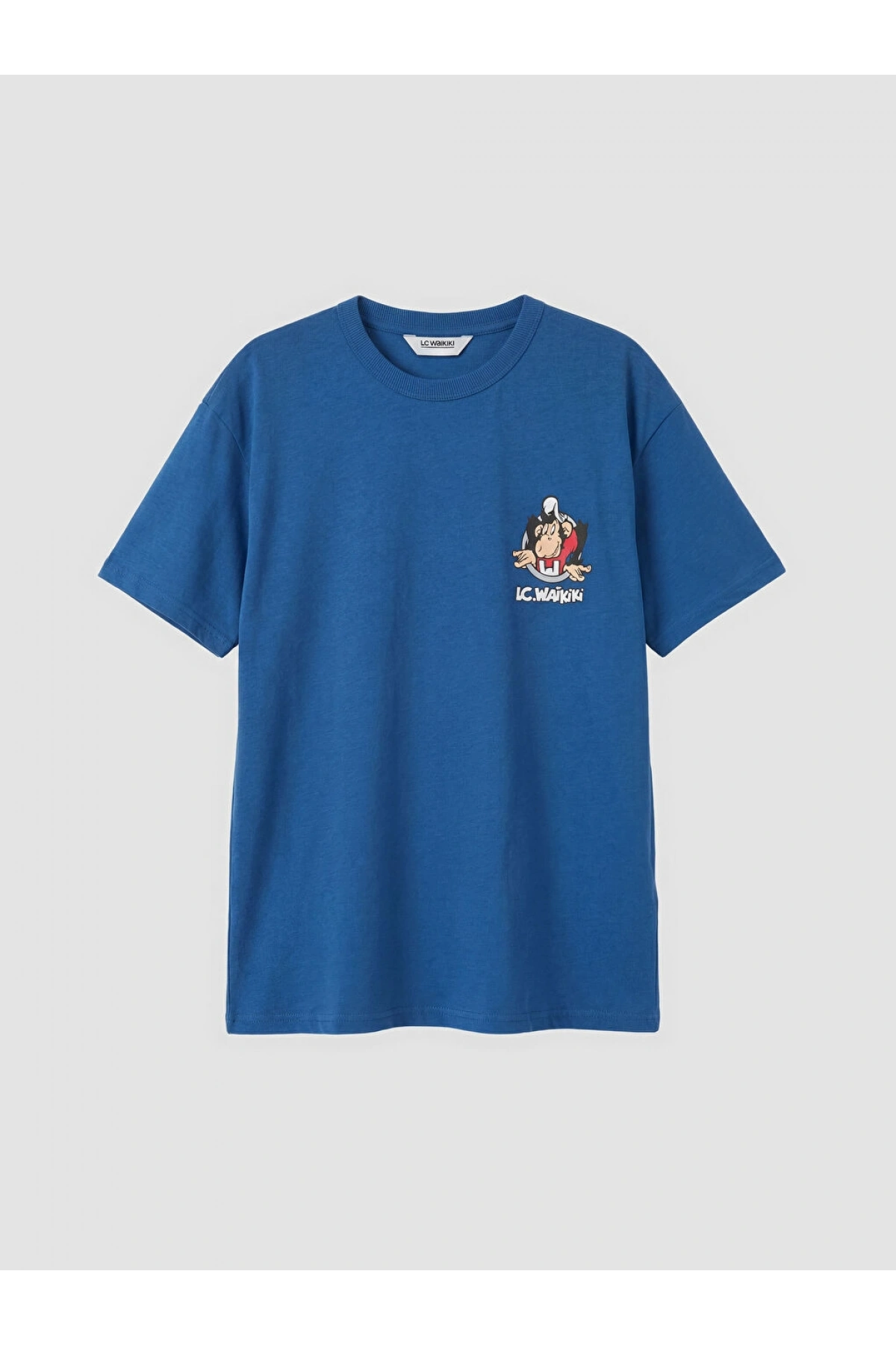 LCW Kids Mavi Nostaljik Maymun Baskılı Erkek Çocuk Tişört