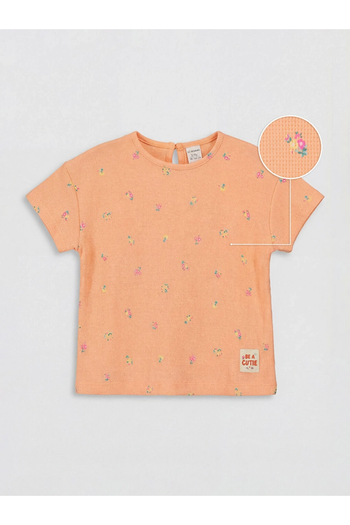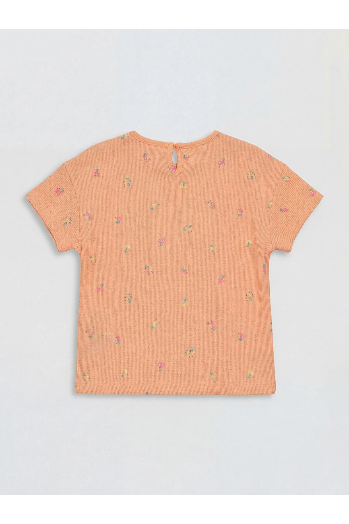 LCW Kids Mercan Bisiklet Yaka Çiçekli Kız Çocuk Tişört