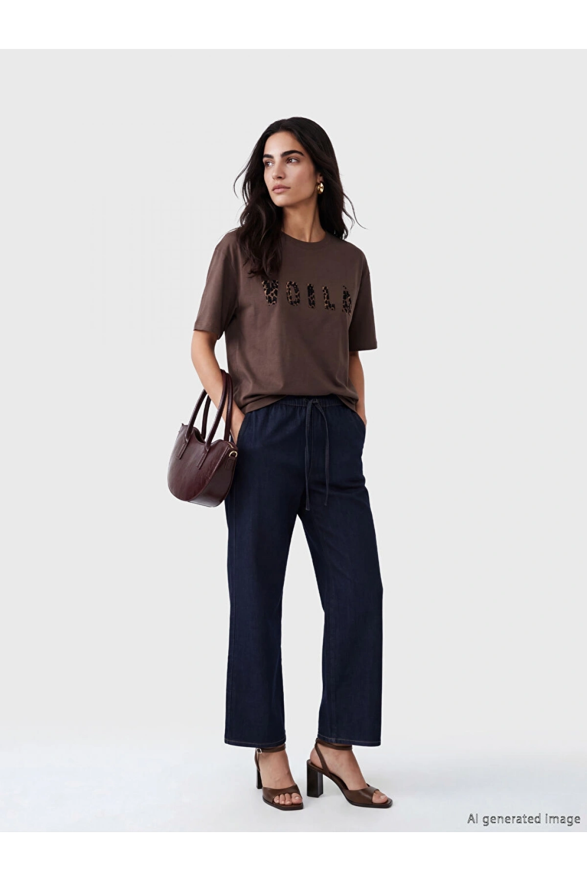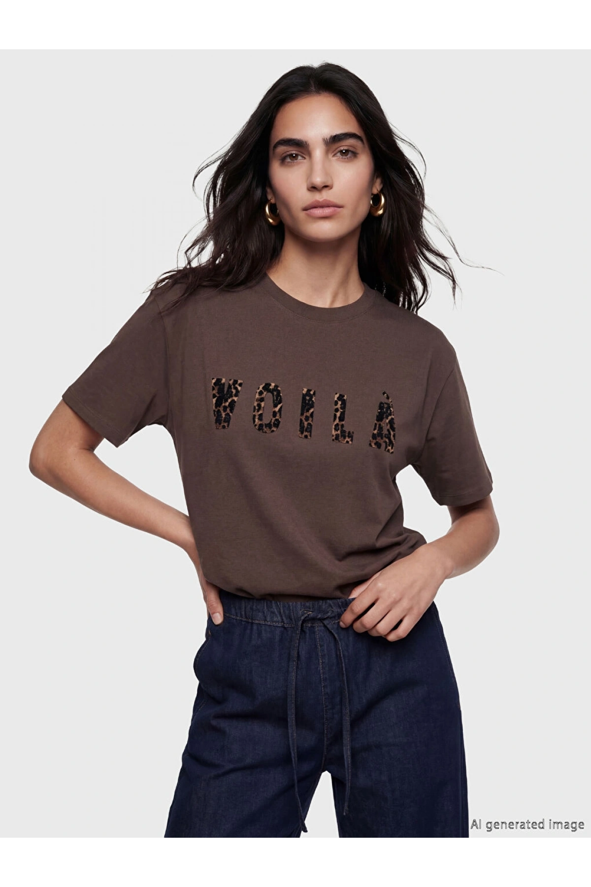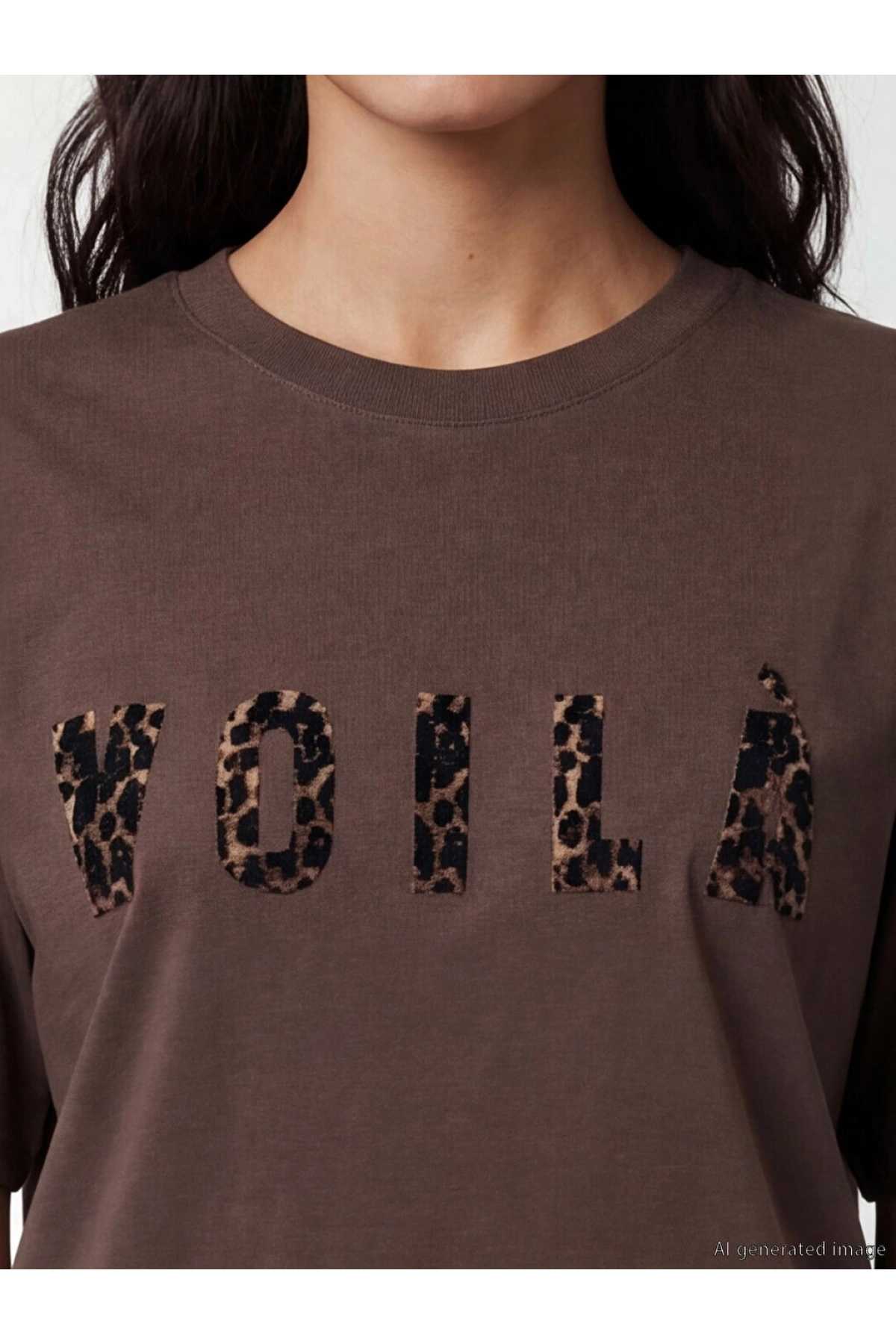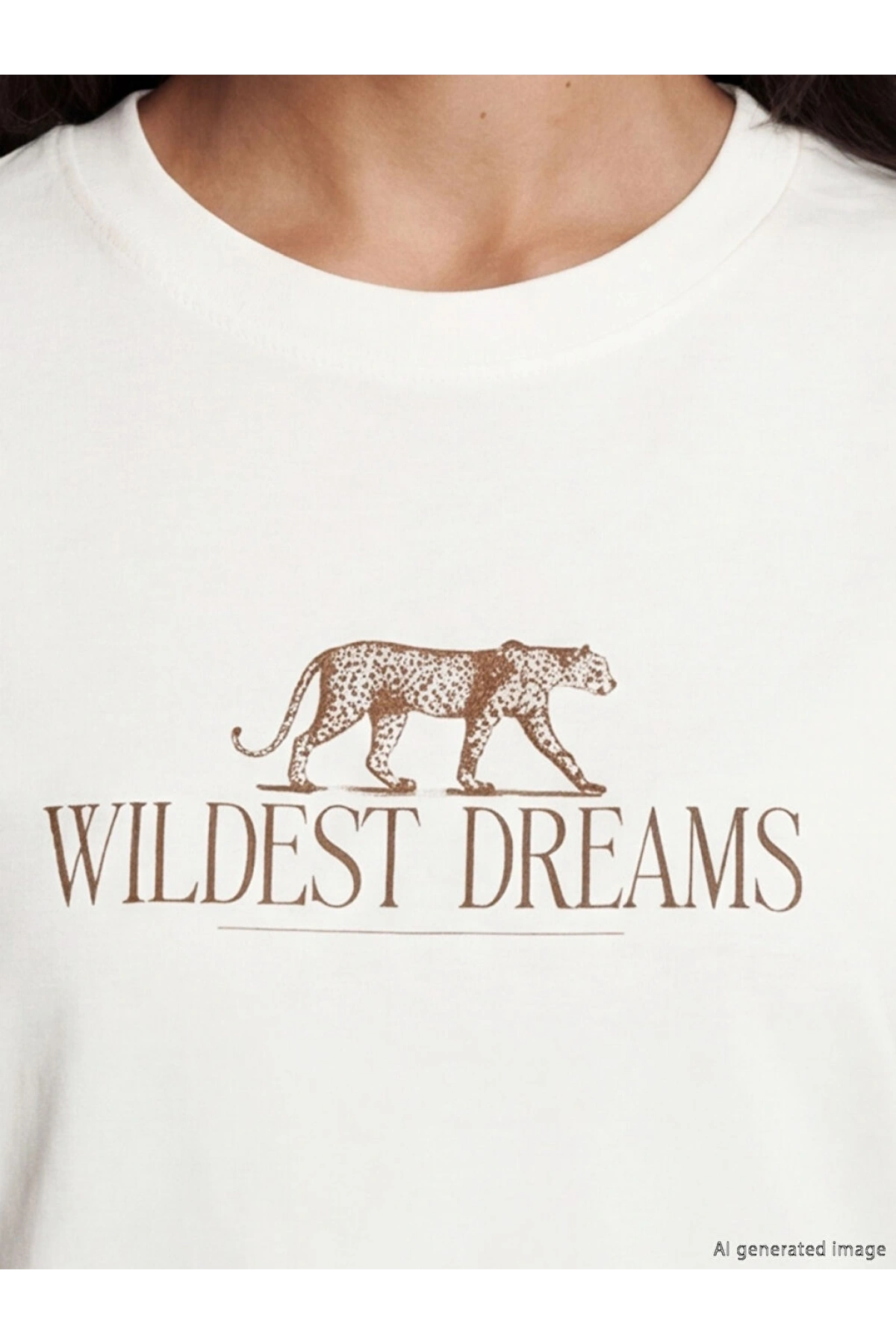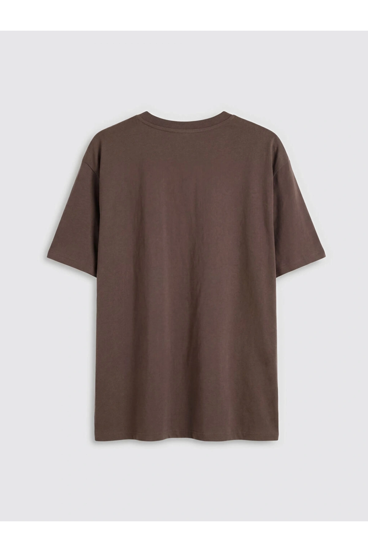 LCW Vision Kahverengi Bisiklet Yaka Baskılı Oversize Kadın Tişört
