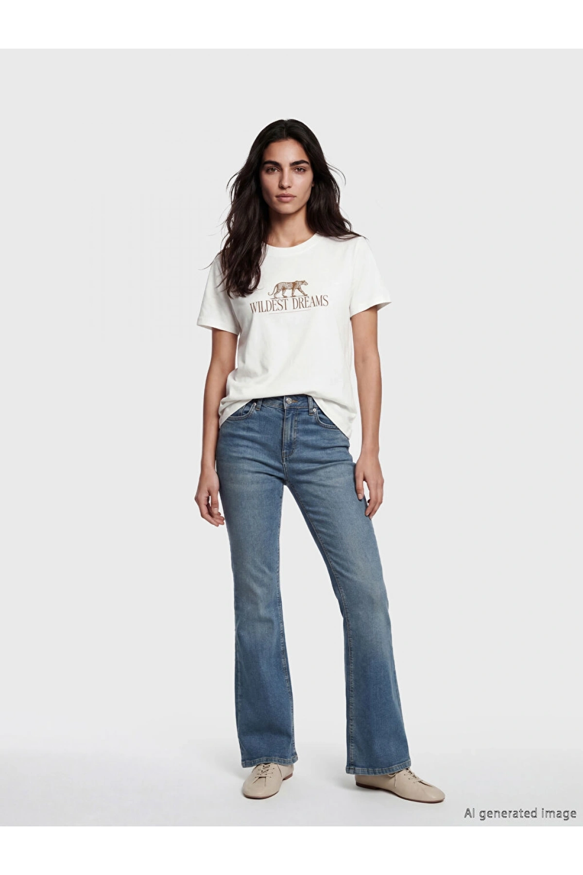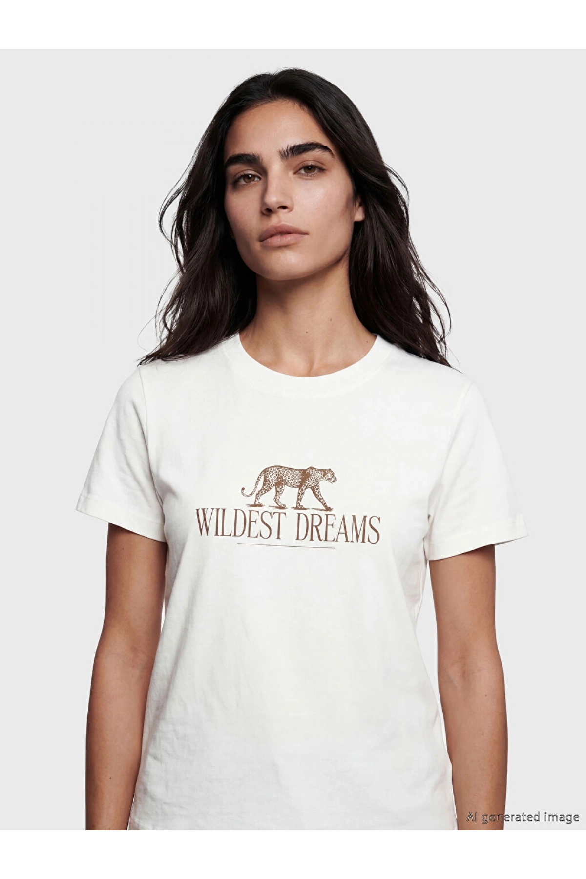 LCW Vision Ekru Bisiklet Yaka Baskılı Kadın Tişört