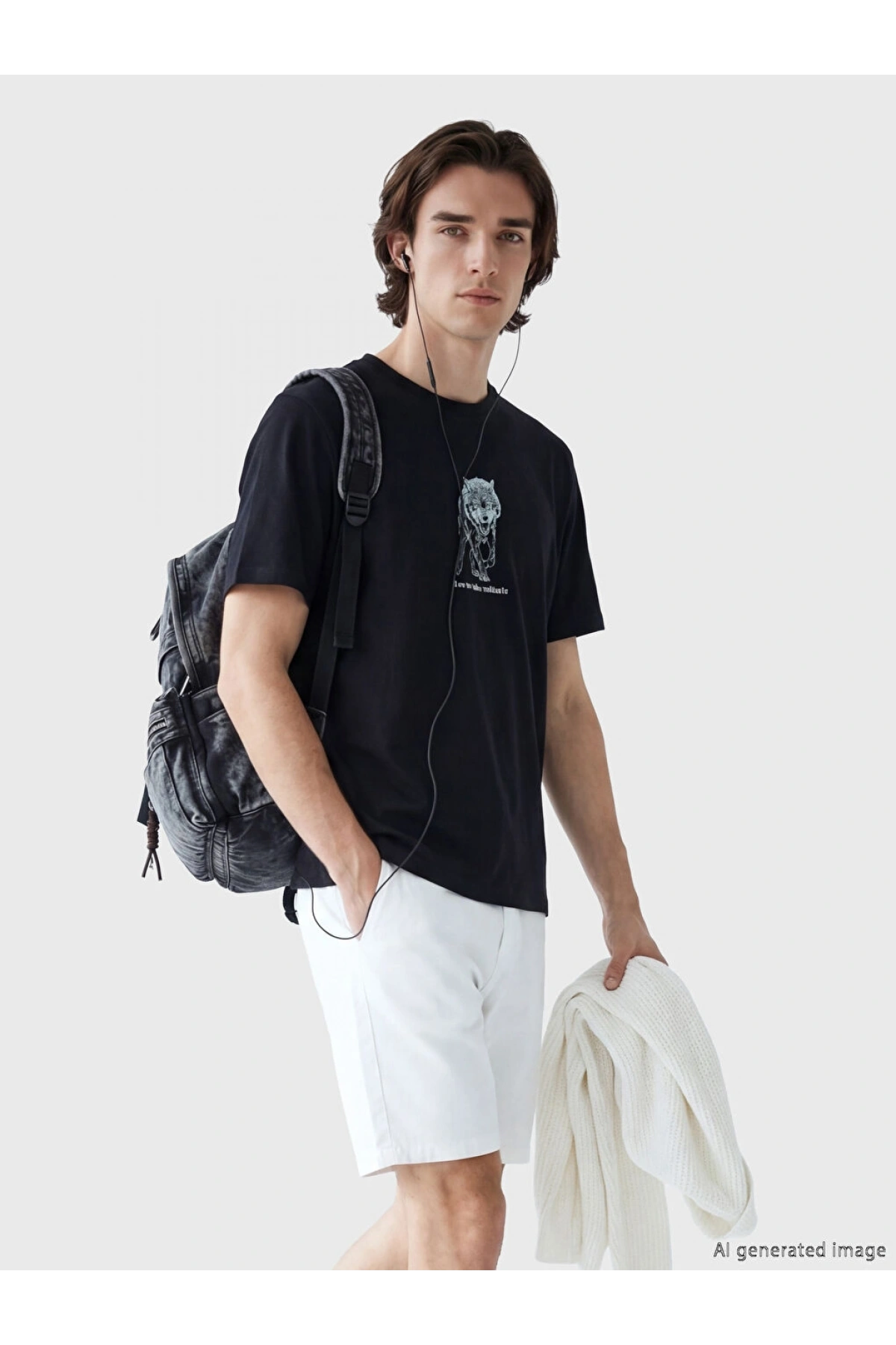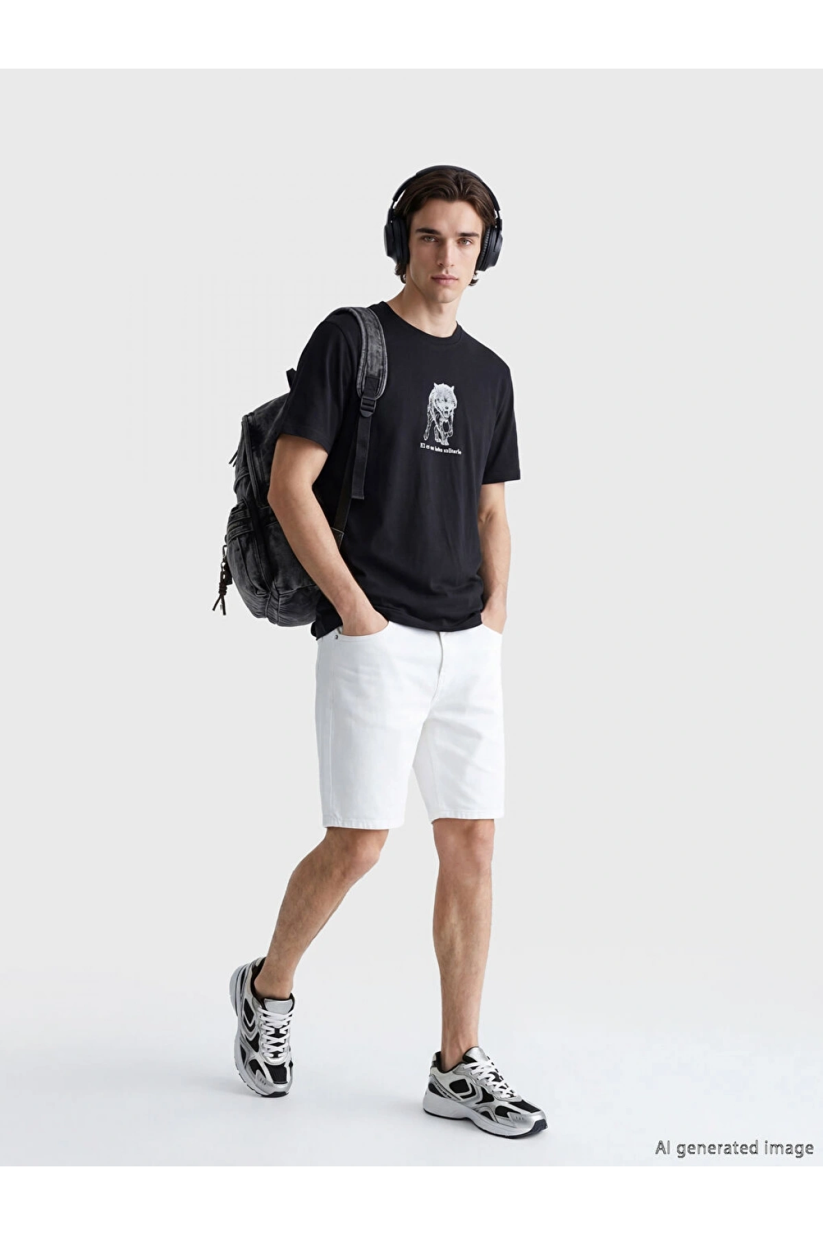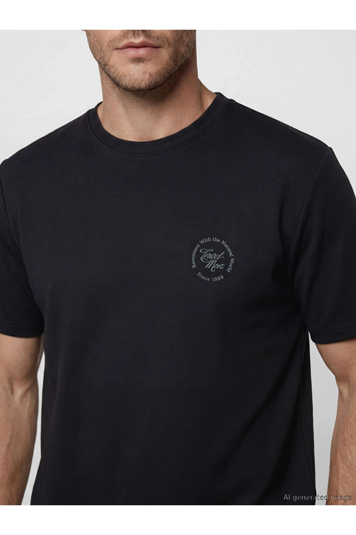 XSIDE Siyah Bisiklet Yaka Baskılı Erkek Tişört