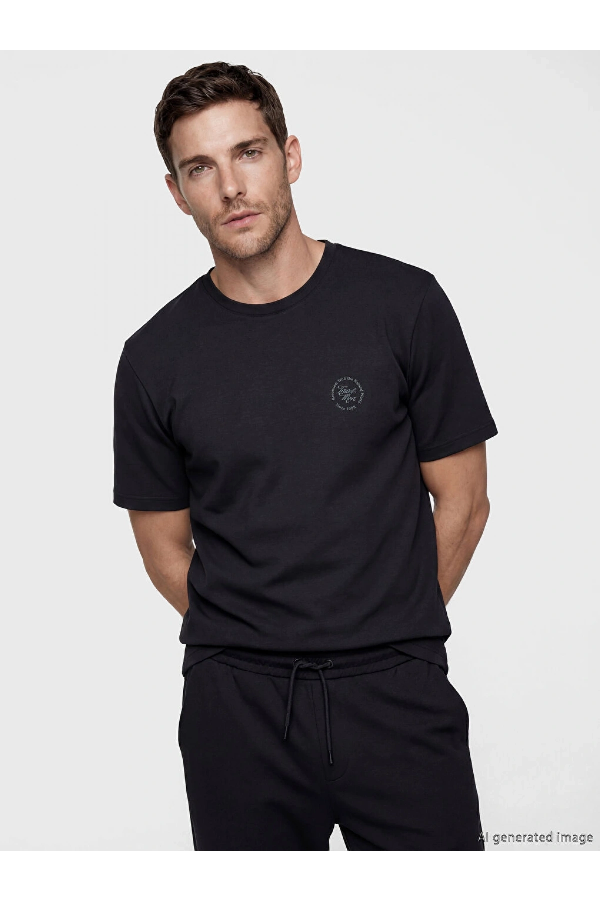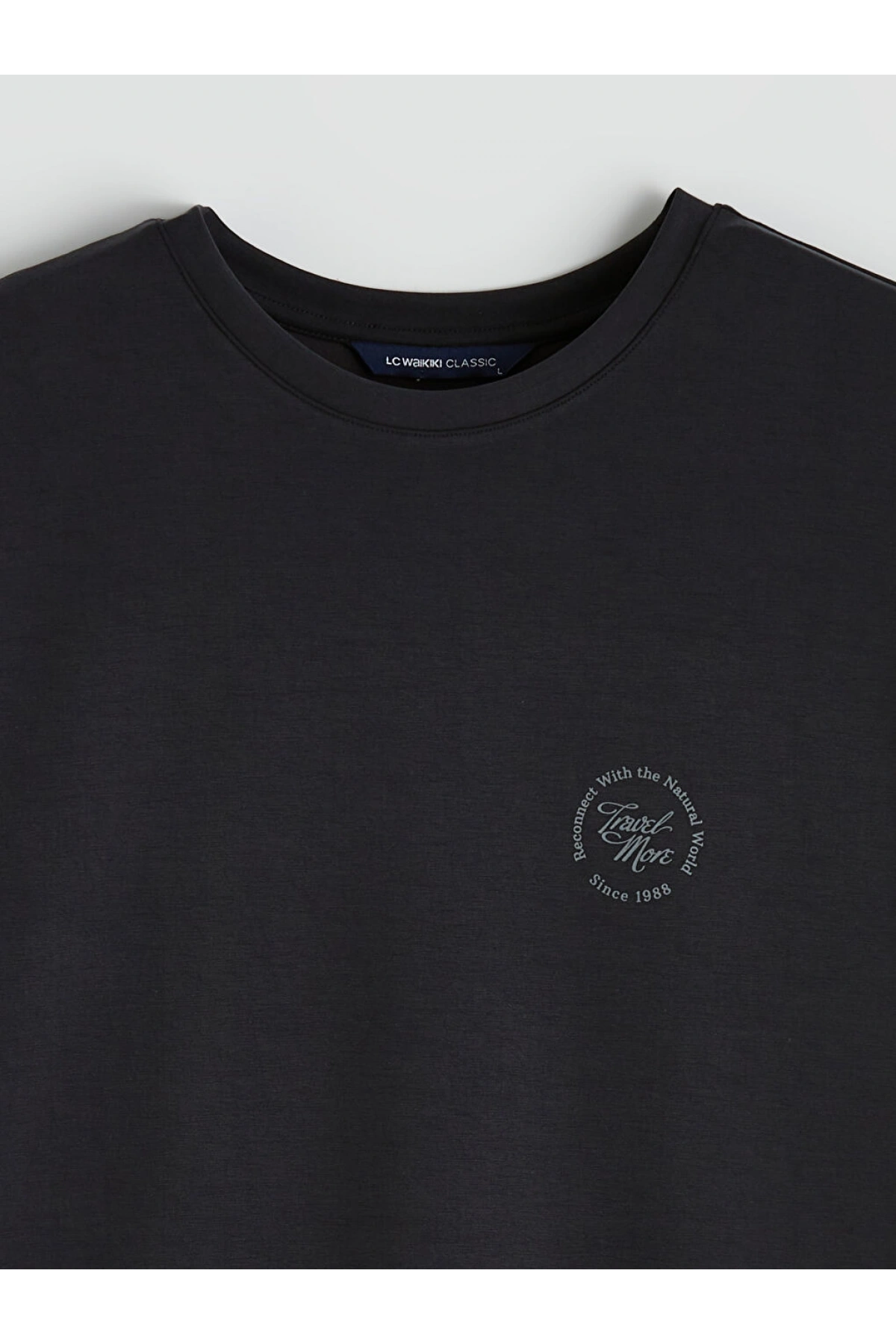LCWAIKIKI Classic Siyah Standart Kalıp Nakışlı Erkek Tişört